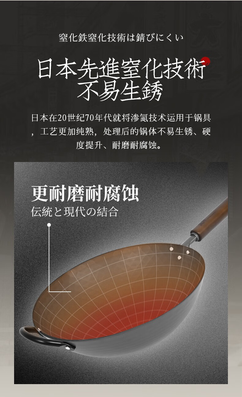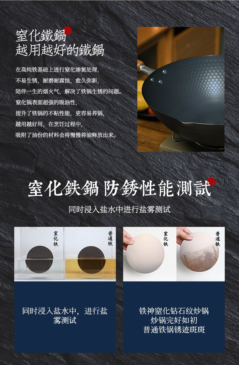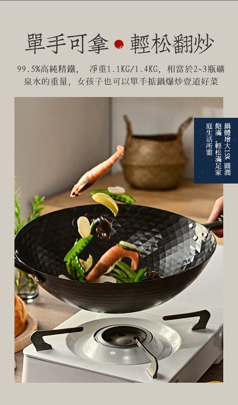 万代传铁锅章丘款炒锅不粘锅锻打无涂层老式炒锅燃气煤气灶通用圆底锅 【4-8人使用】 36cm 手工锻打古法黑锅