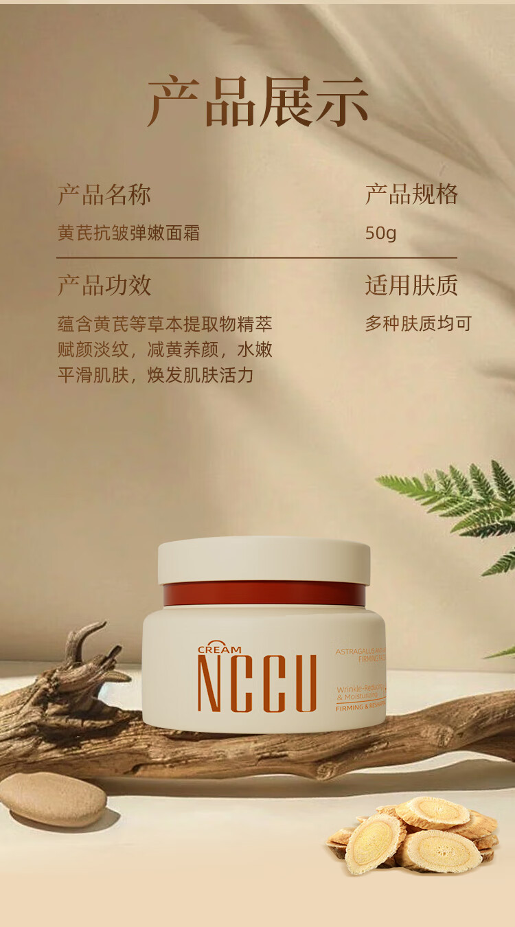NCCU老牌国货黄芪抗皱弹润面霜改善皮肤暗黄保湿补水滋润 50g