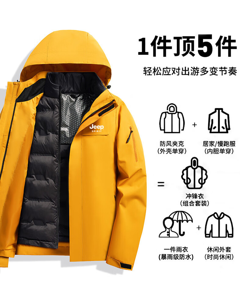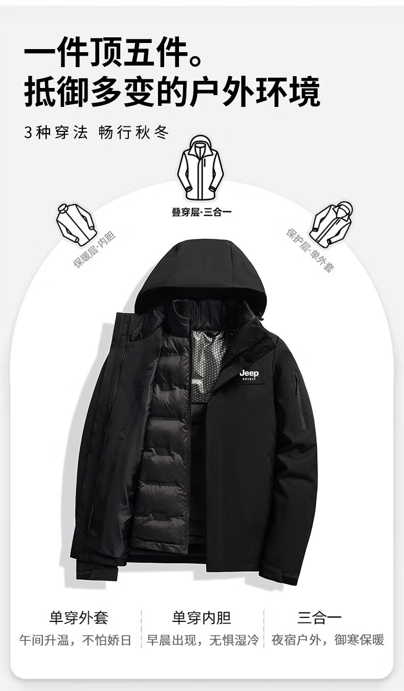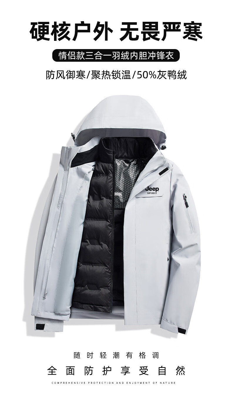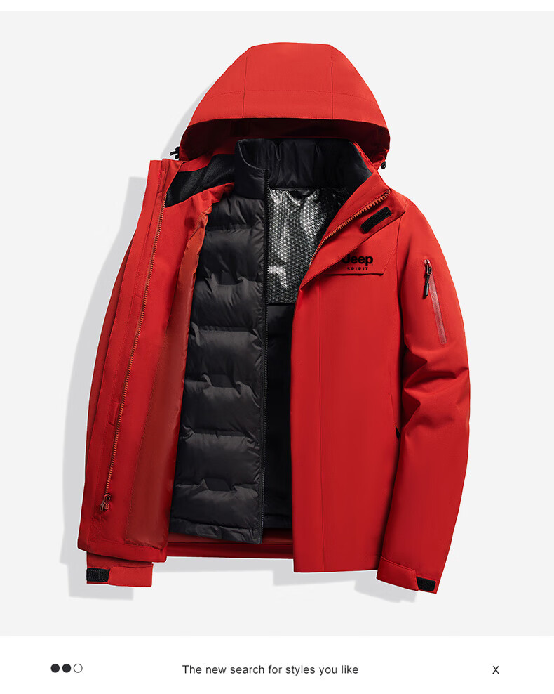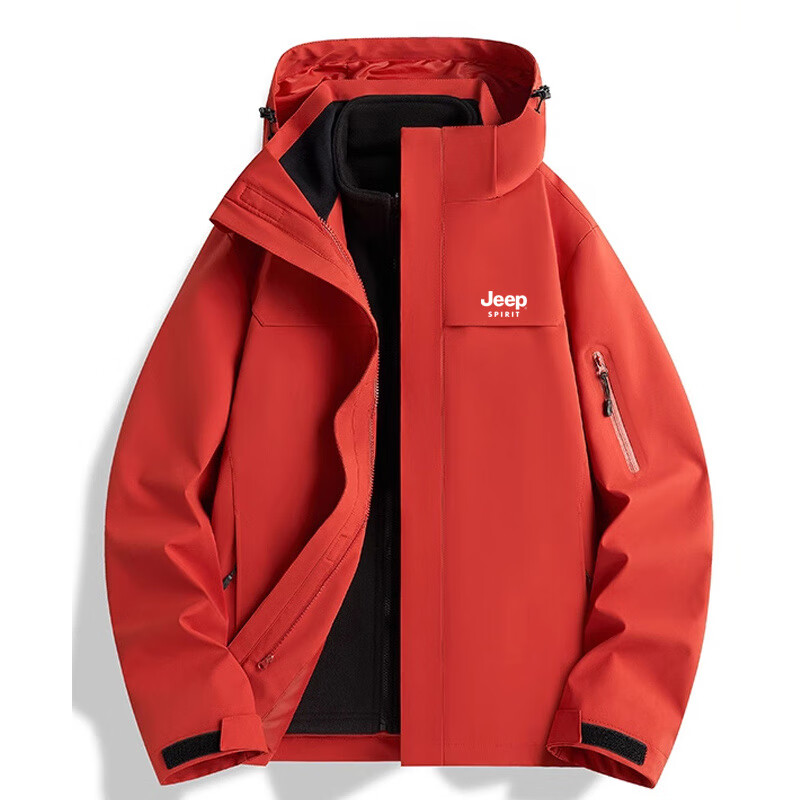 JEEP SPIRIT吉普新款冲锋衣男女可拆卸三合一户外夹克外套羽绒服加厚防风外套 朱雀红【羽绒内胆】男女同款 3XL (建议参考下方尺码表)