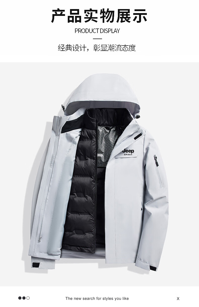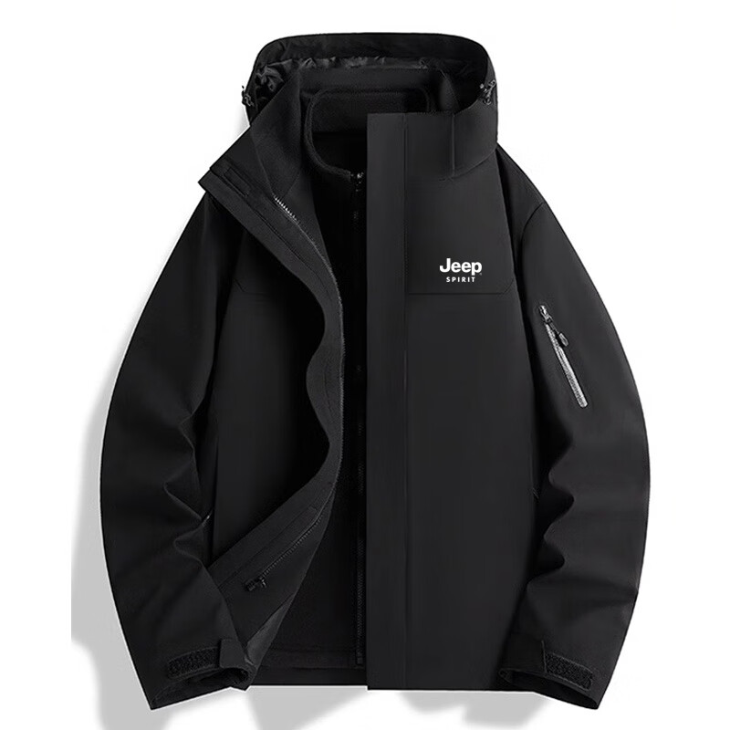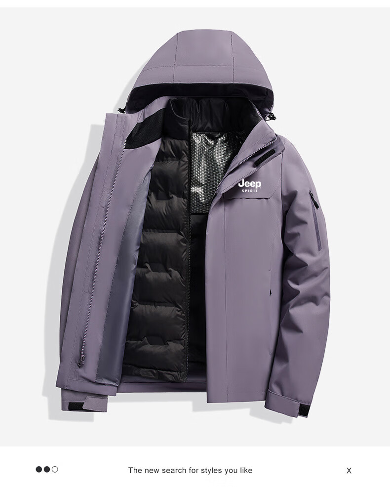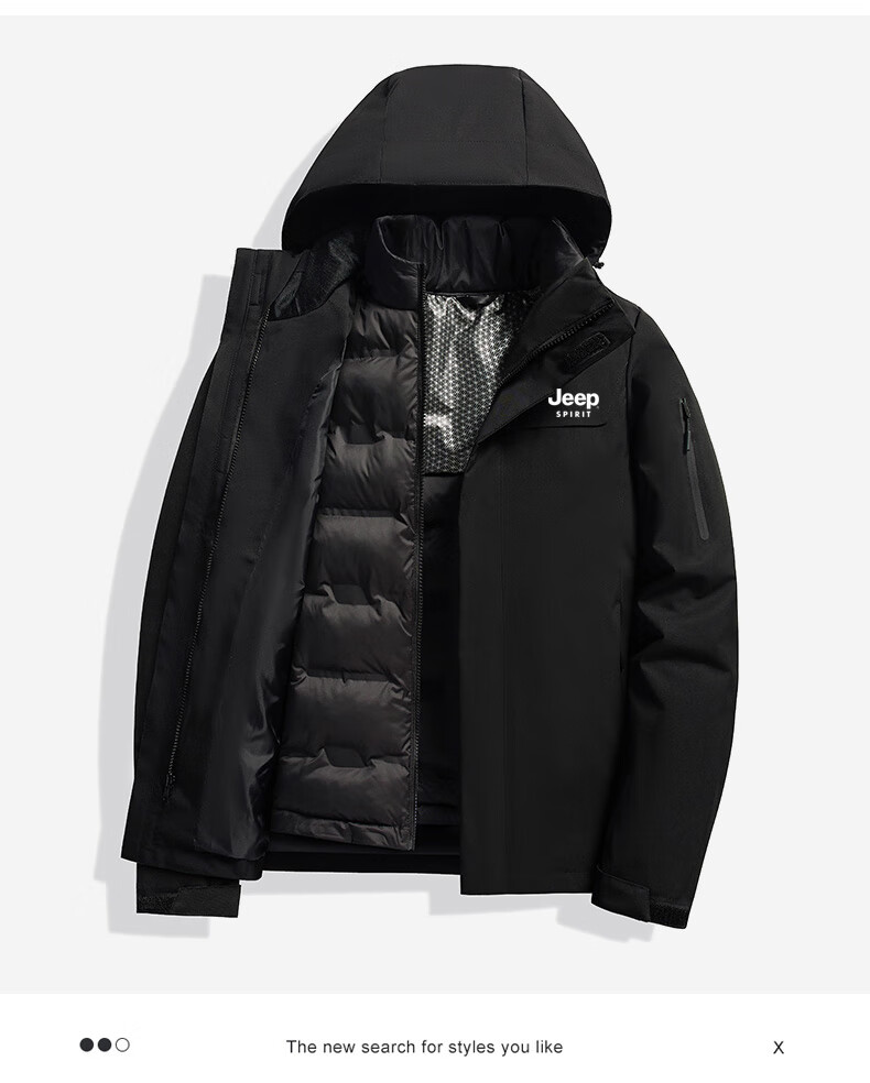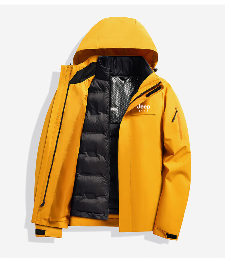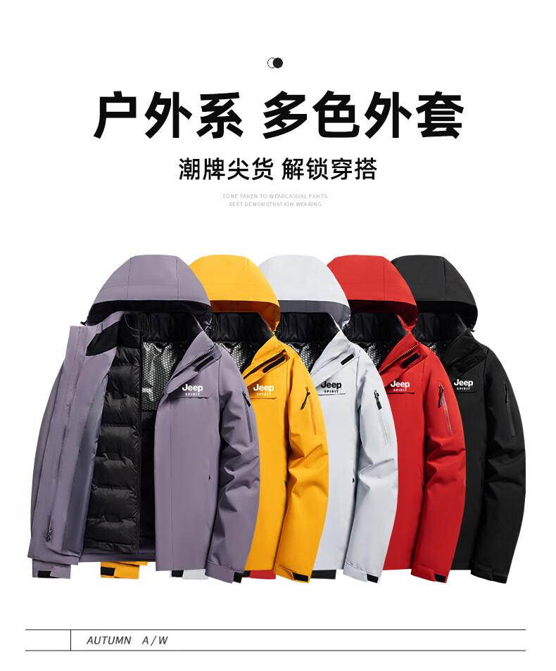 JEEP SPIRIT吉普新款冲锋衣男女可拆卸三合一户外夹克外套羽绒服加厚防风外套 朱雀红【羽绒内胆】男女同款 3XL (建议参考下方尺码表)