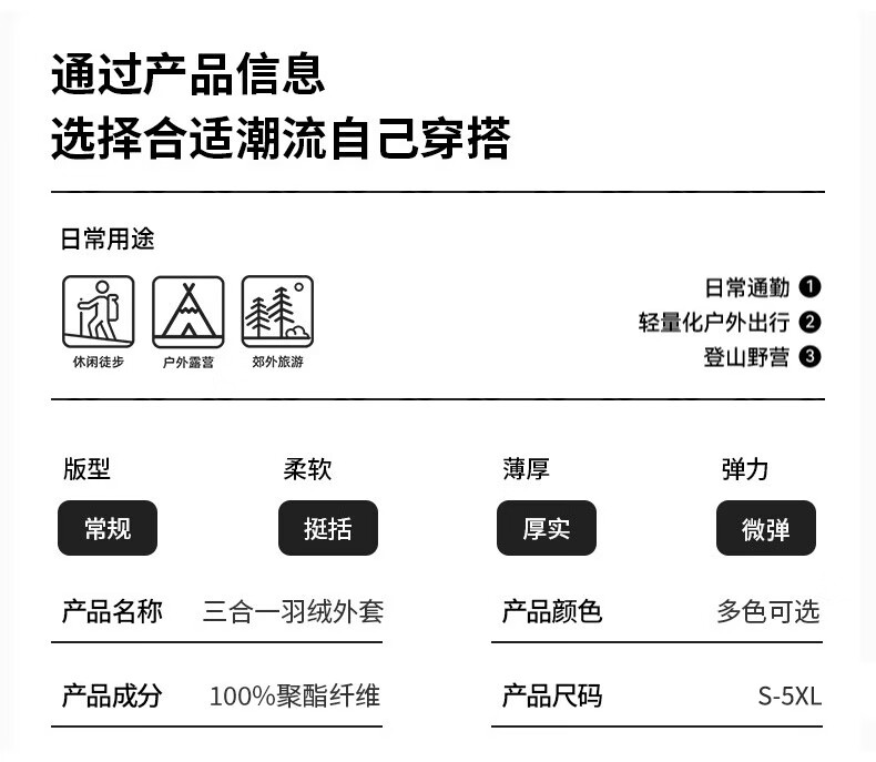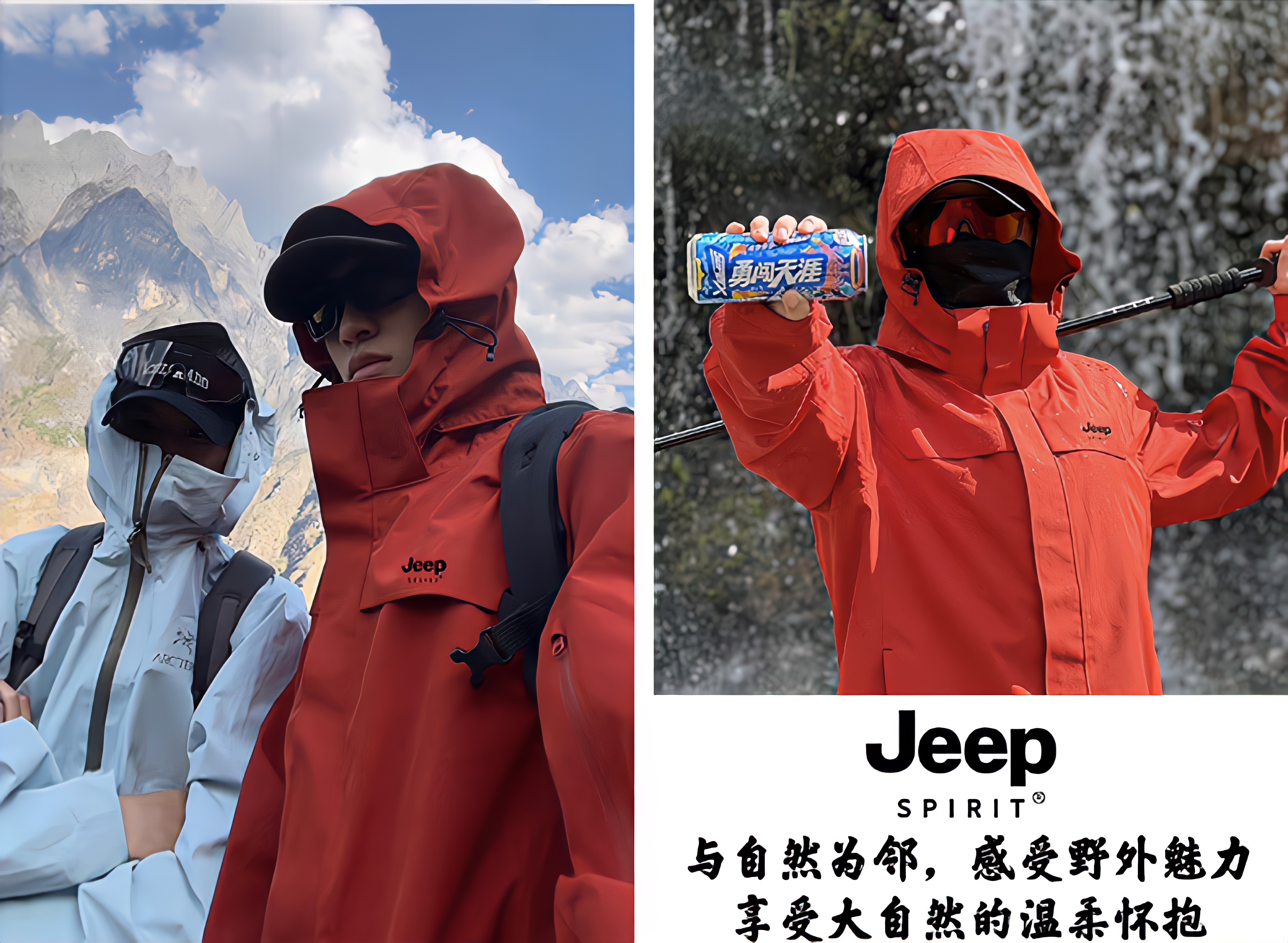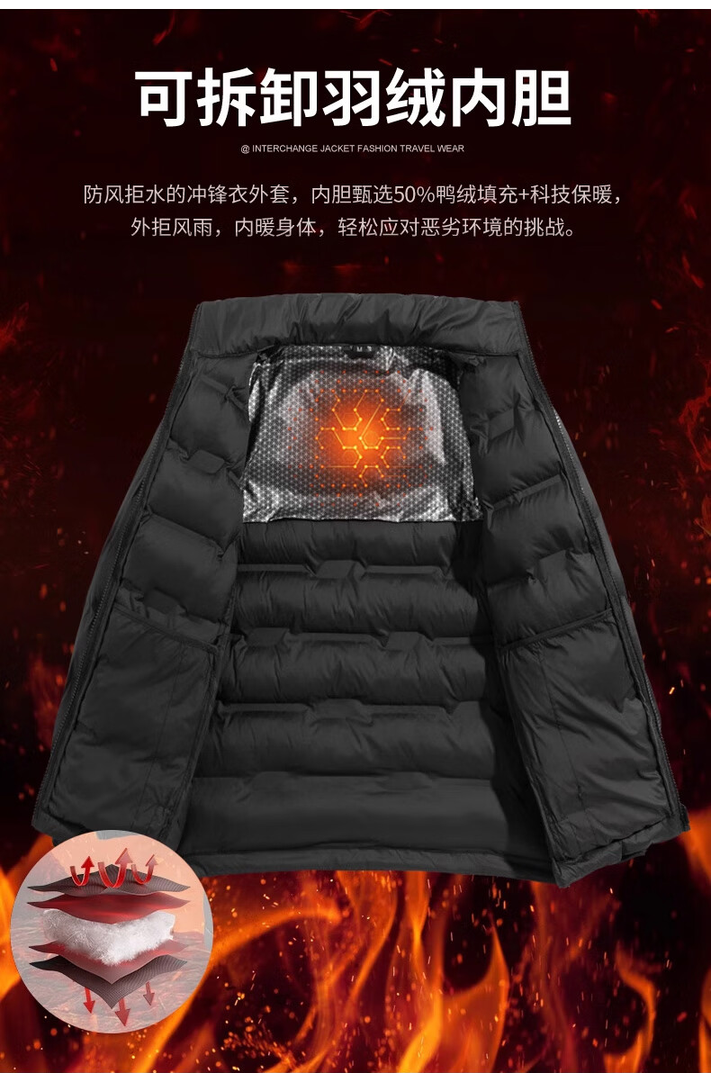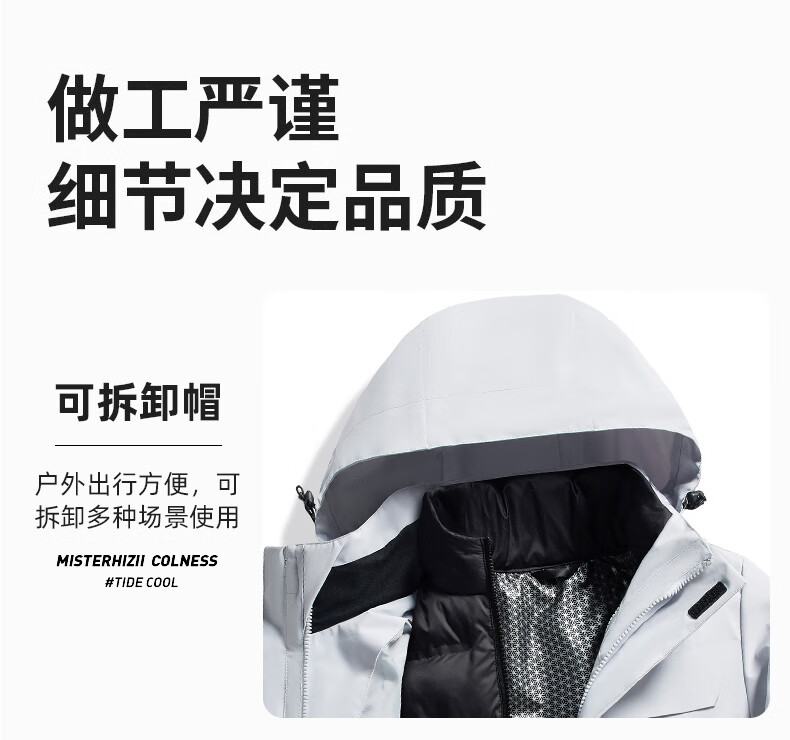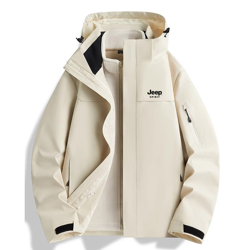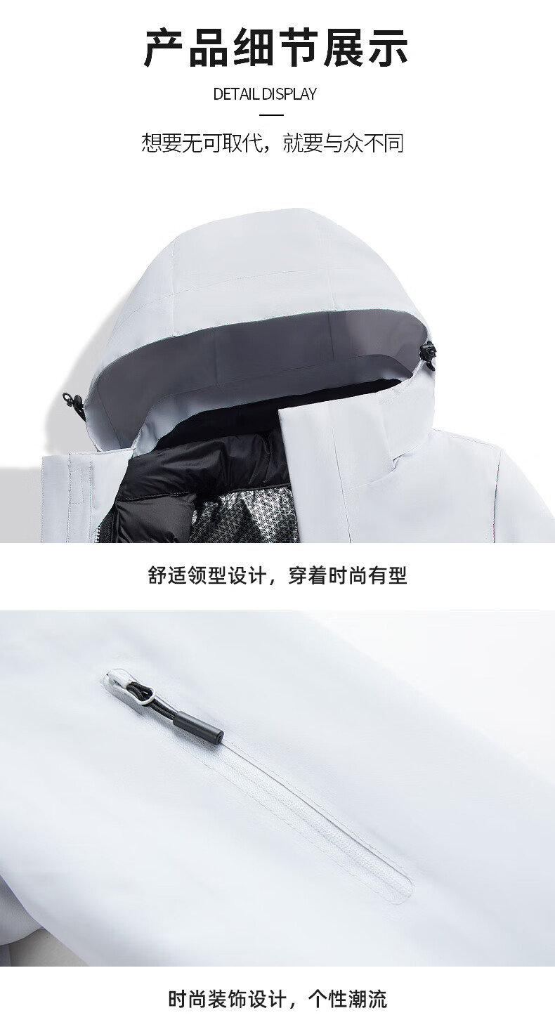JEEP SPIRIT吉普新款冲锋衣男女可拆卸三合一户外夹克外套羽绒服加厚防风外套 朱雀红【羽绒内胆】男女同款 3XL (建议参考下方尺码表)