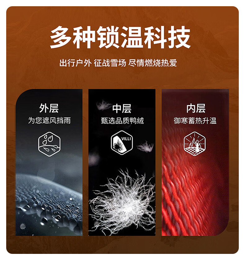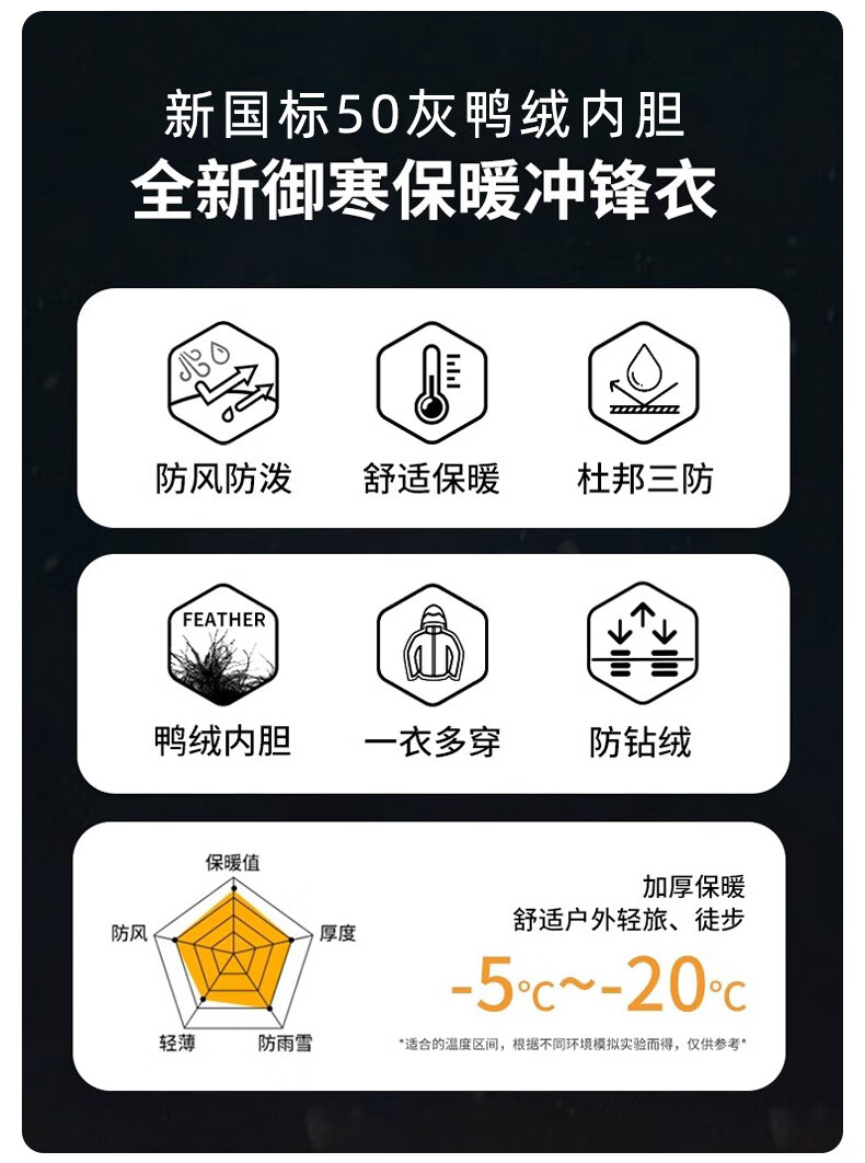 鸿星尔克四防|羽绒服男秋冬新款保暖防风防污防泼水户外休闲运动外套夹克 正黑 2XL
