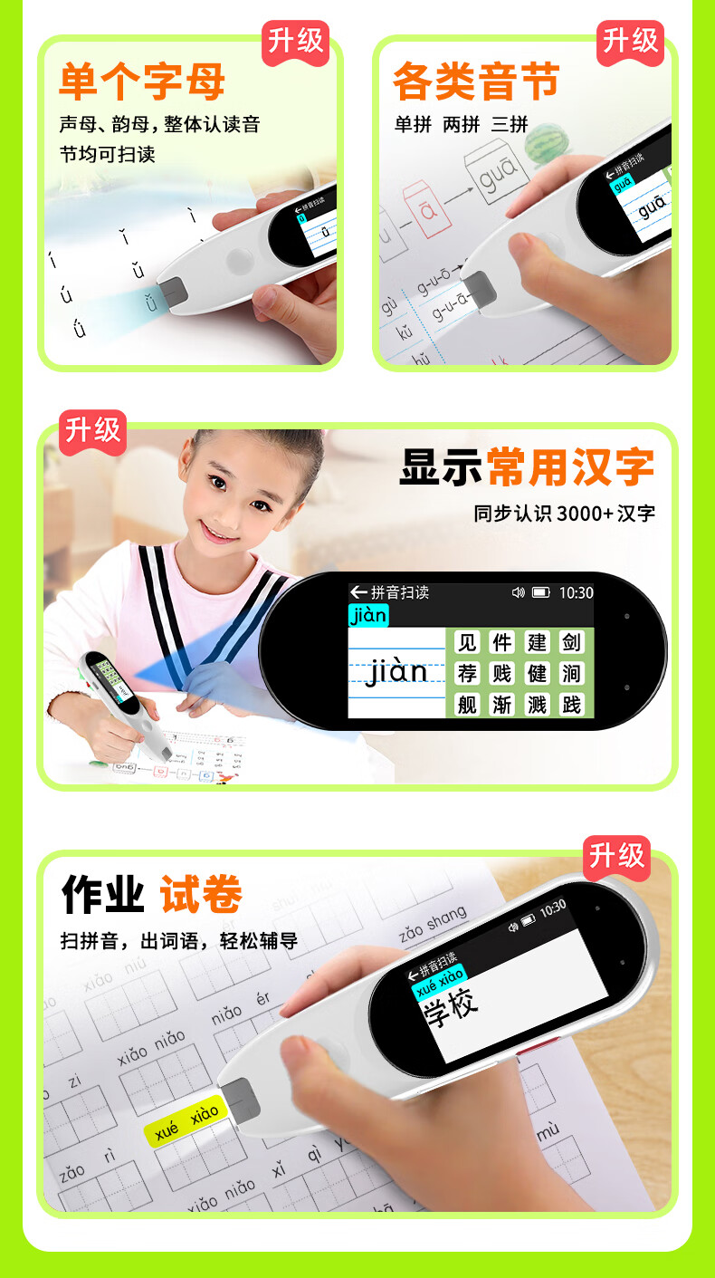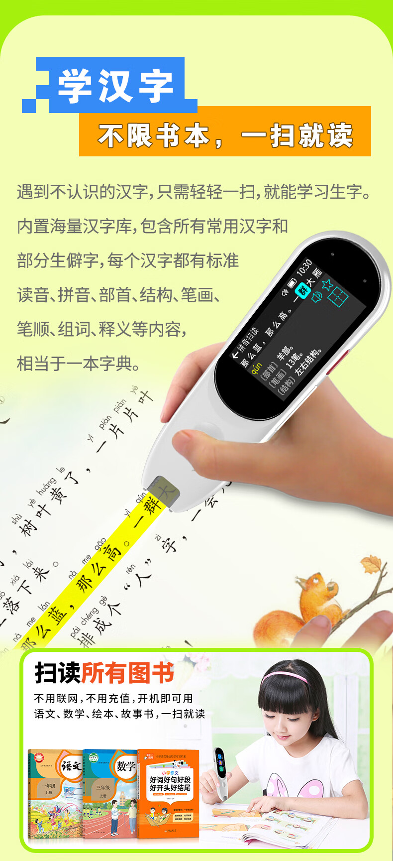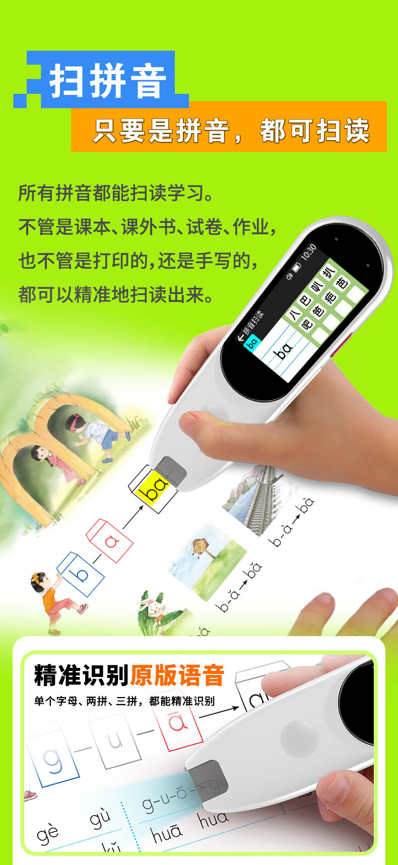 第二课堂拼音点读笔幼小衔接拼音拼读训练同步课本教材识字神器英语离线扫描翻译点读学习机男女孩生日礼物 拼音扫读笔(可扫读任何拼音/汉字/英语/词语) 白色