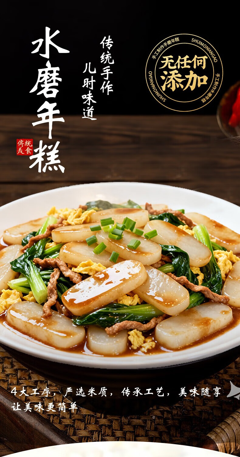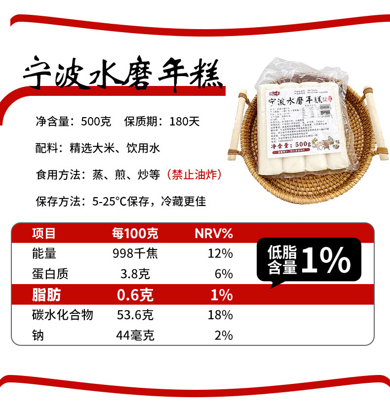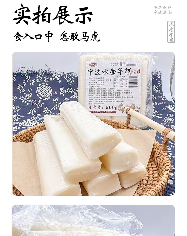 浙一刻正宗浙江宁波特产水磨年糕条火锅宽条油炸火锅韩式半成品无添加 年糕条500gx3