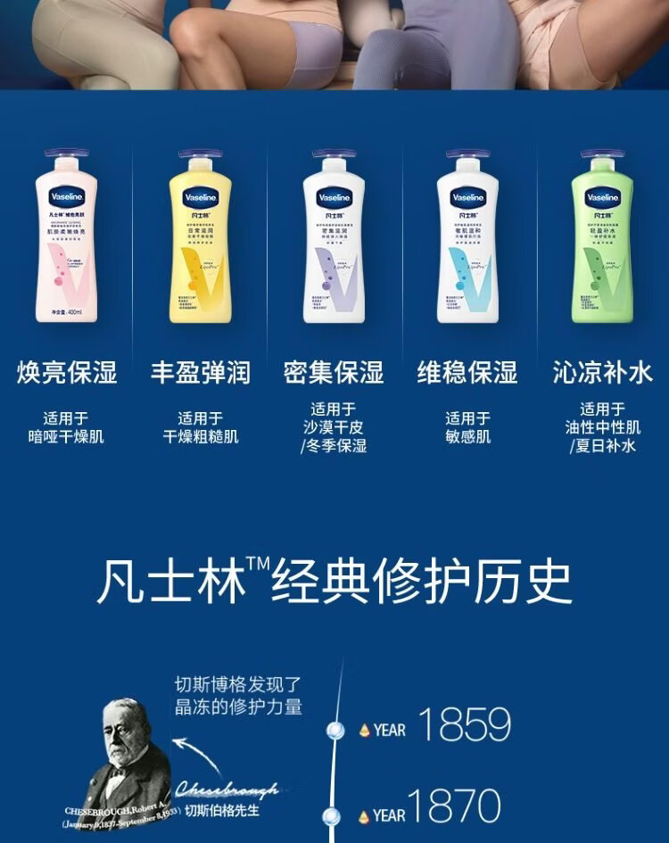 凡士林[热销百万]身体乳大白罐400g保湿滋润修护润肤 清爽不粘腻