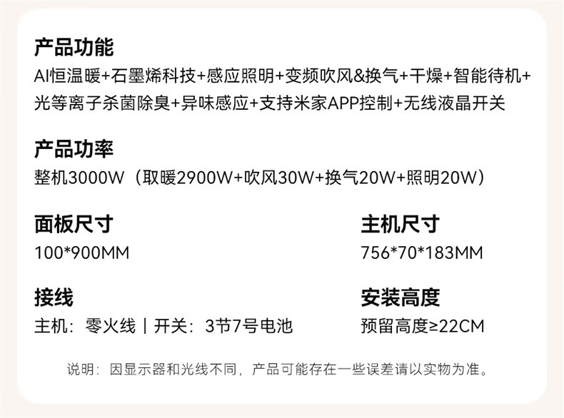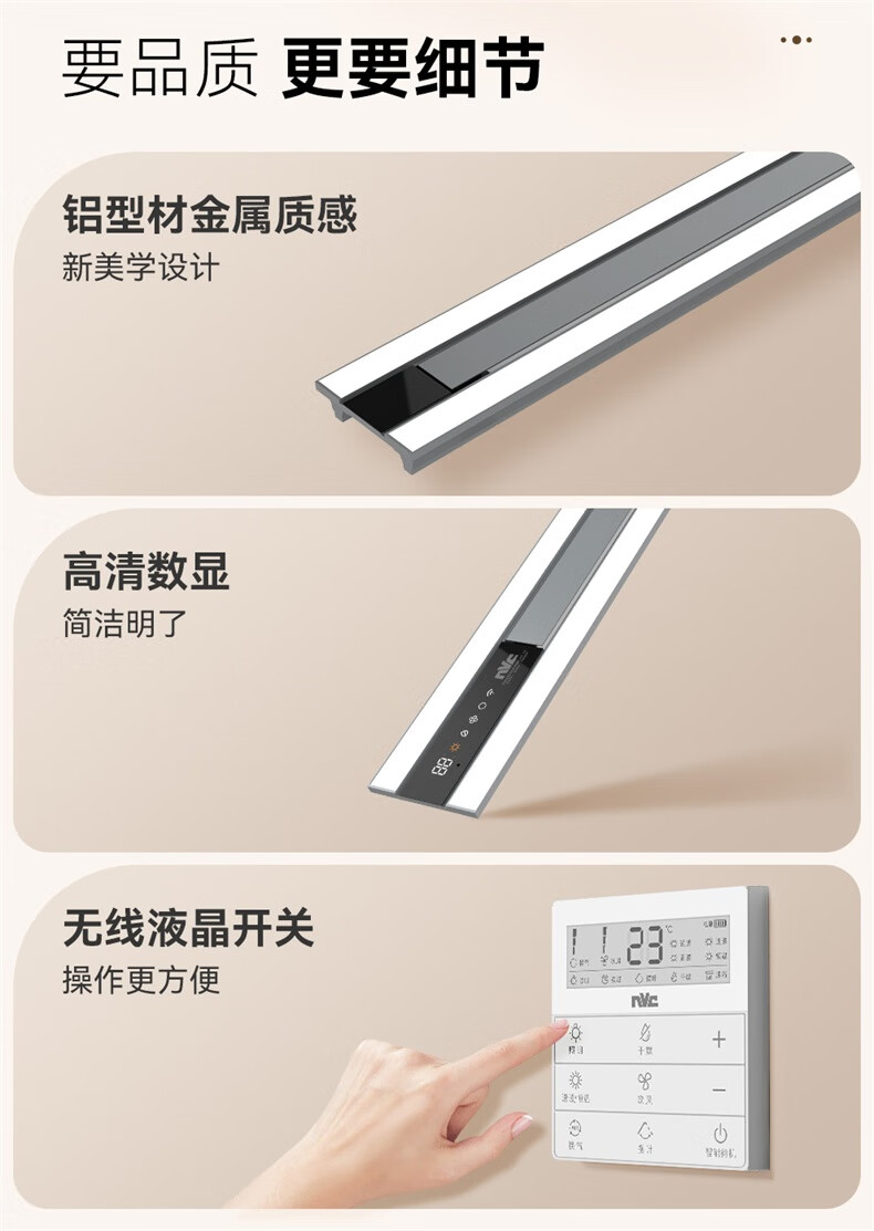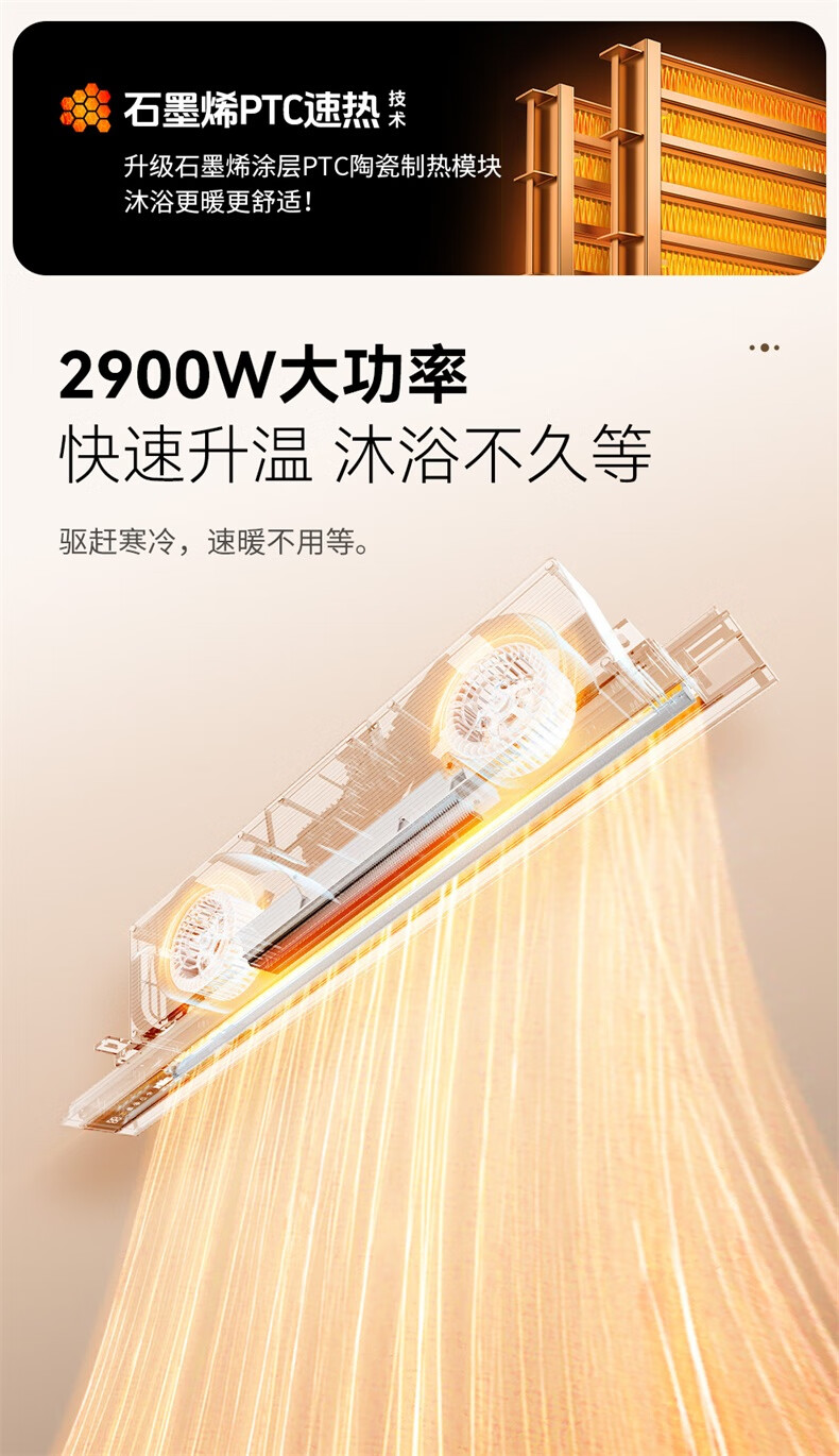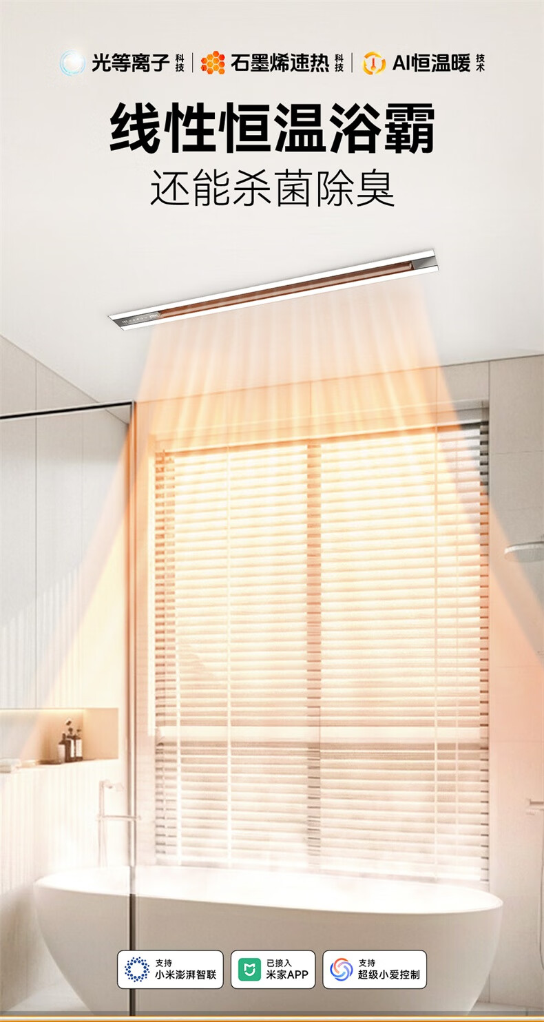 雷士(NVC)浴霸暖风照明排气一体卫生间大功率智能恒温换气线性浴霸Y390 【重磅上新】2900W光等离子除菌