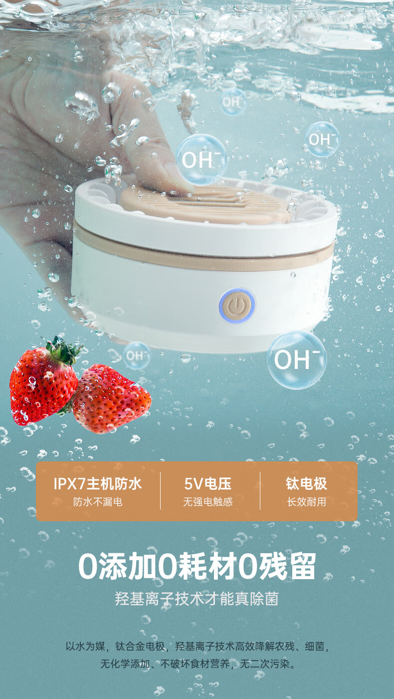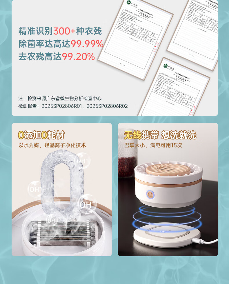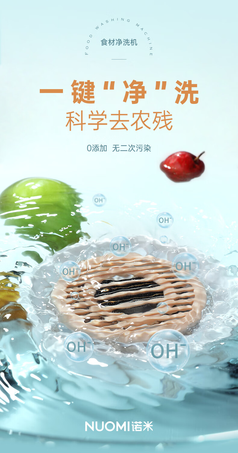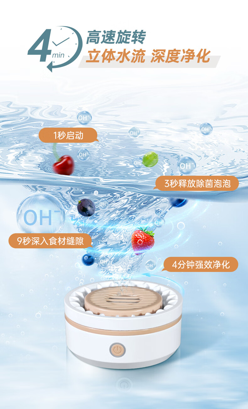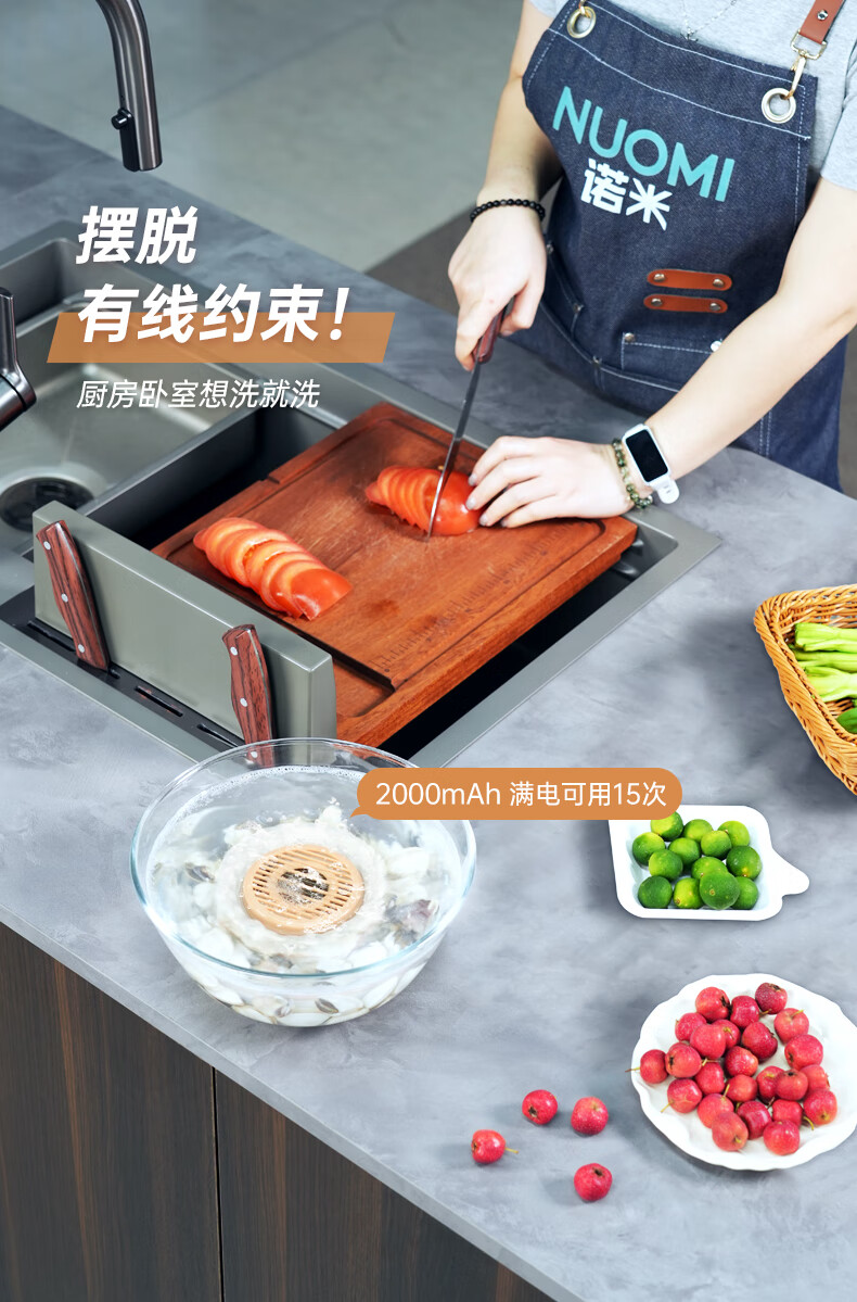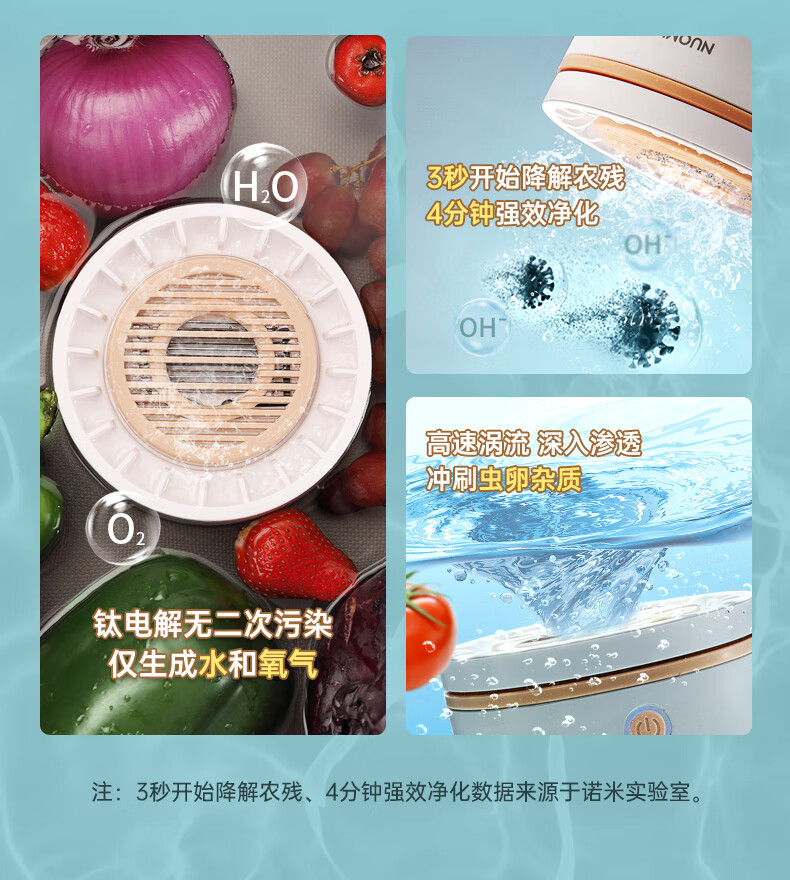诺米(Nuomi)家用水果蔬菜食材清洗机无线充电漩涡式高效去农残一体果蔬净洗机 漩涡式食材净洗机*1