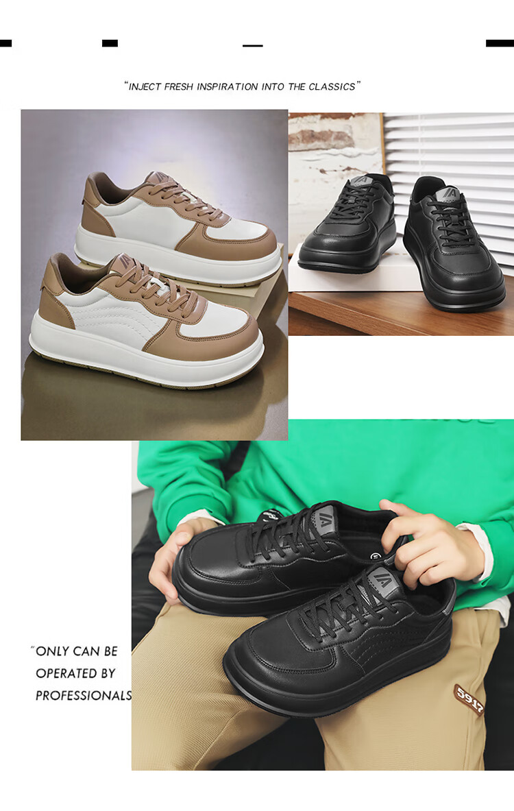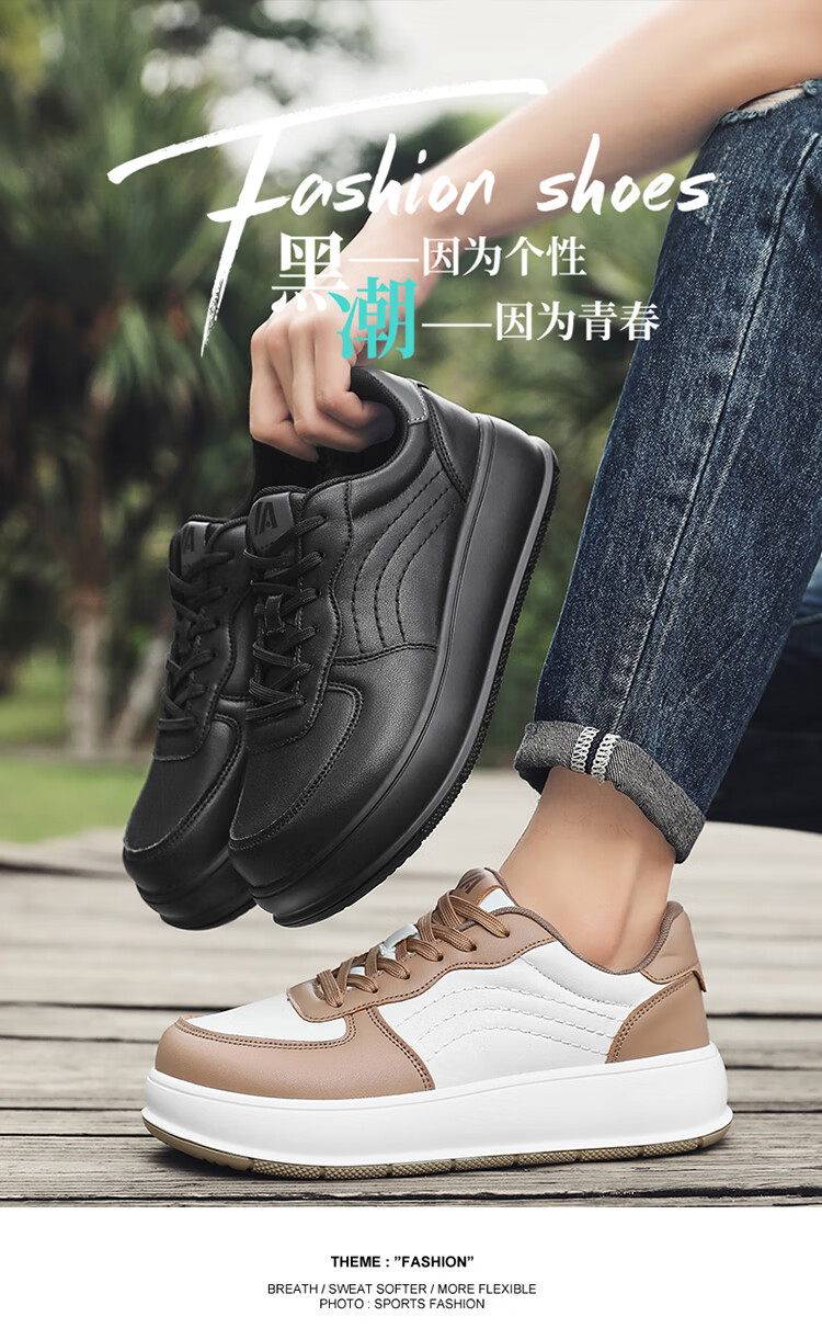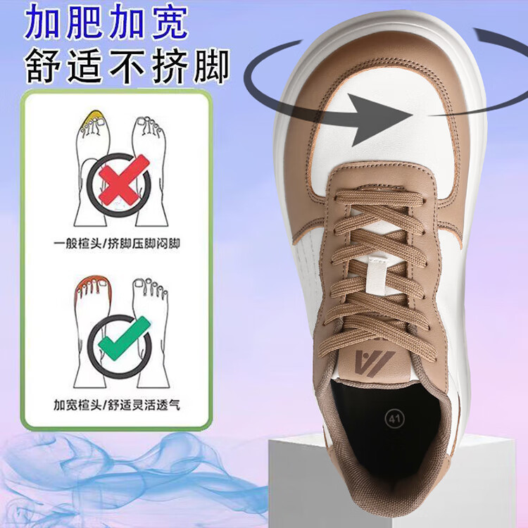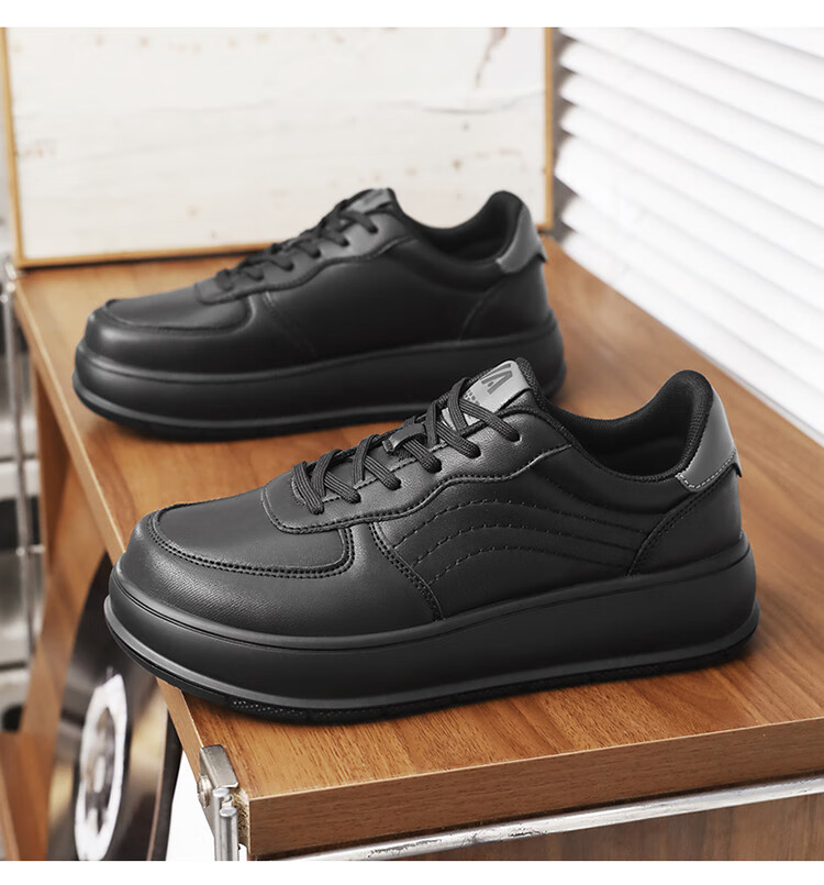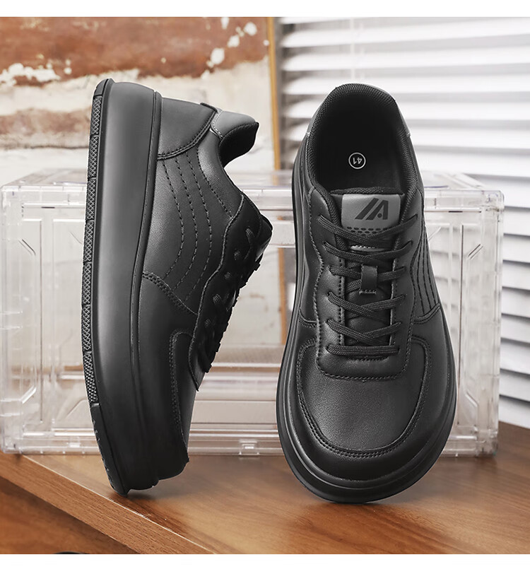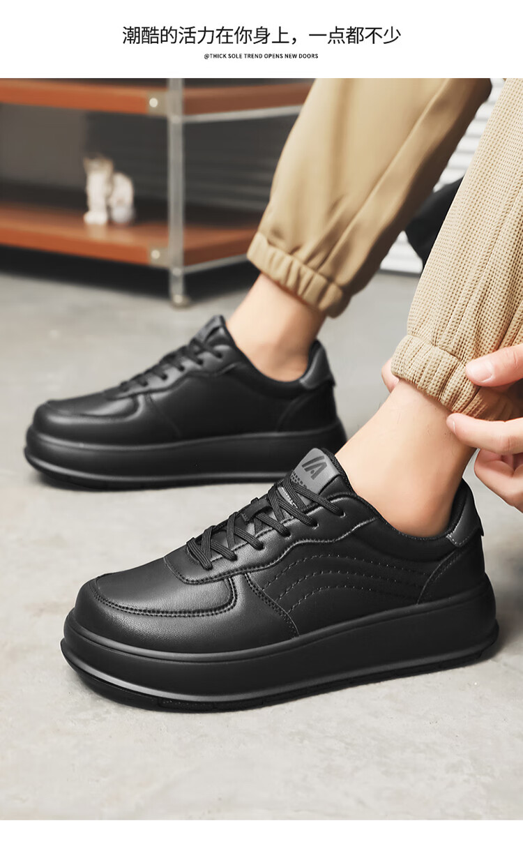 稻草人(MEXICAN)加宽加肥4E宽楦鞋48特大码板鞋秋冬季皮面防水皮鞋休闲脚宽胖男鞋 黑色【加绒款】 【适合脚宽胖人群】 46
