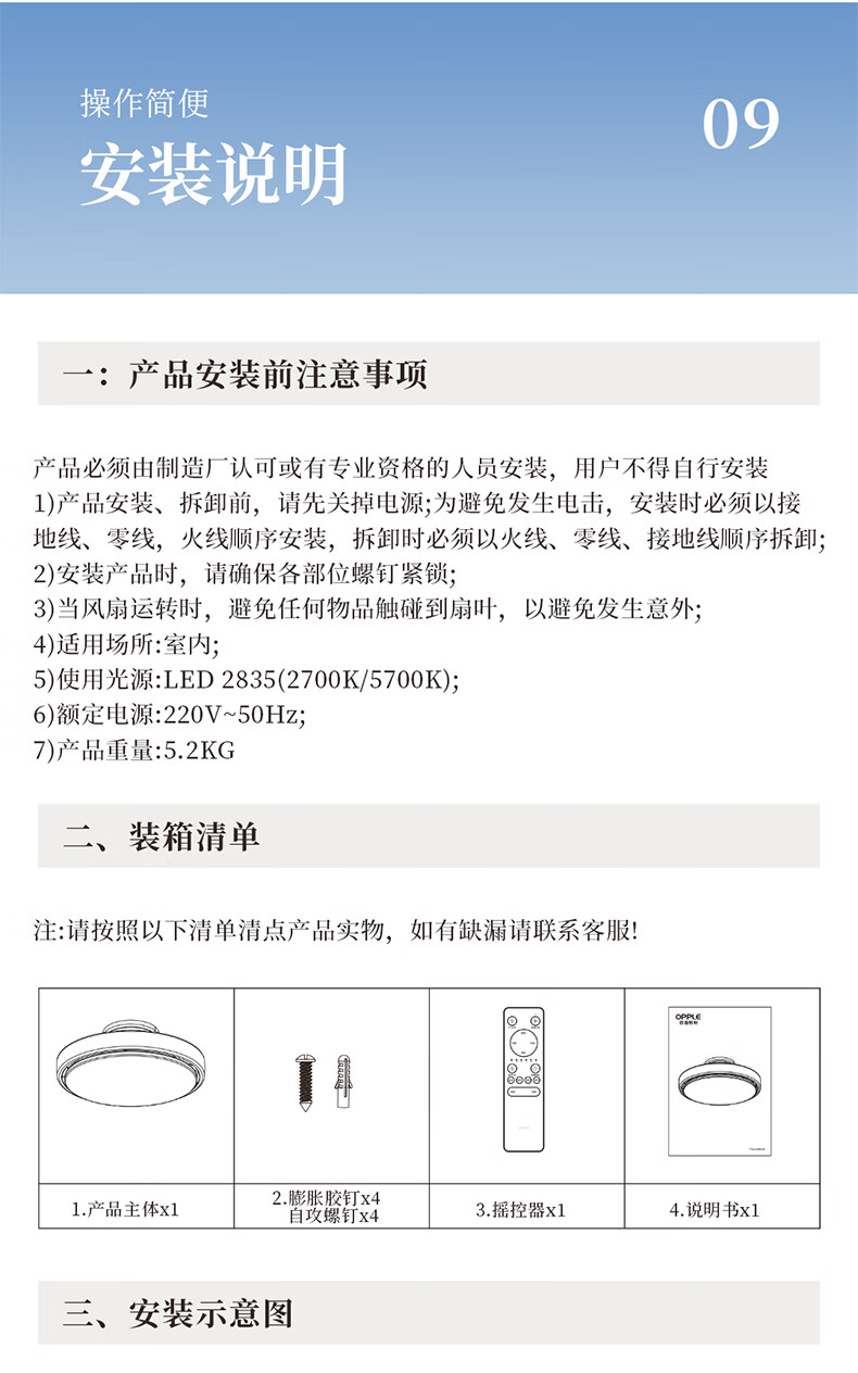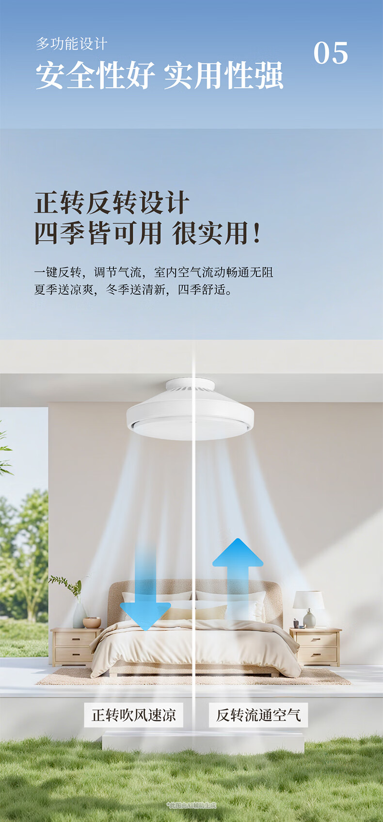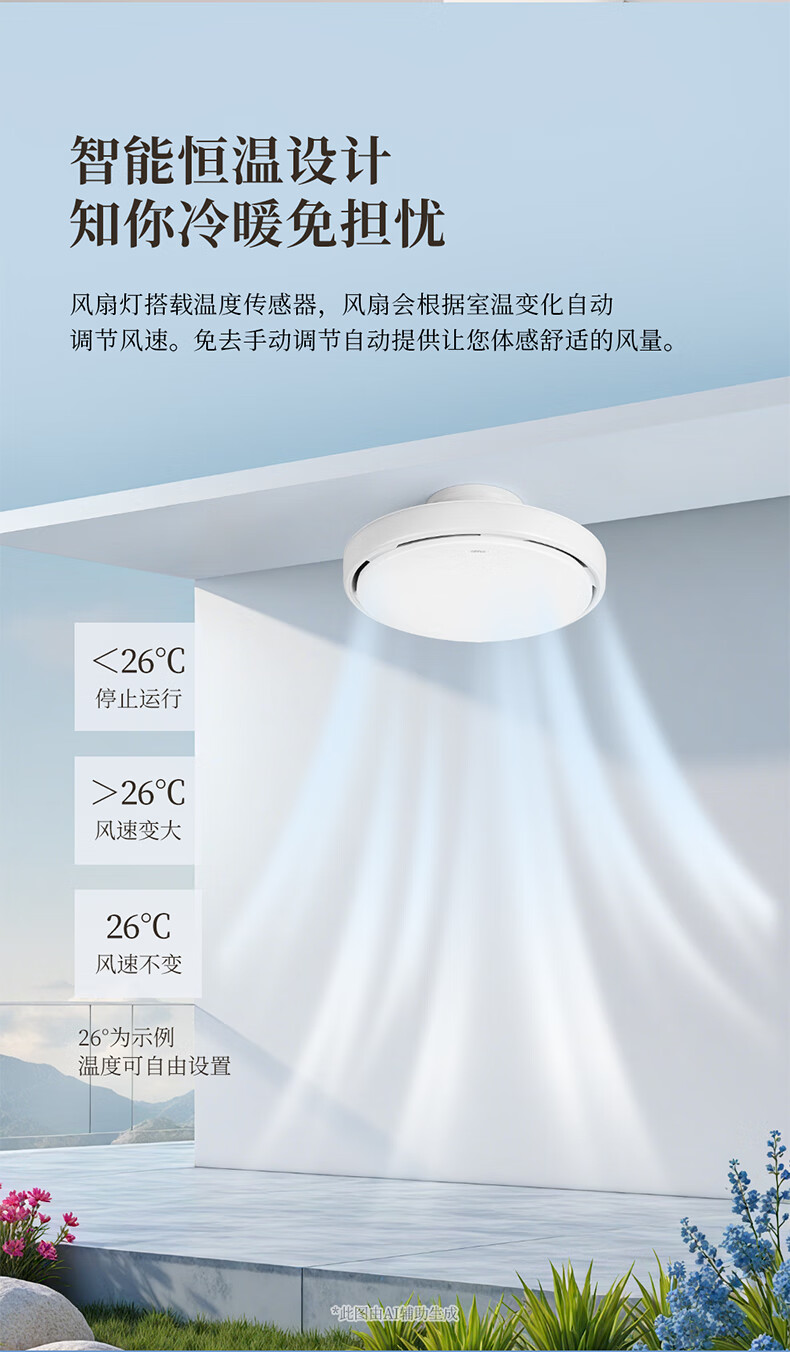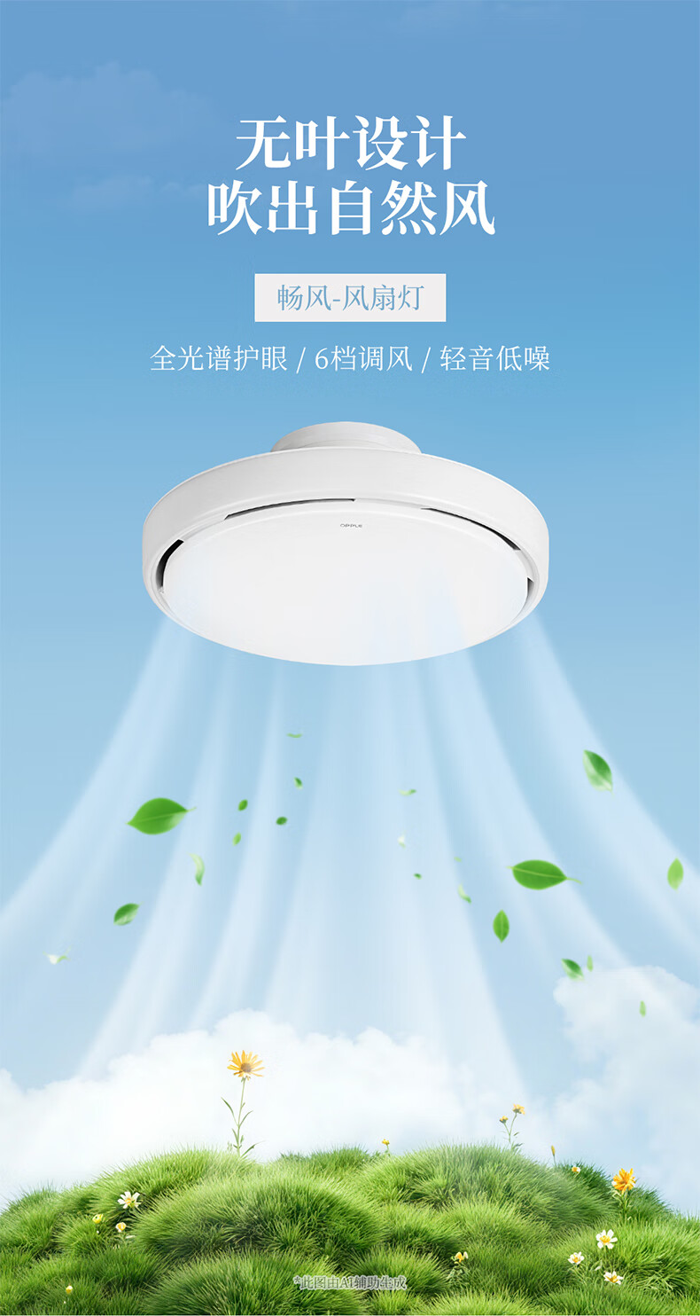 欧普照明(OPPLE)【无叶风扇灯】全光谱护眼卧室客厅现代简约调光灯具 离心吹风技术/60瓦三档调色