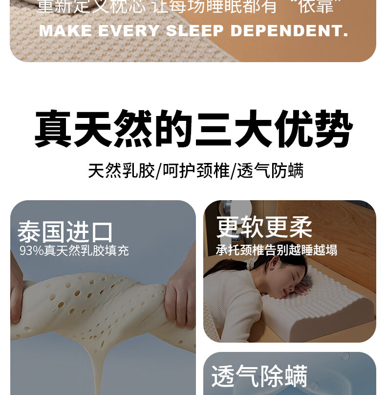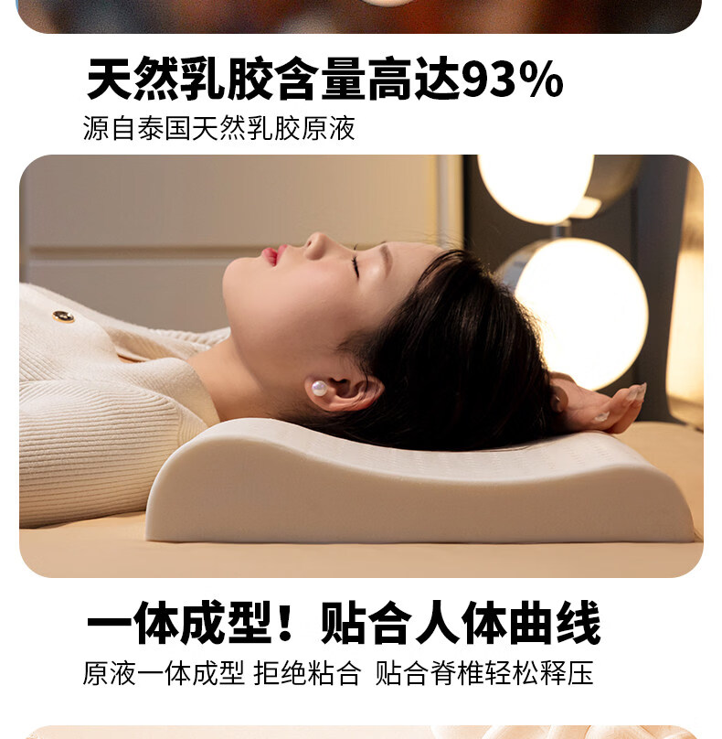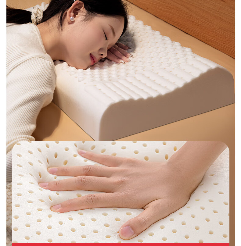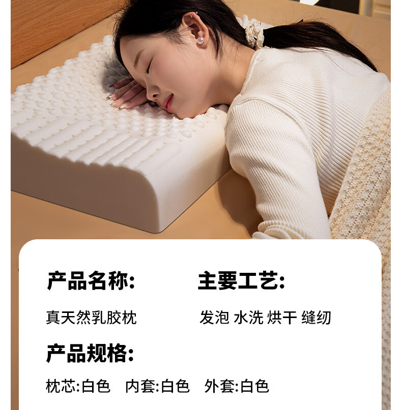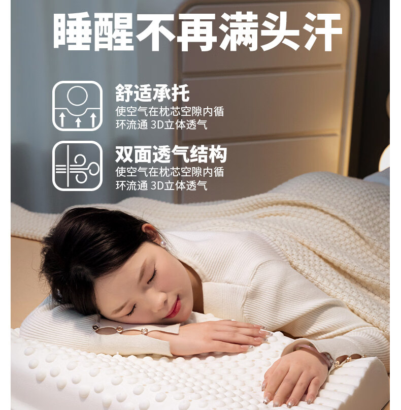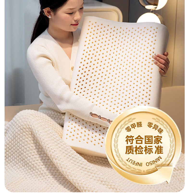 名创优品(MINISO)乳胶枕头护颈枕 橡胶枕学生枕成人枕护颈椎枕芯助眠枕 单只 【成人中枕】护颈助眠款-60x40cm 6-10cm