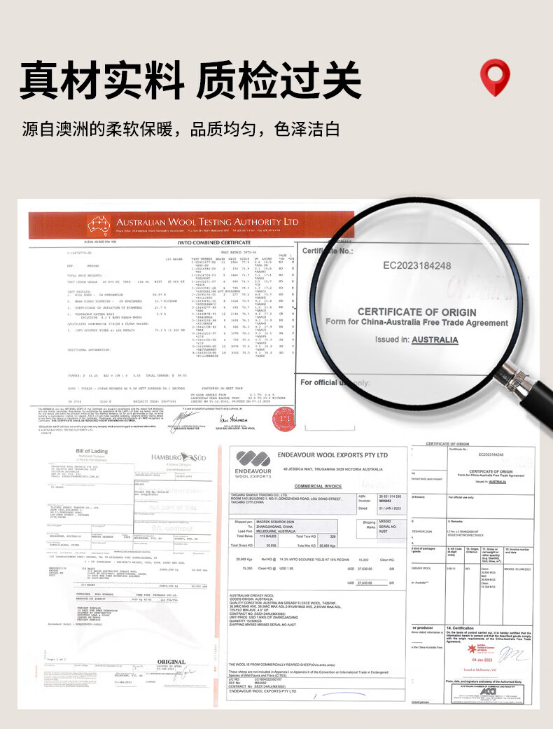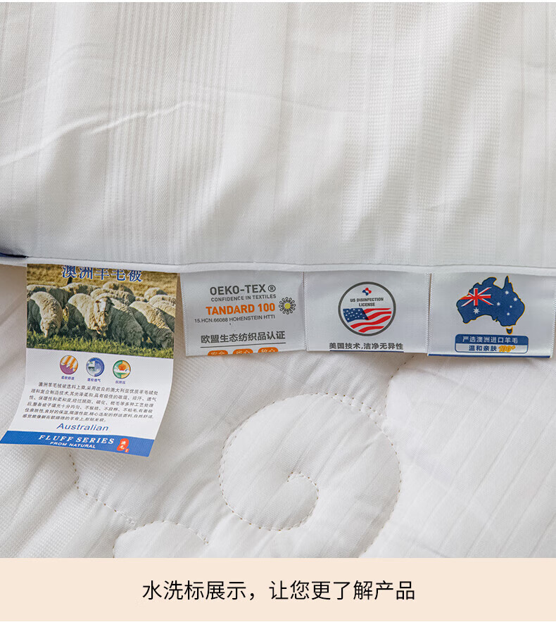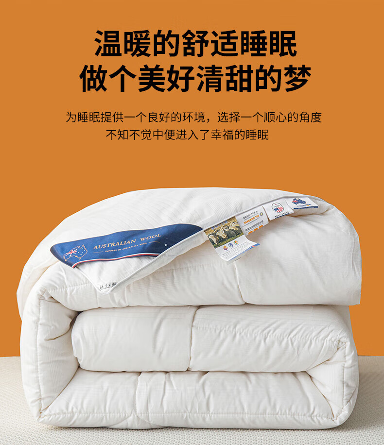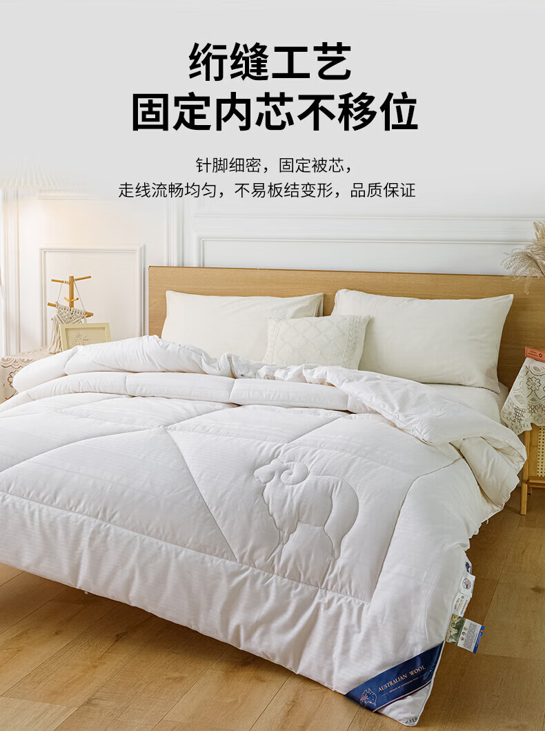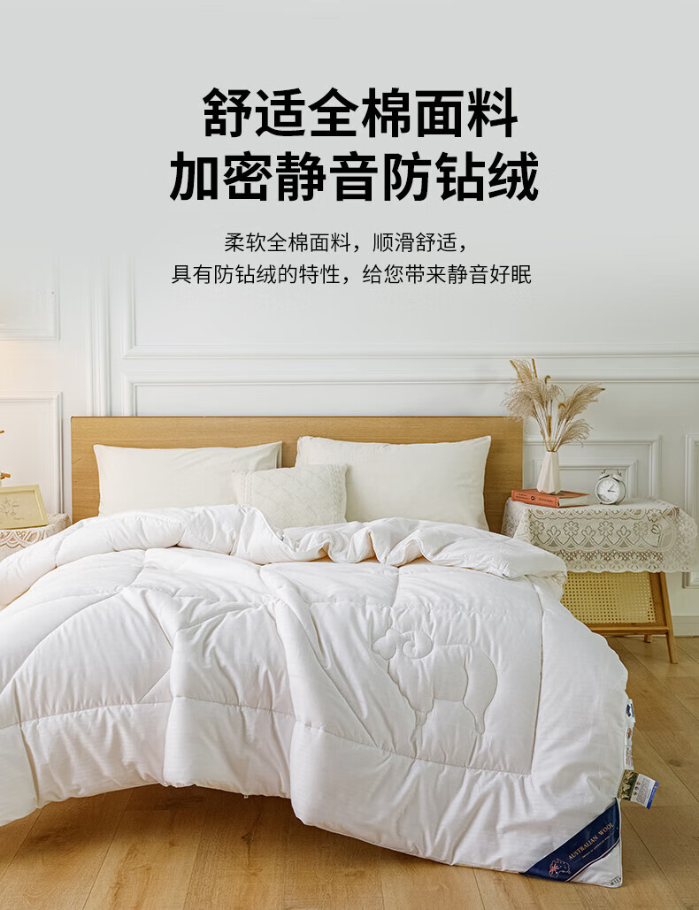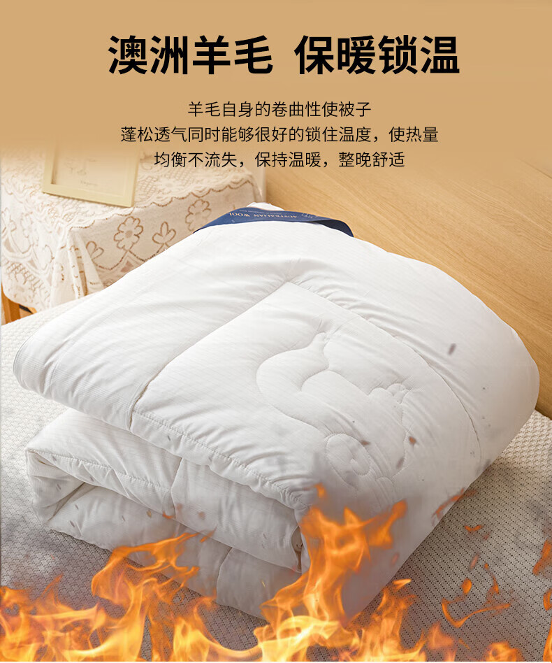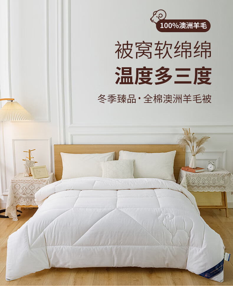 恒源祥高端A类进口澳洲绵羊毛被子10斤厚冬被冬被8斤加厚被芯春秋被保暖 白色 150*200cm【3.6斤春秋被】