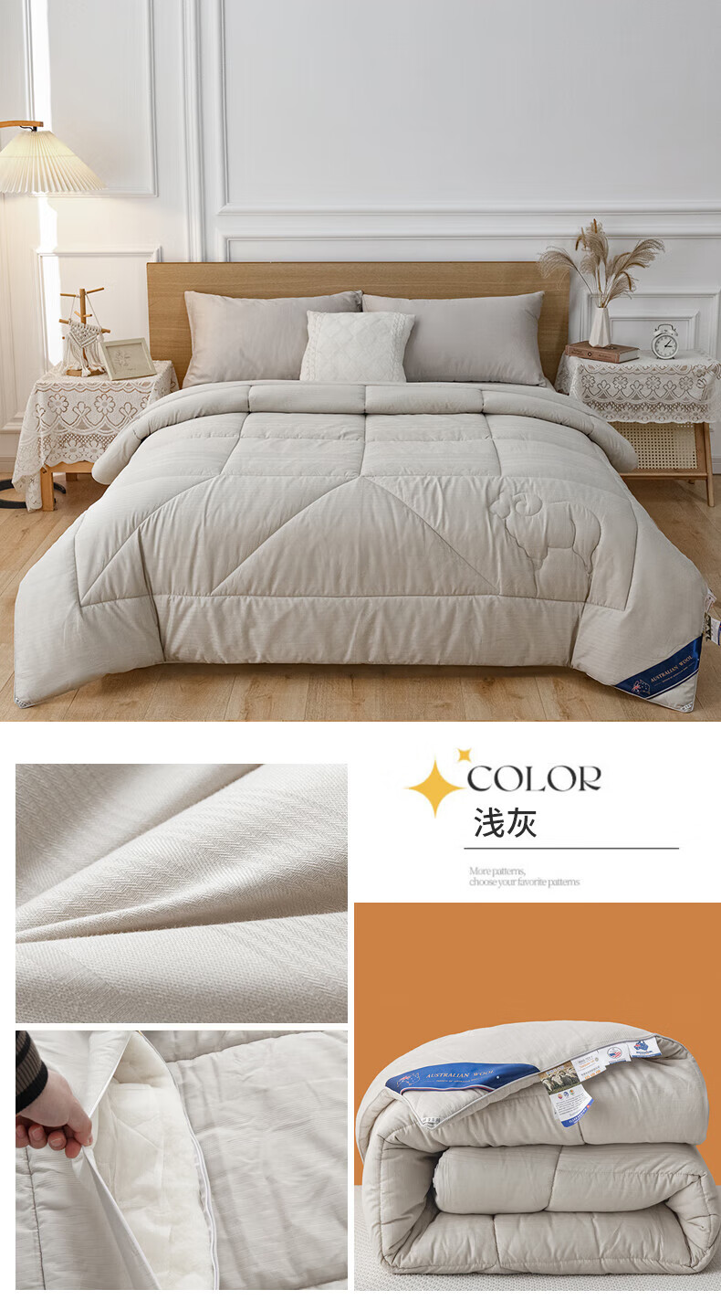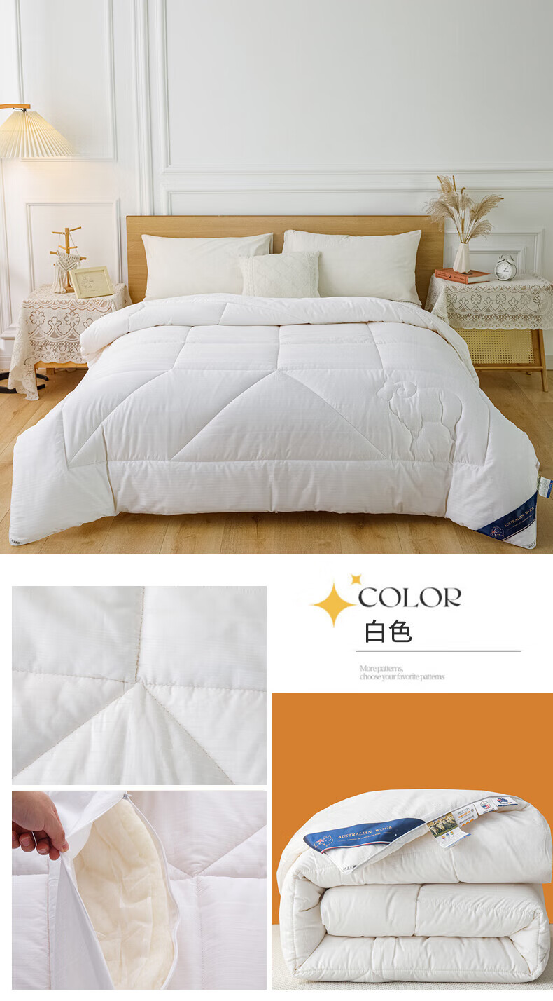 恒源祥澳洲进口羊毛被春秋被子母被子8斤冬被芯加厚冬季保暖棉被空调被 白色 150X200cm【4斤夏被】