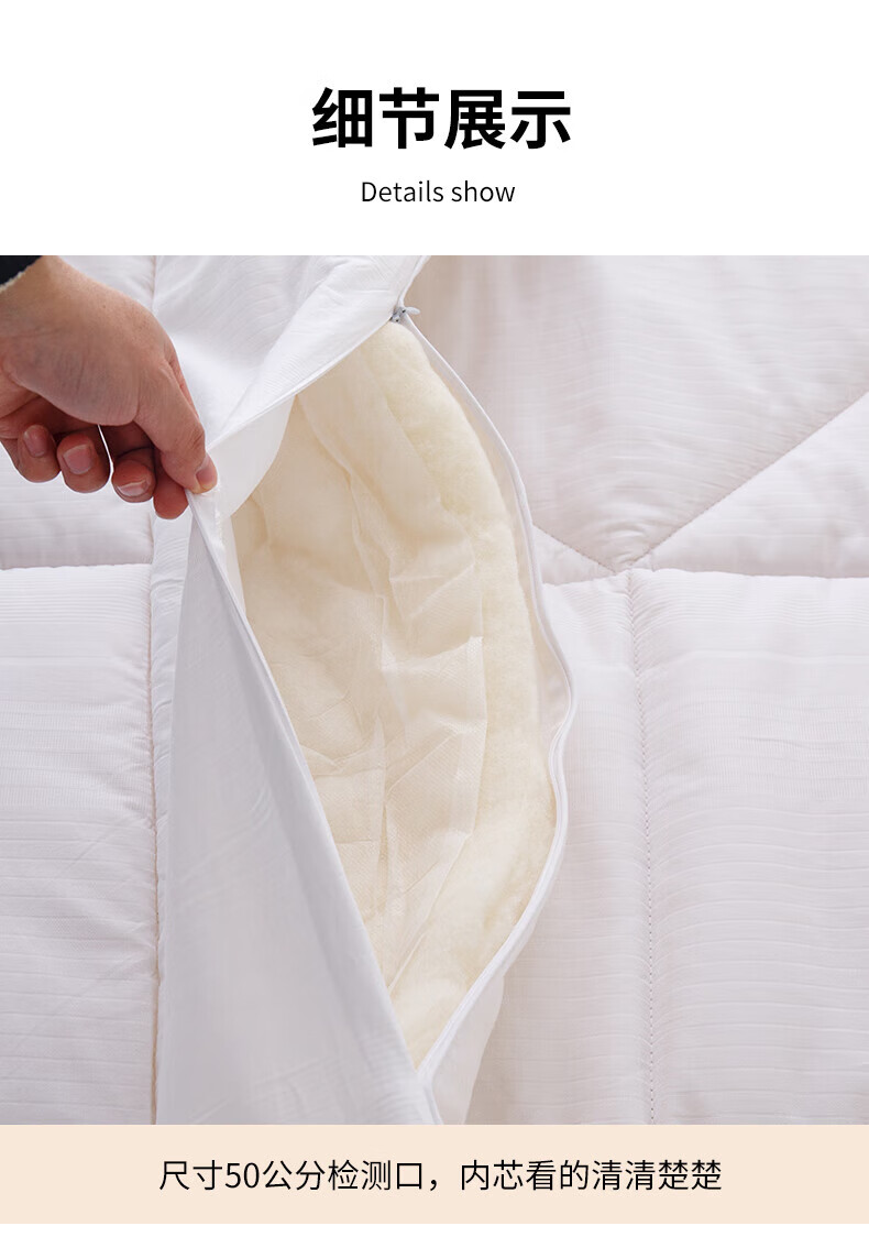 恒源祥澳洲羊毛被春秋被冬被芯加厚保暖羊毛单人被子10斤厚棉被褥 白色 150x200cm【4斤夏被】