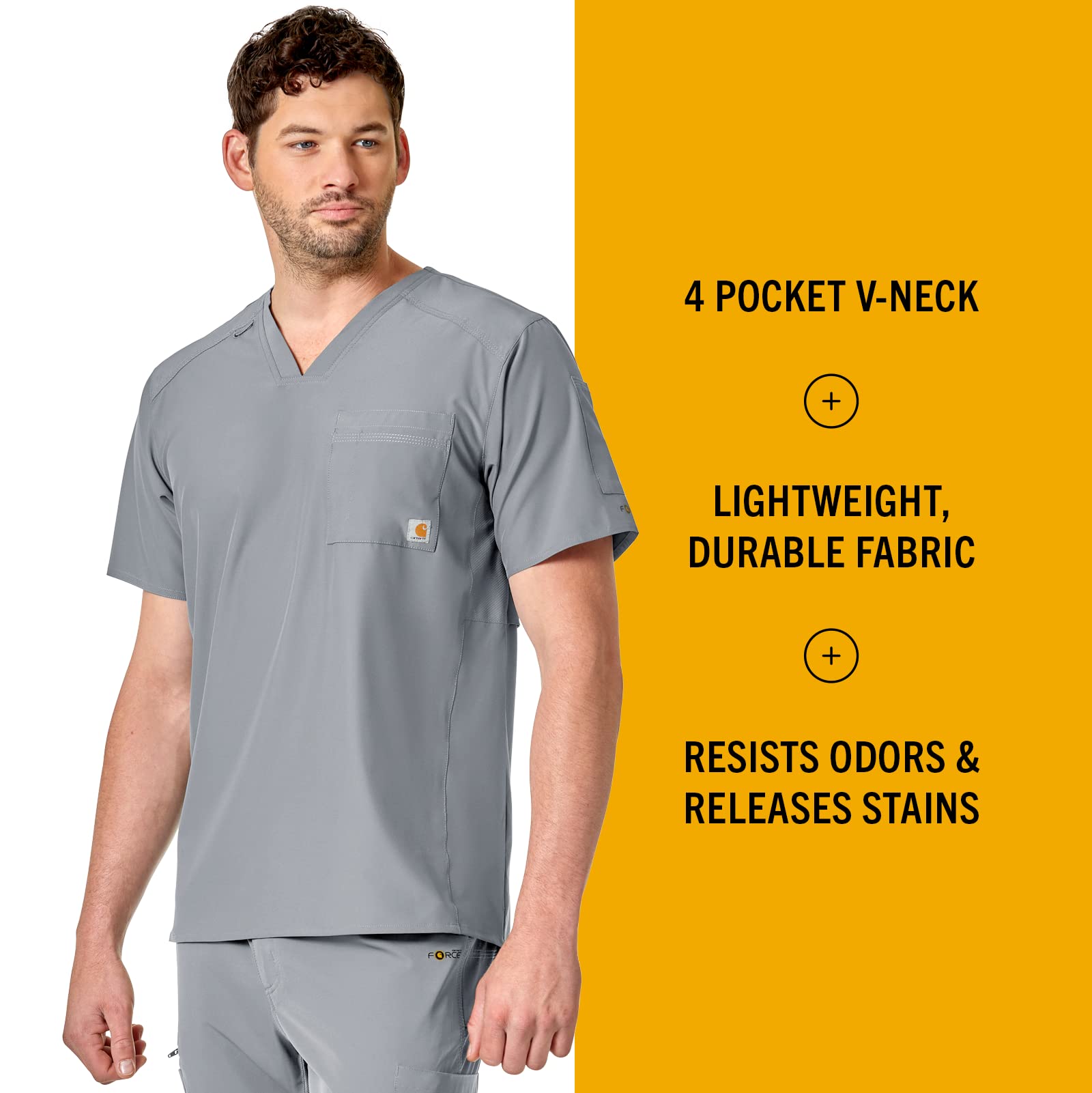 Carhartt卡哈特Carhartt 男式 Force V 领衬衫上衣, 锡色, 4X 锡色 4X