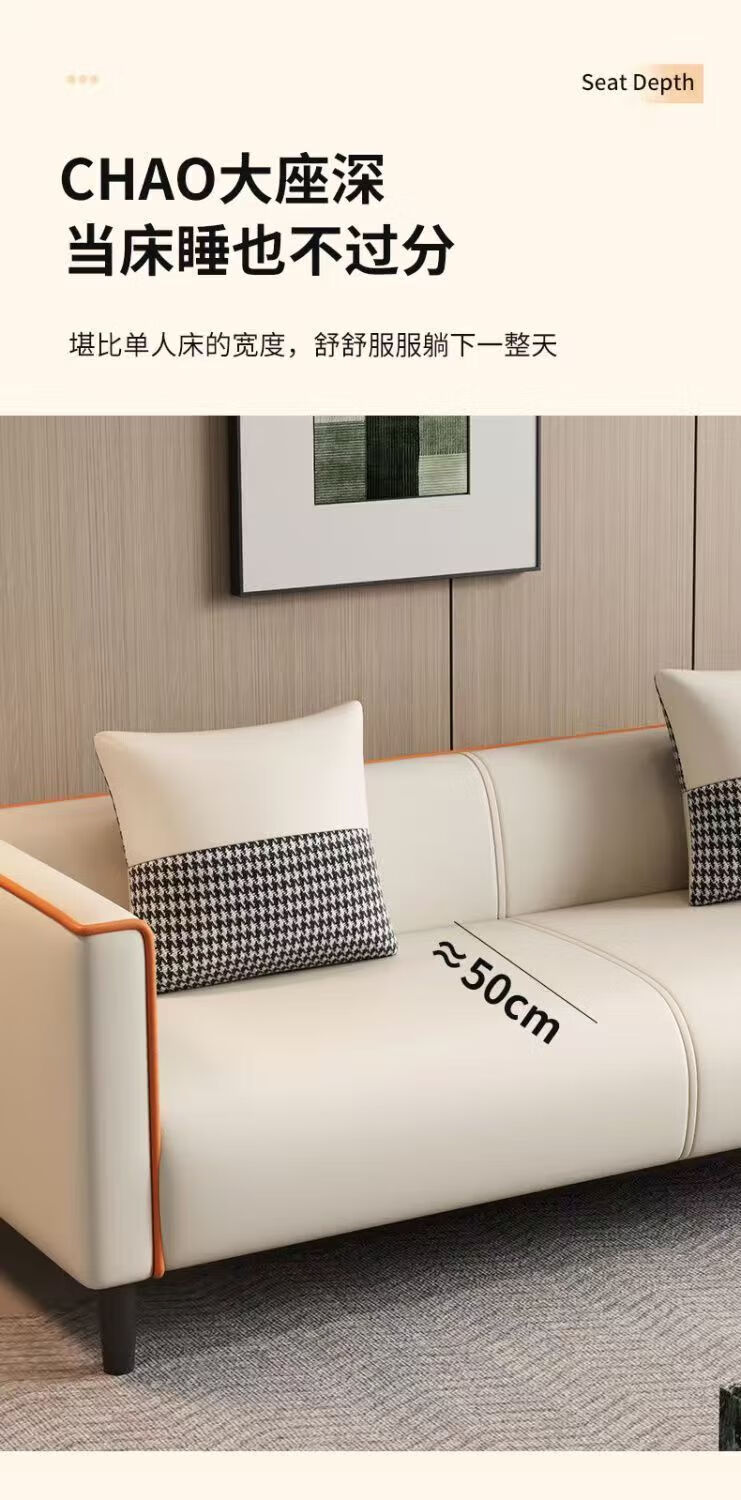 顾家家居(KUKA)沙发奶油风牛皮大象耳朵沙发大坐深羽毛填充客厅魅影黑四人位