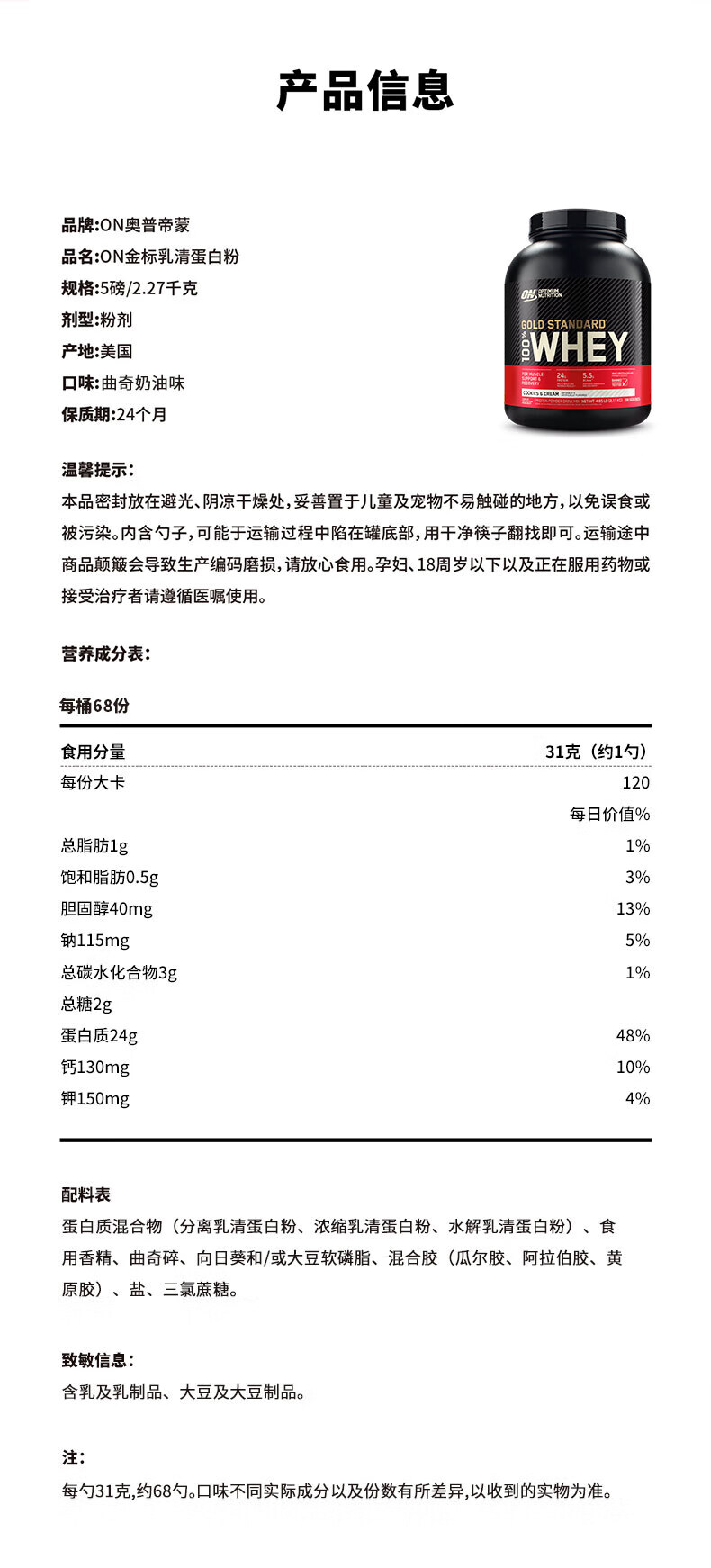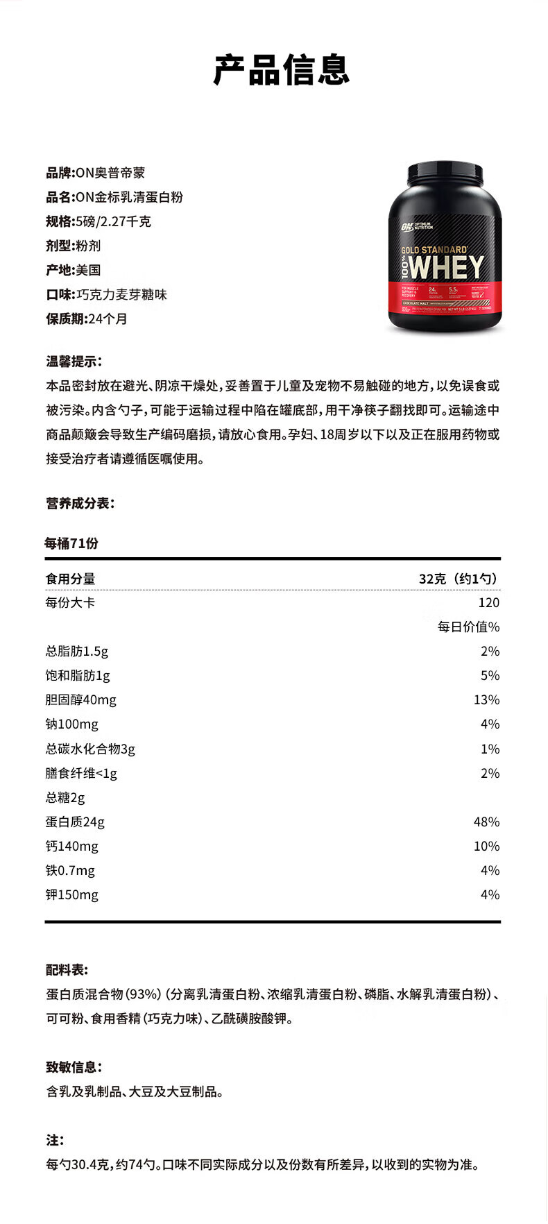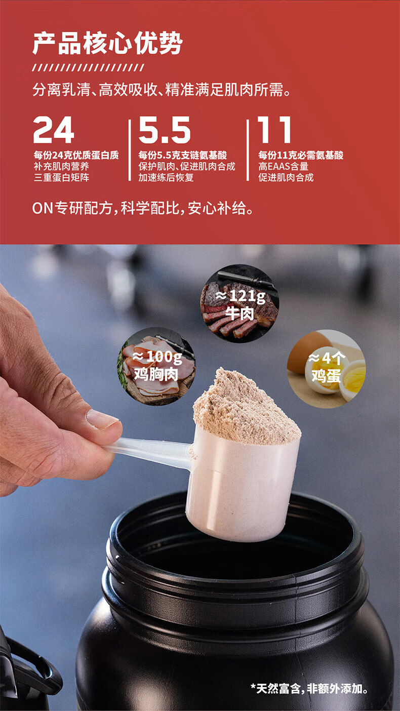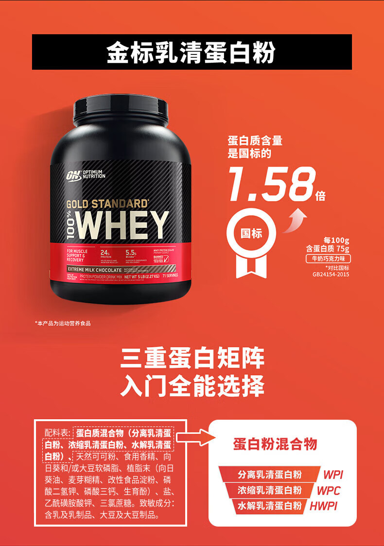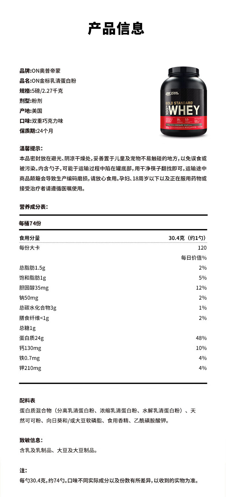 ON【何局同款】金标乳清蛋白粉 美国进口 分离乳清为主 辅助塑形 【79%高蛋白】5磅双重巧克力 5磅*1罐