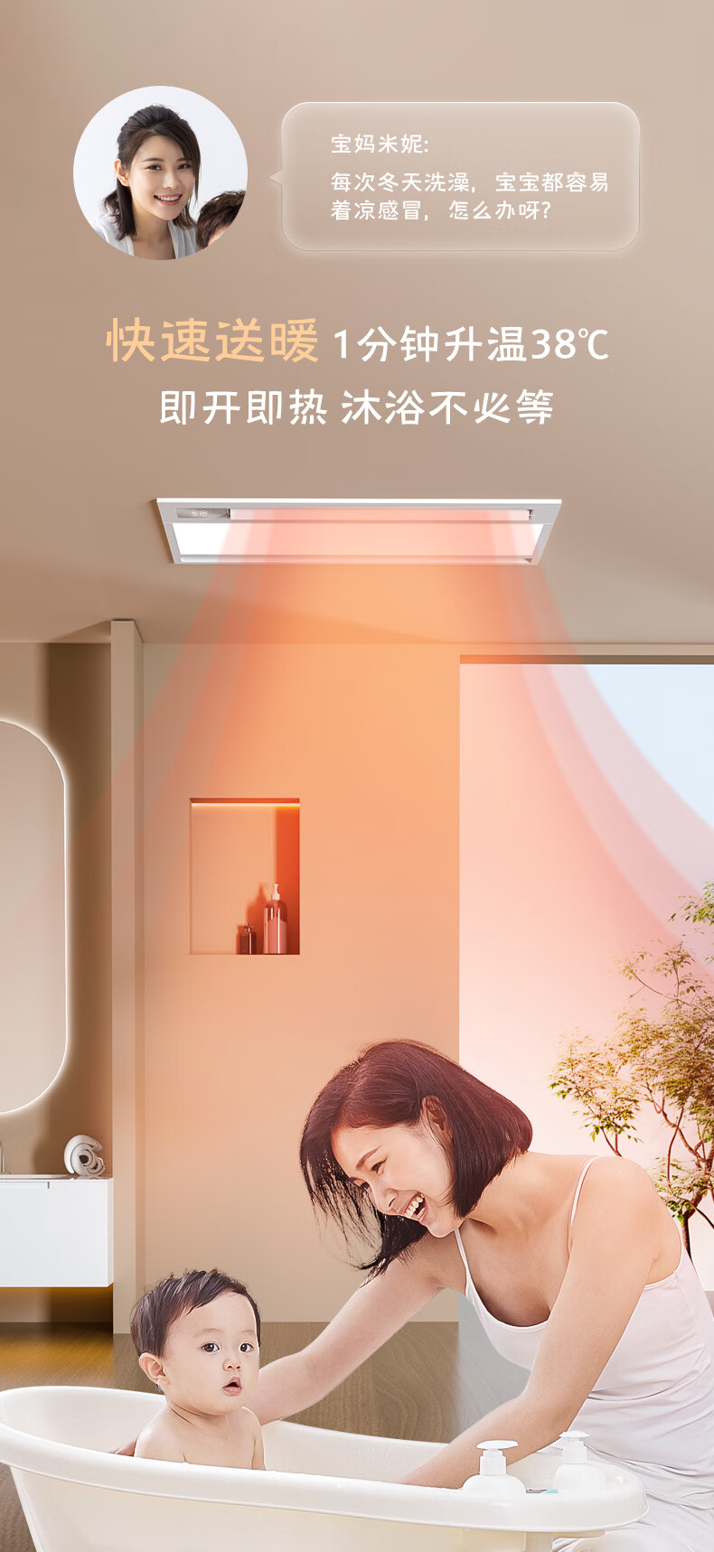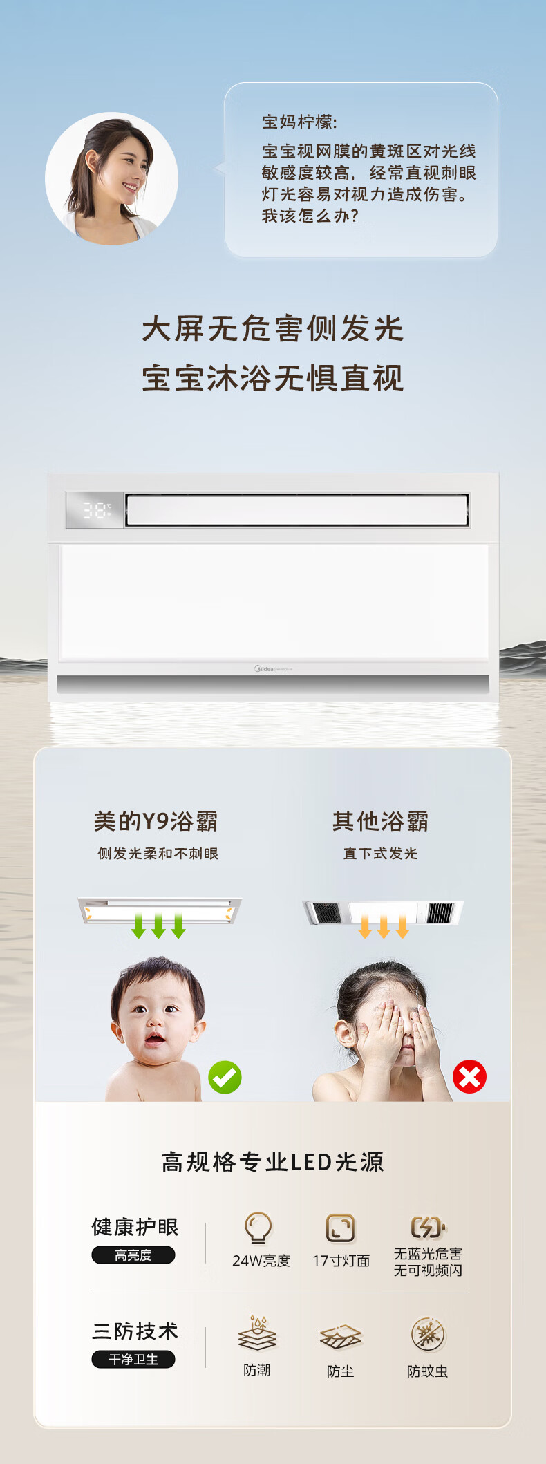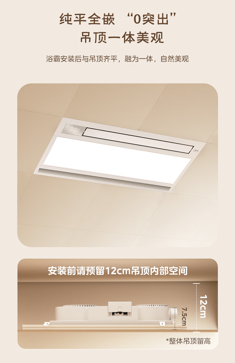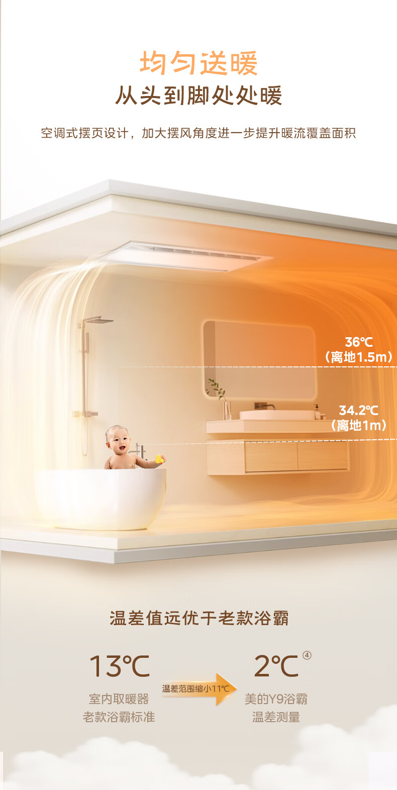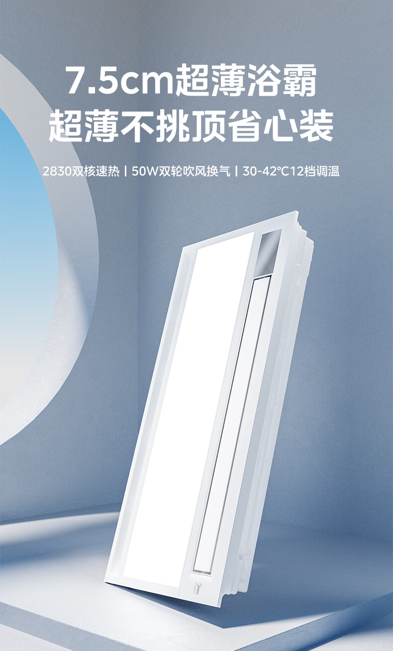 美的(Midea)风暖浴霸暖风照明排气一体双电机取暖器集成吊顶卫生间国家补贴Y9 Y9触控丨7.5CM超薄机身丨暖风可视化