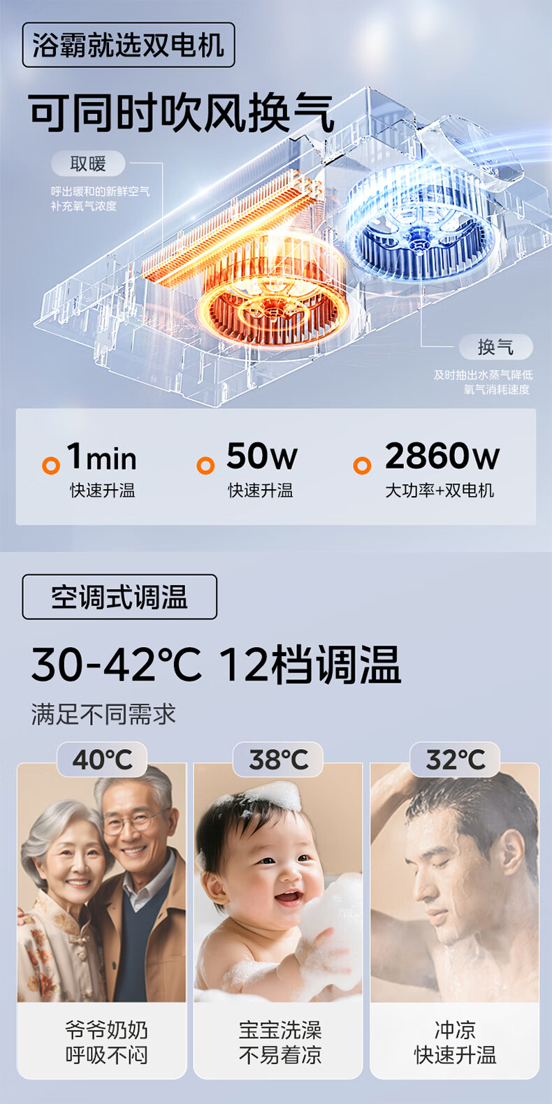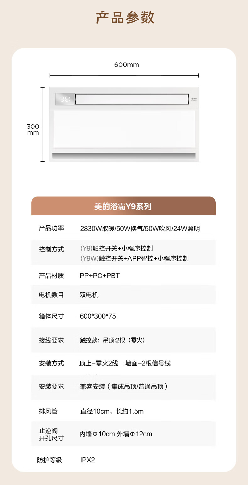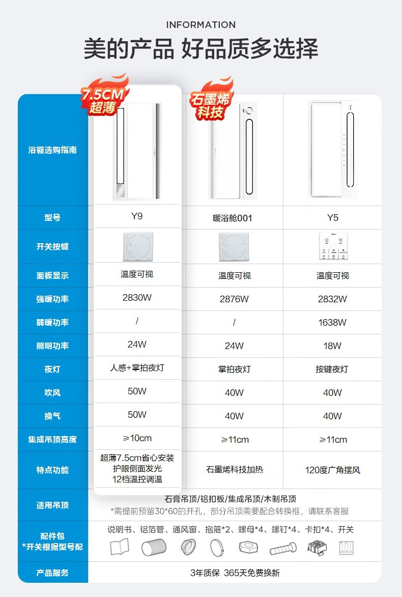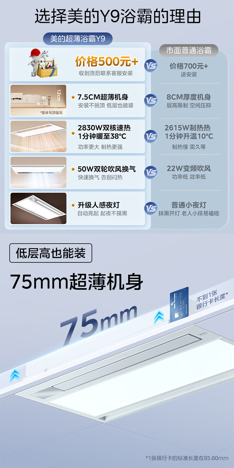 美的(Midea)风暖浴霸暖风照明排气一体双电机取暖器集成吊顶卫生间国家补贴Y9 Y9触控丨7.5CM超薄机身丨暖风可视化