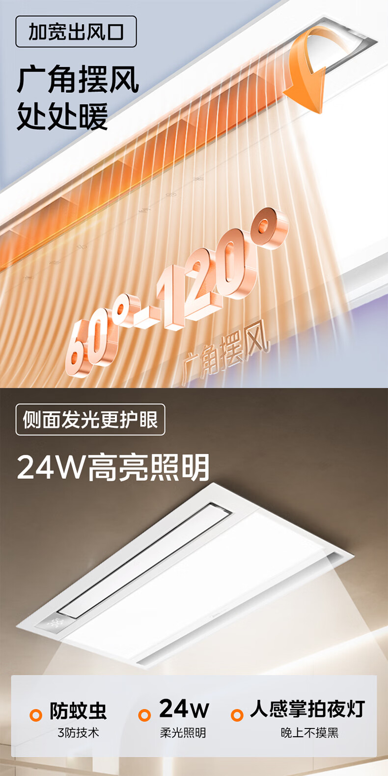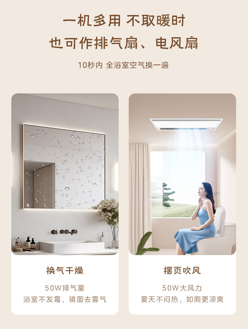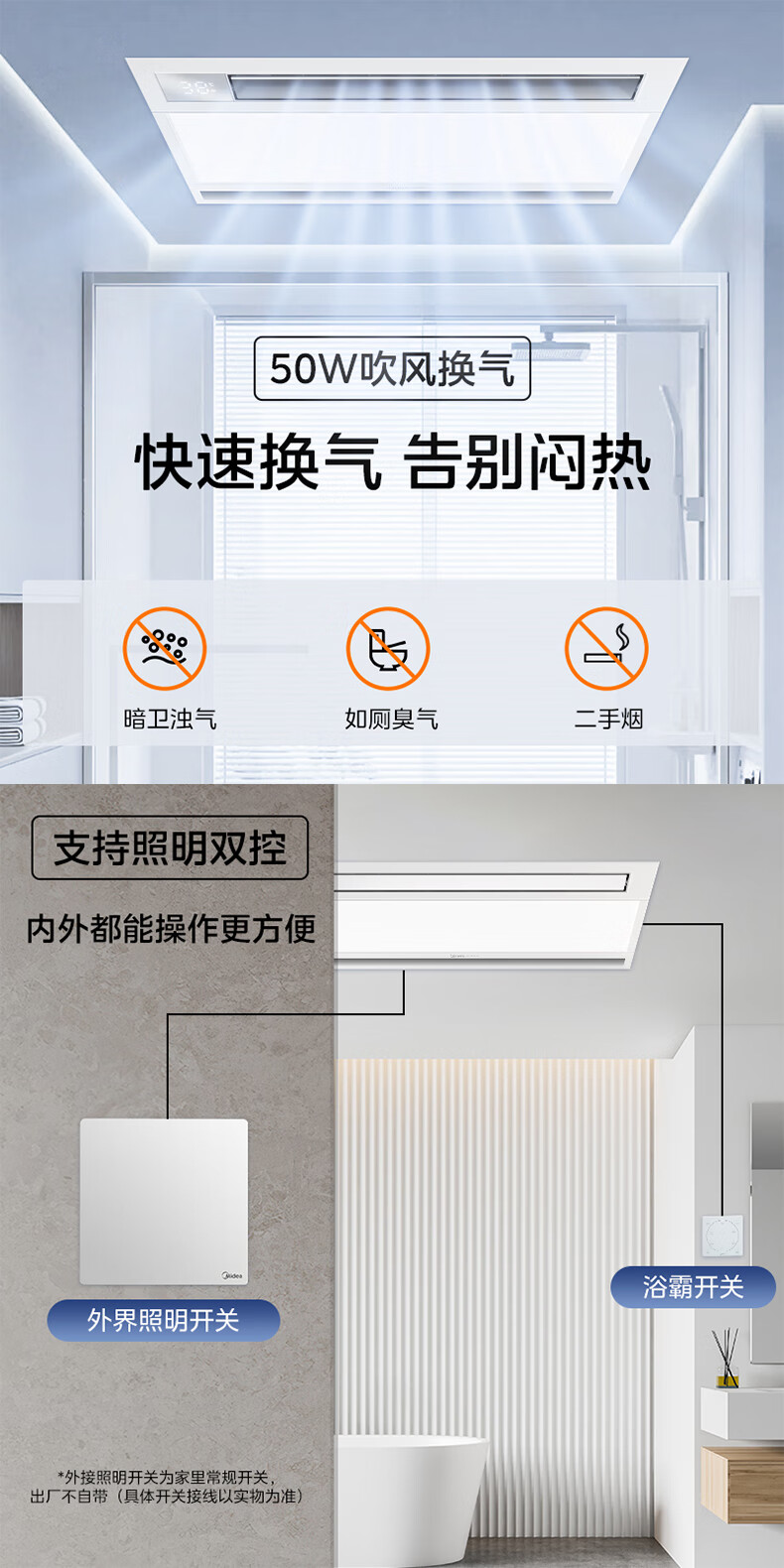 美的(Midea)浴霸暖风照明排气一体摆风速暖浴室取暖器卫生间灯集成吊顶Y5触摸
