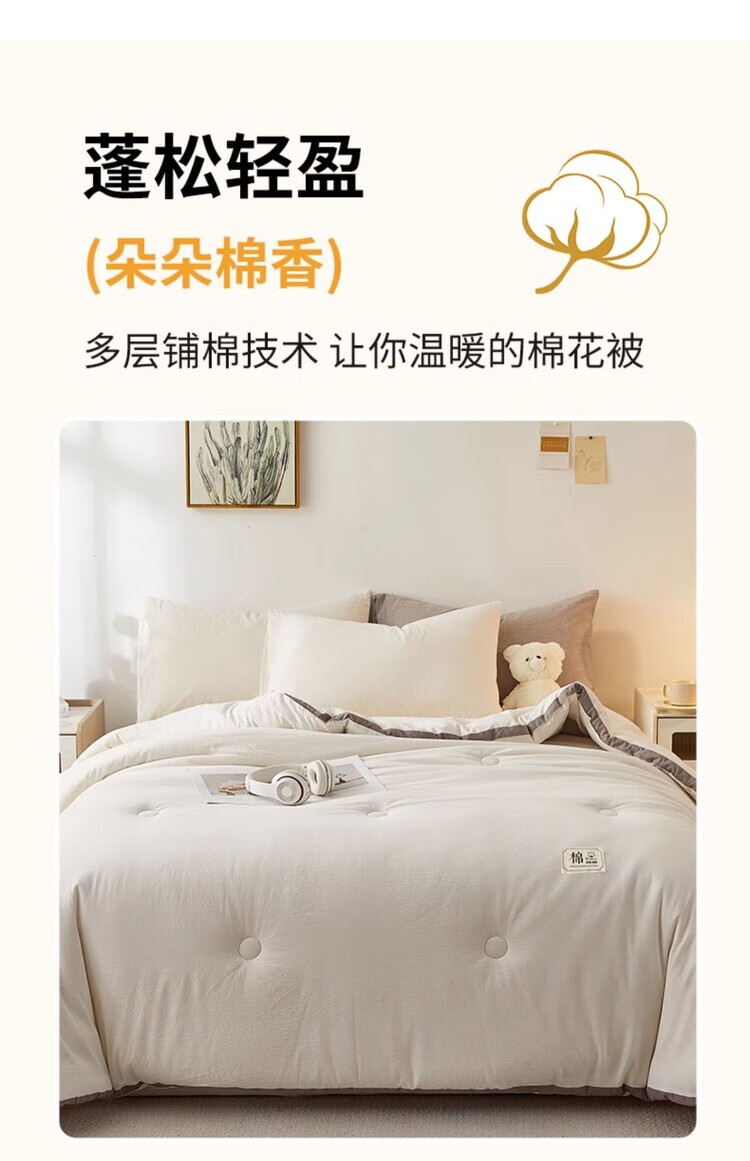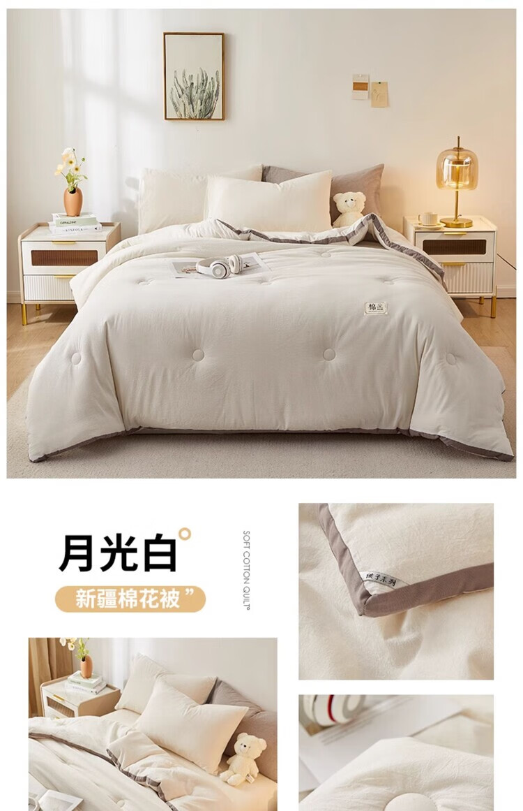 无印良品100%新疆棉花被冬被A类纯棉被子春秋被学生宿舍棉被被芯四季通用 月光白(蓬松保暖) 【春秋被】150*200cm约5斤