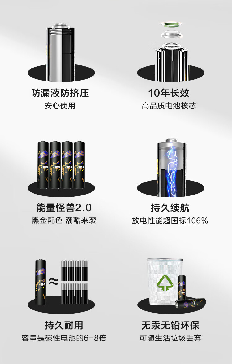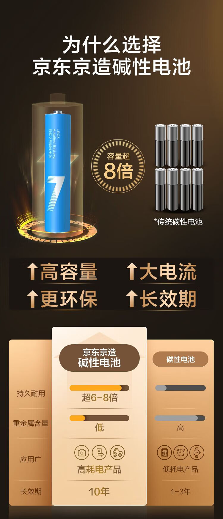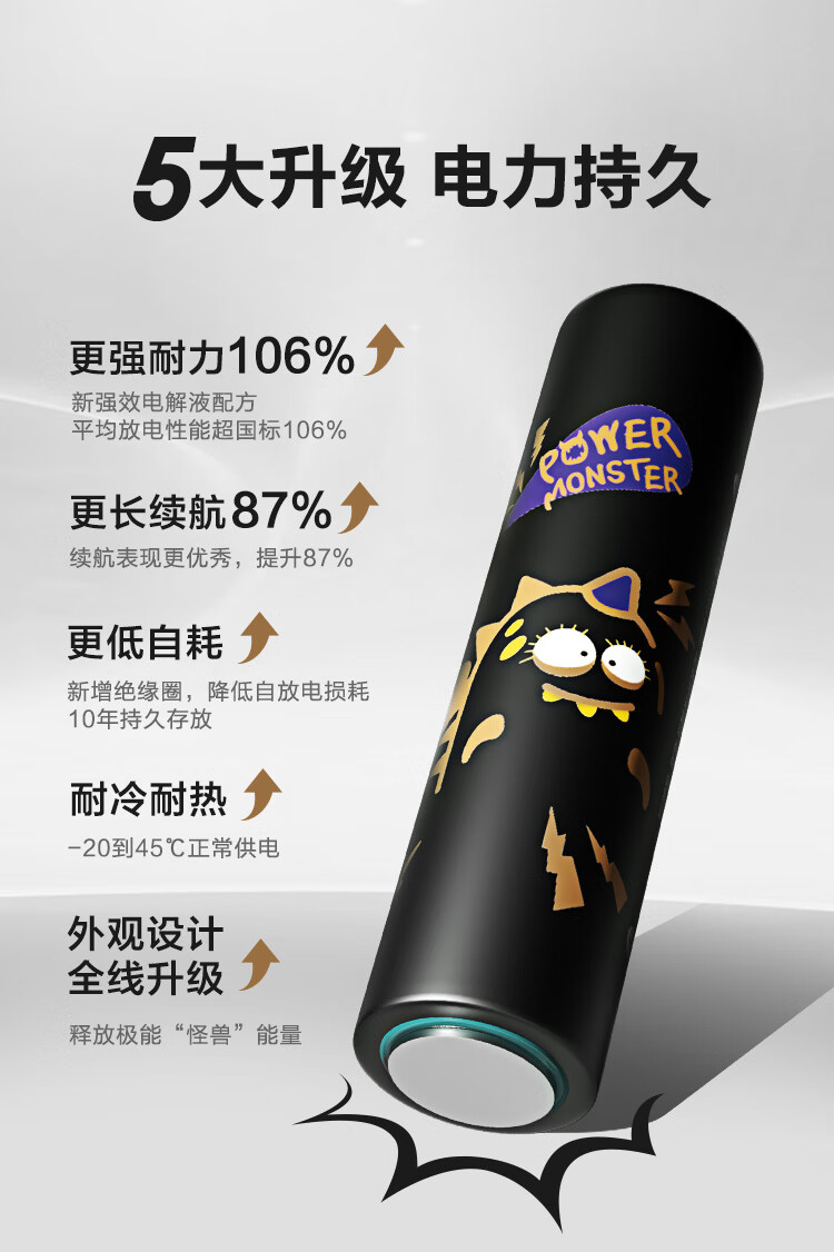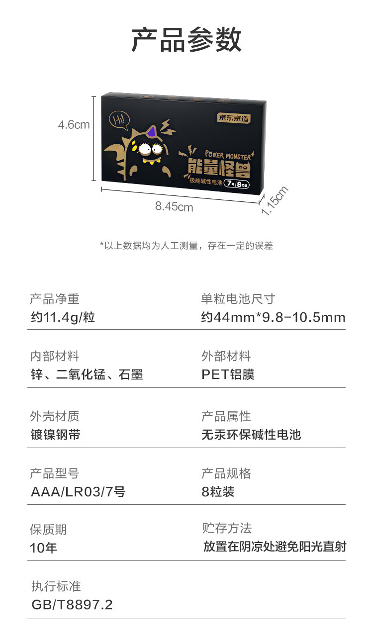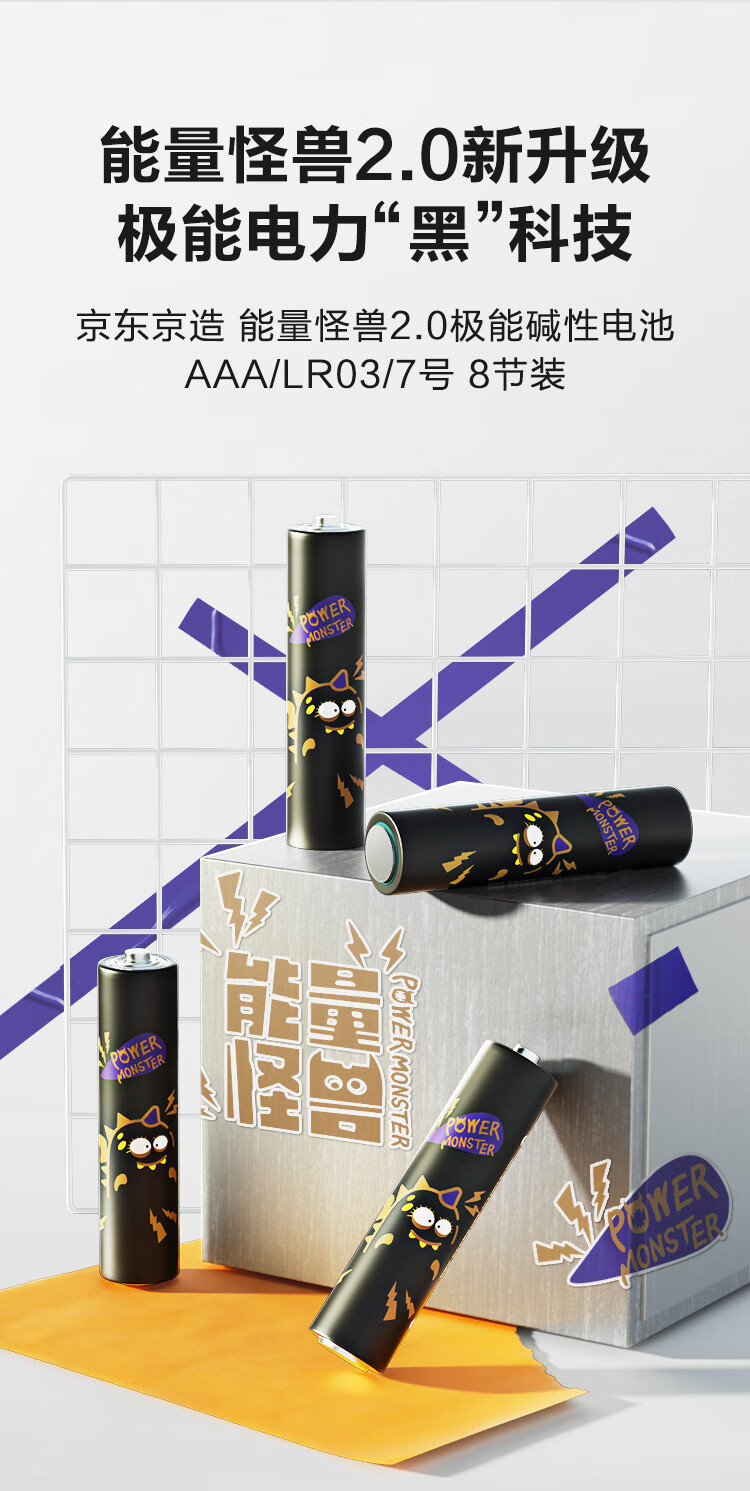 京东京造能量怪兽 极能碱性电池7号 无汞环保 玩具/血压仪/血糖仪/智能门锁/电子秤/鼠标【7号8节】