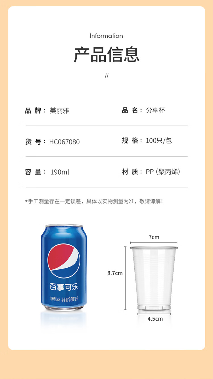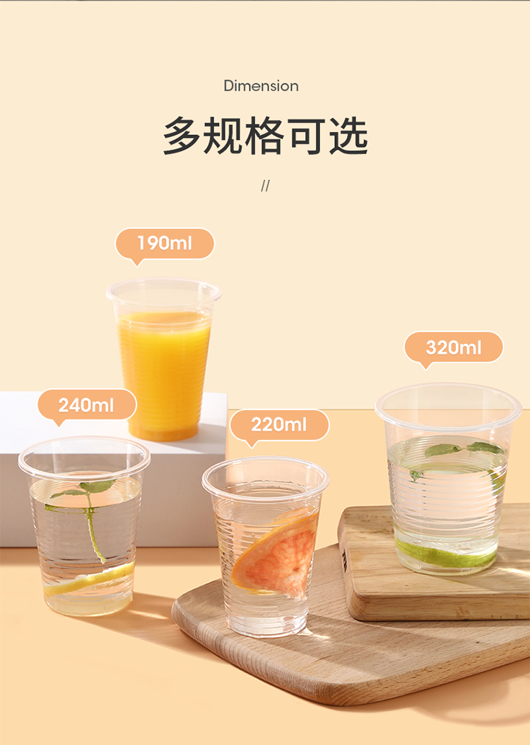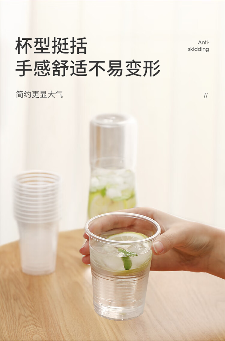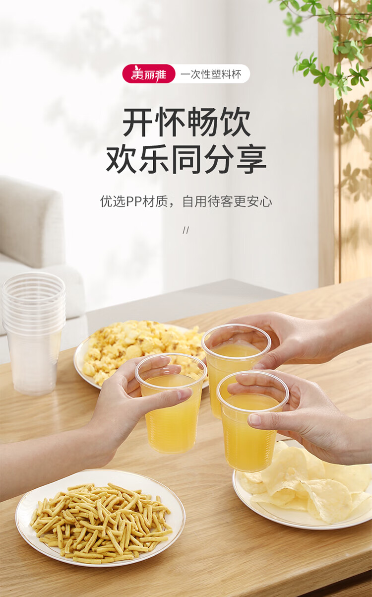 美丽雅 一次性杯子塑料杯190ml*100只加厚透明果汁饮料水杯小号家用