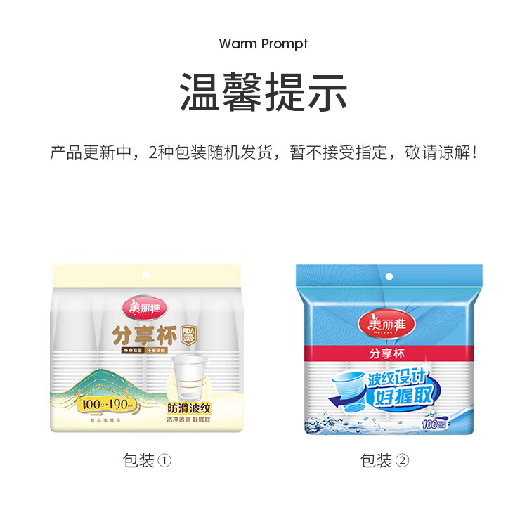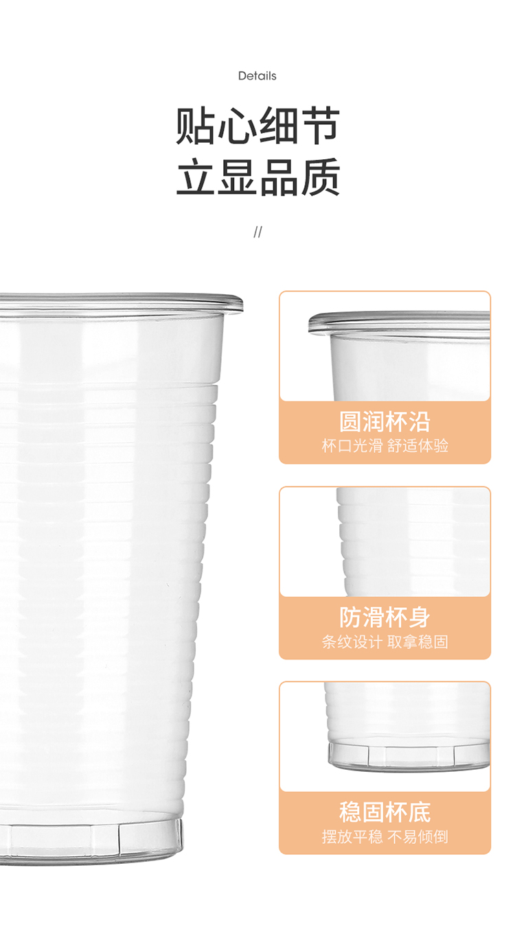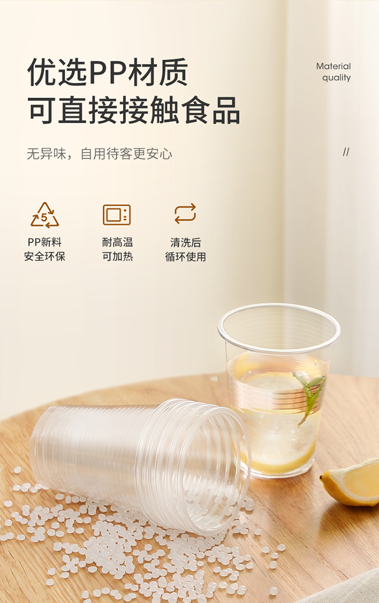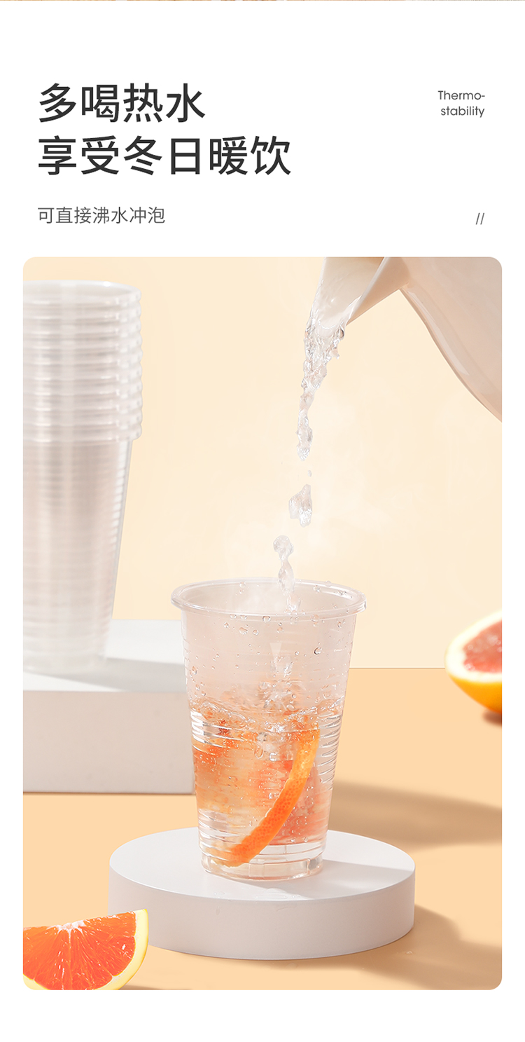 美丽雅 一次性杯子塑料杯190ml*100只加厚透明果汁饮料水杯小号家用