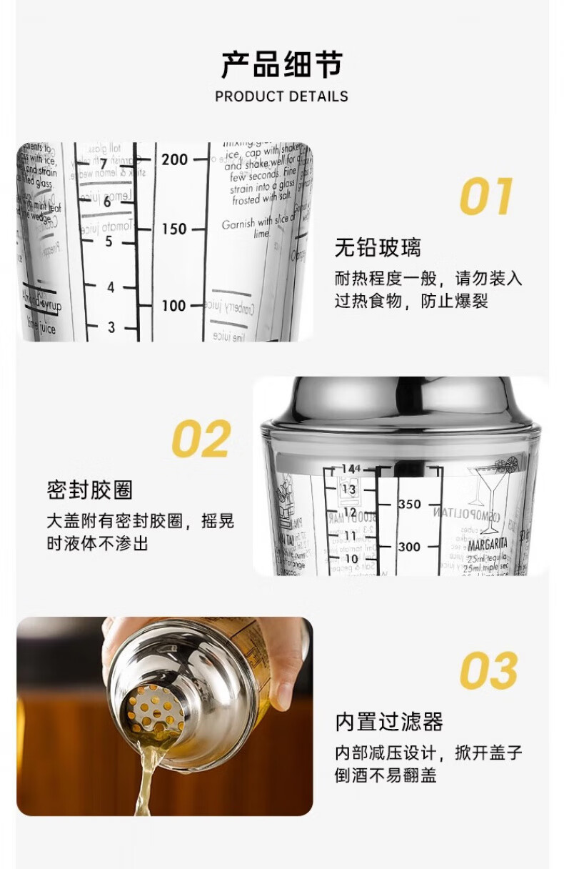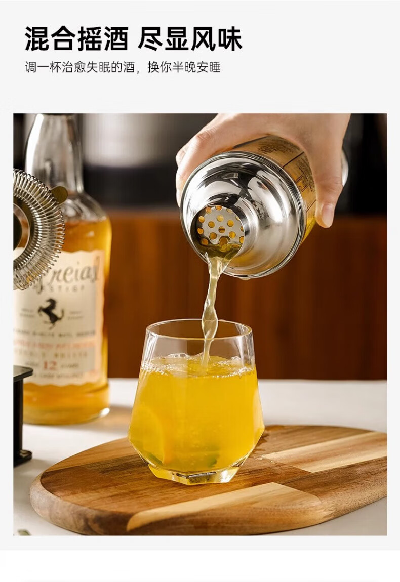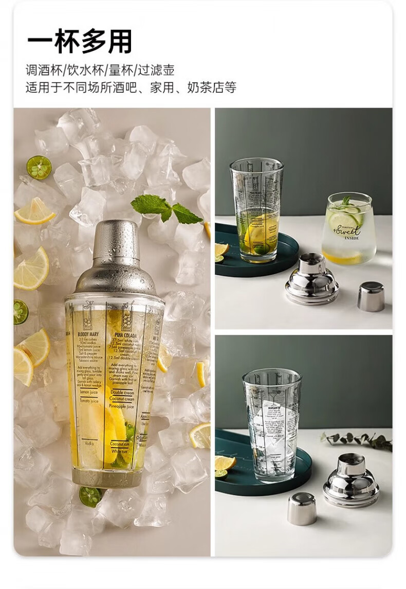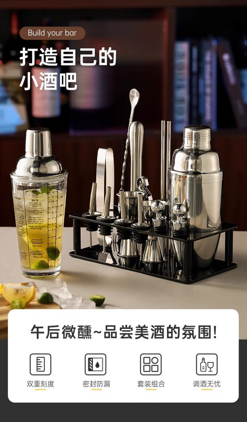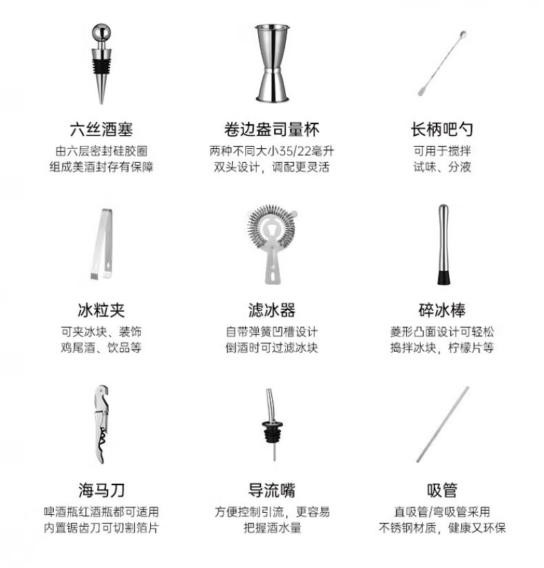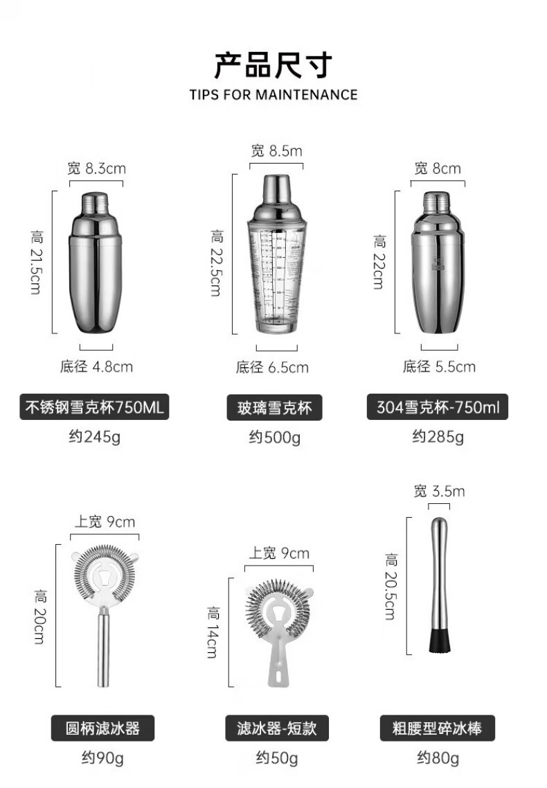 AILUKI日本不锈钢调酒器套装手打柠檬茶雪克杯一套酒具鸡尾酒壶调酒 团购 套装