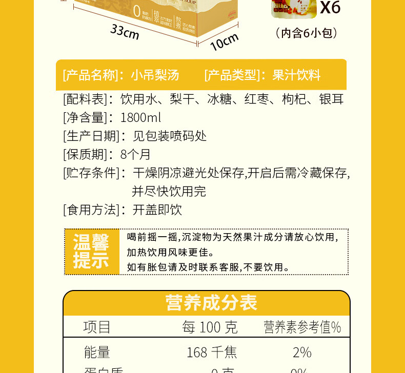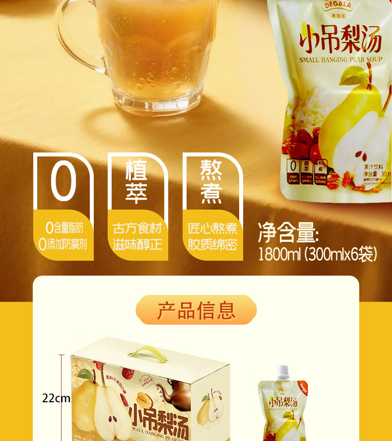 德加乐熬煮小吊梨汤冰糖雪梨300ml*6袋果汁饮料北京礼物秋季降火润燥