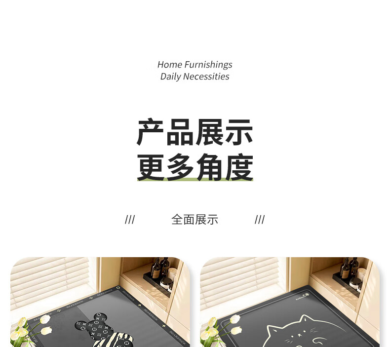 KAYE浴室地垫免洗卫浴吸水垫卫生间厕所门口防滑垫家用厨房入户门脚垫 GZN-3D幻境-黑色雏菊 40X60cm