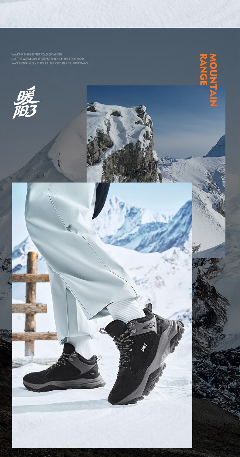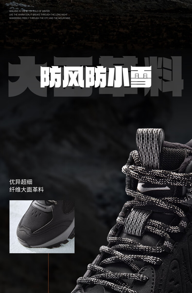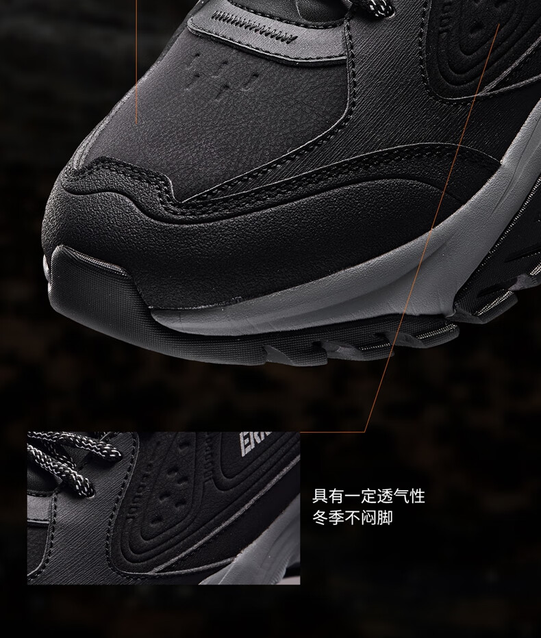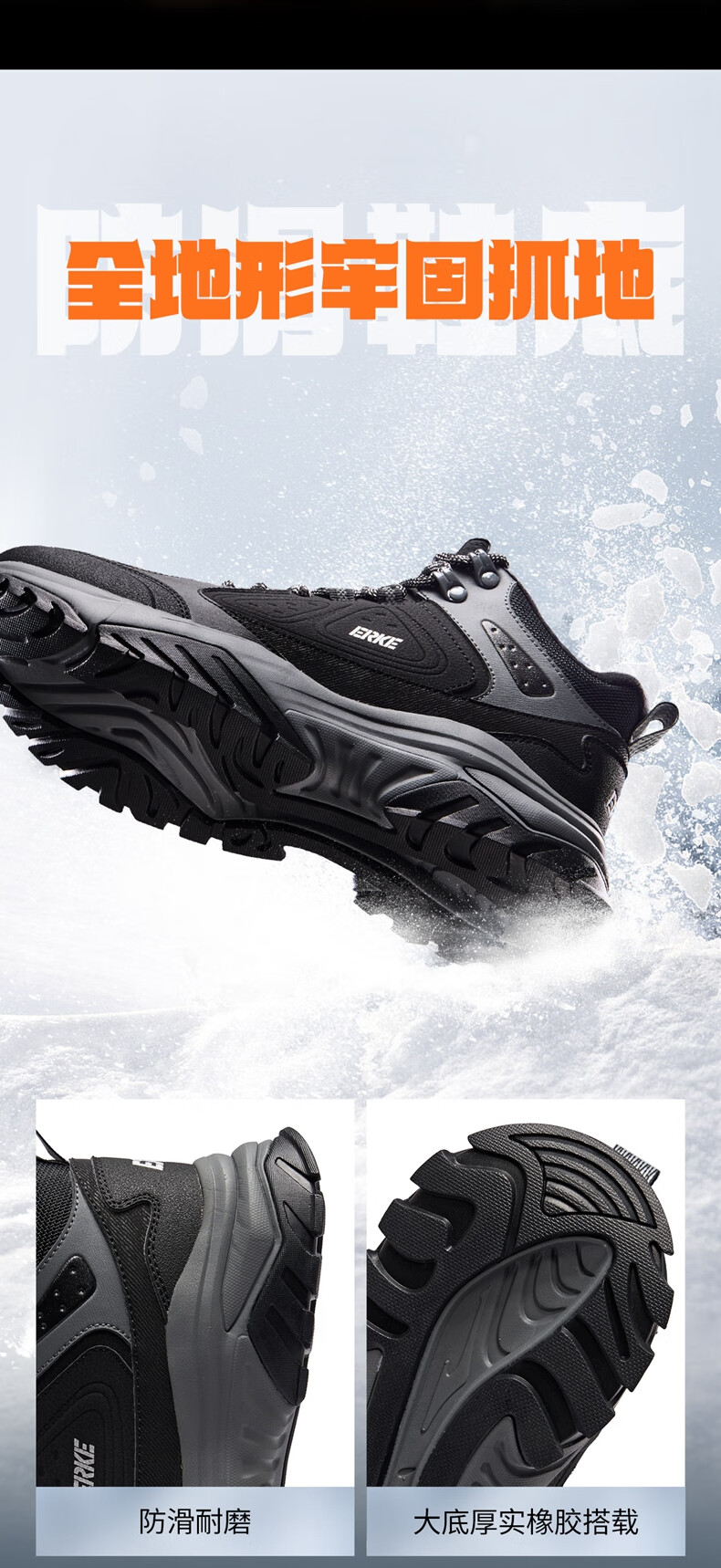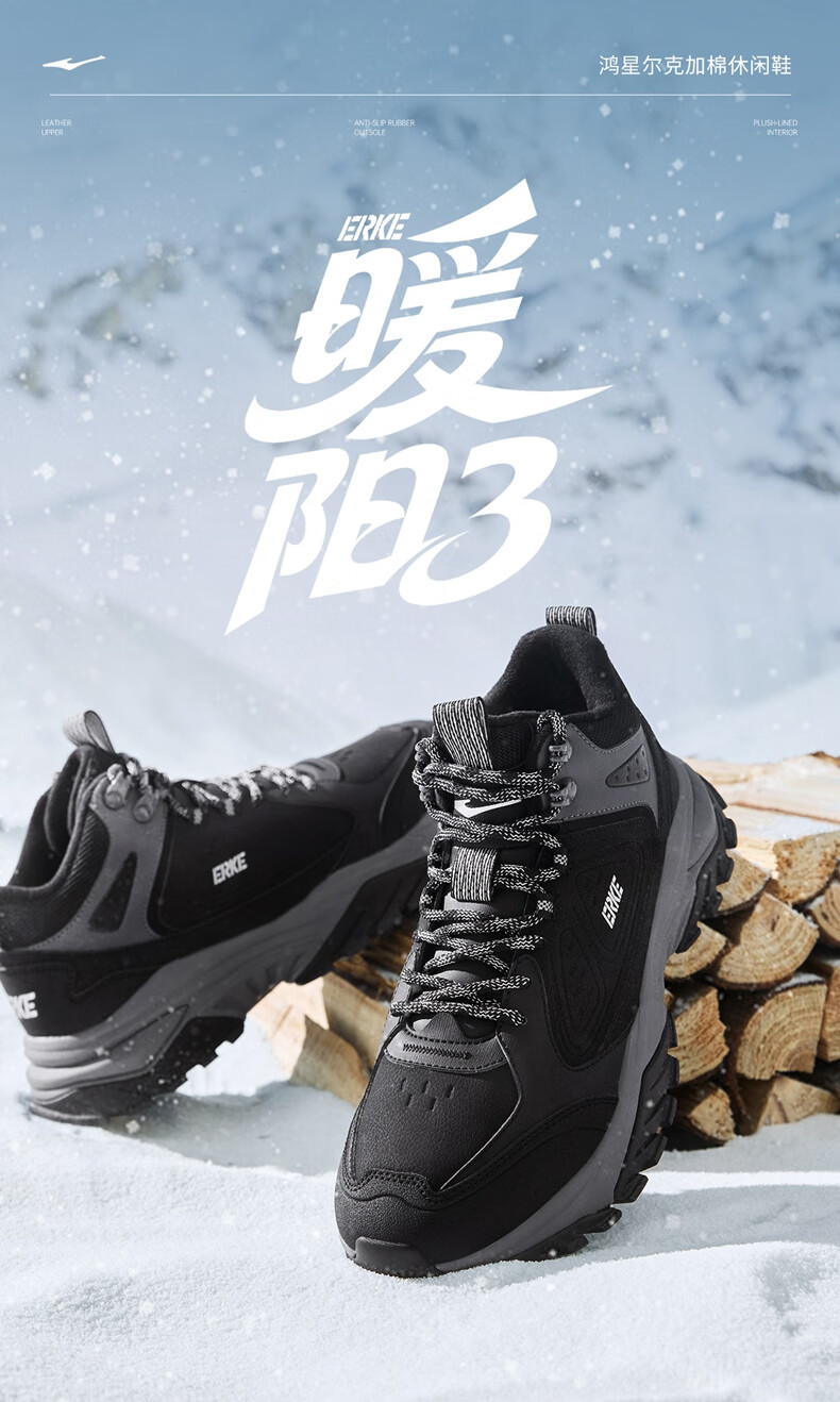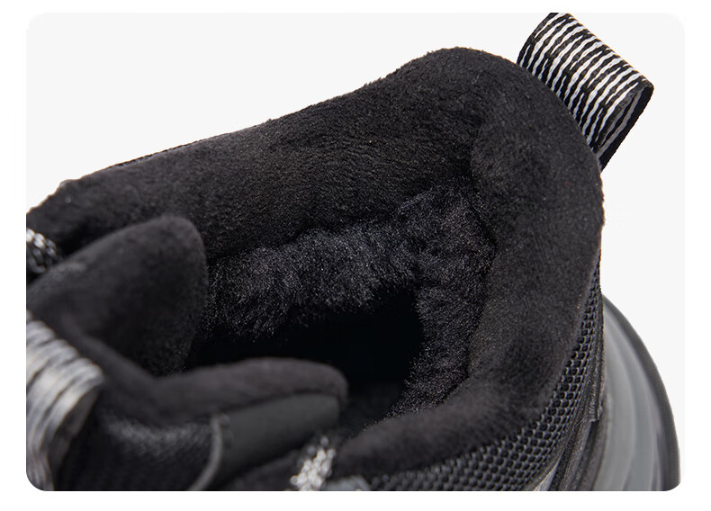 鸿星尔克暖阳3加绒休闲鞋男鞋冬季新款棉鞋户外防滑保暖加厚雪地靴运动鞋 正黑/碳灰 40