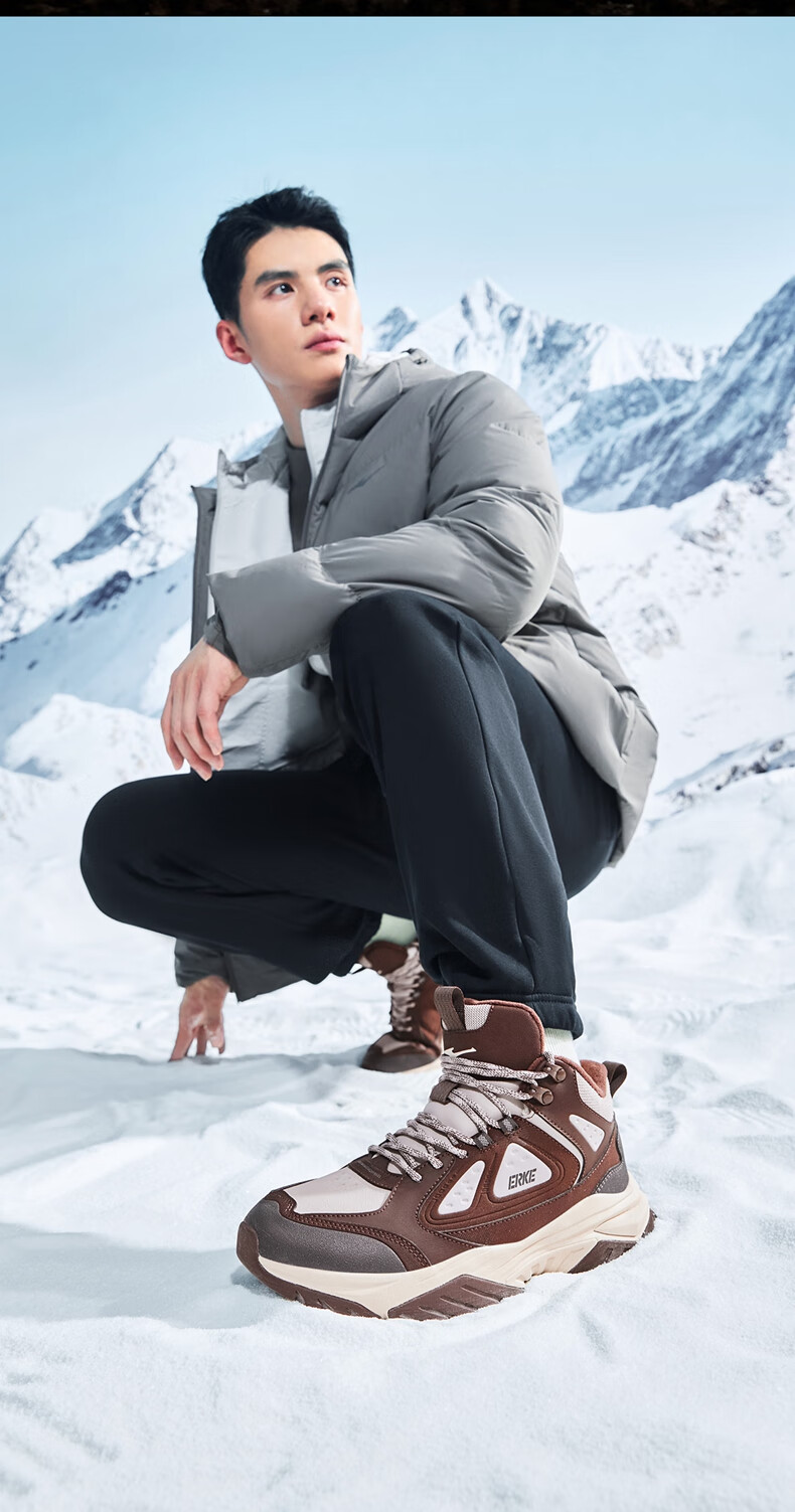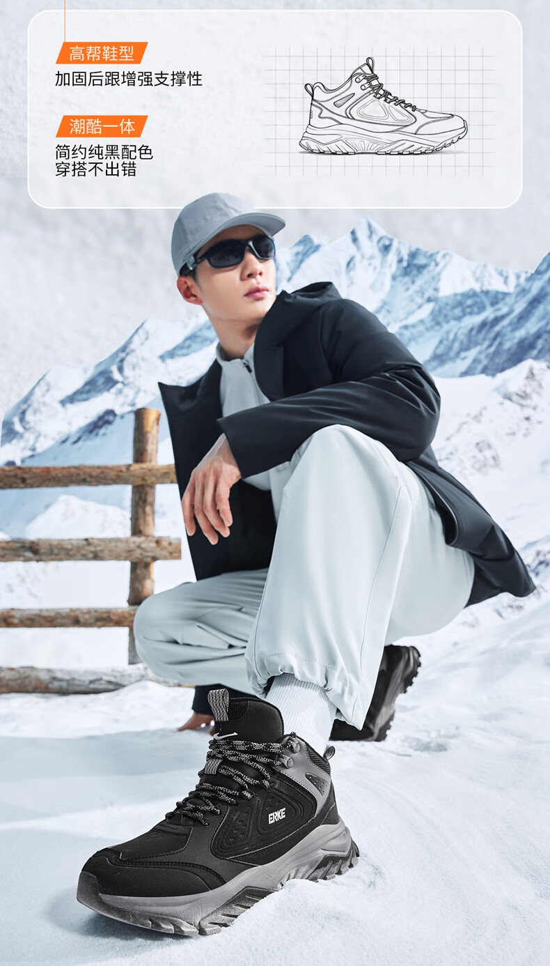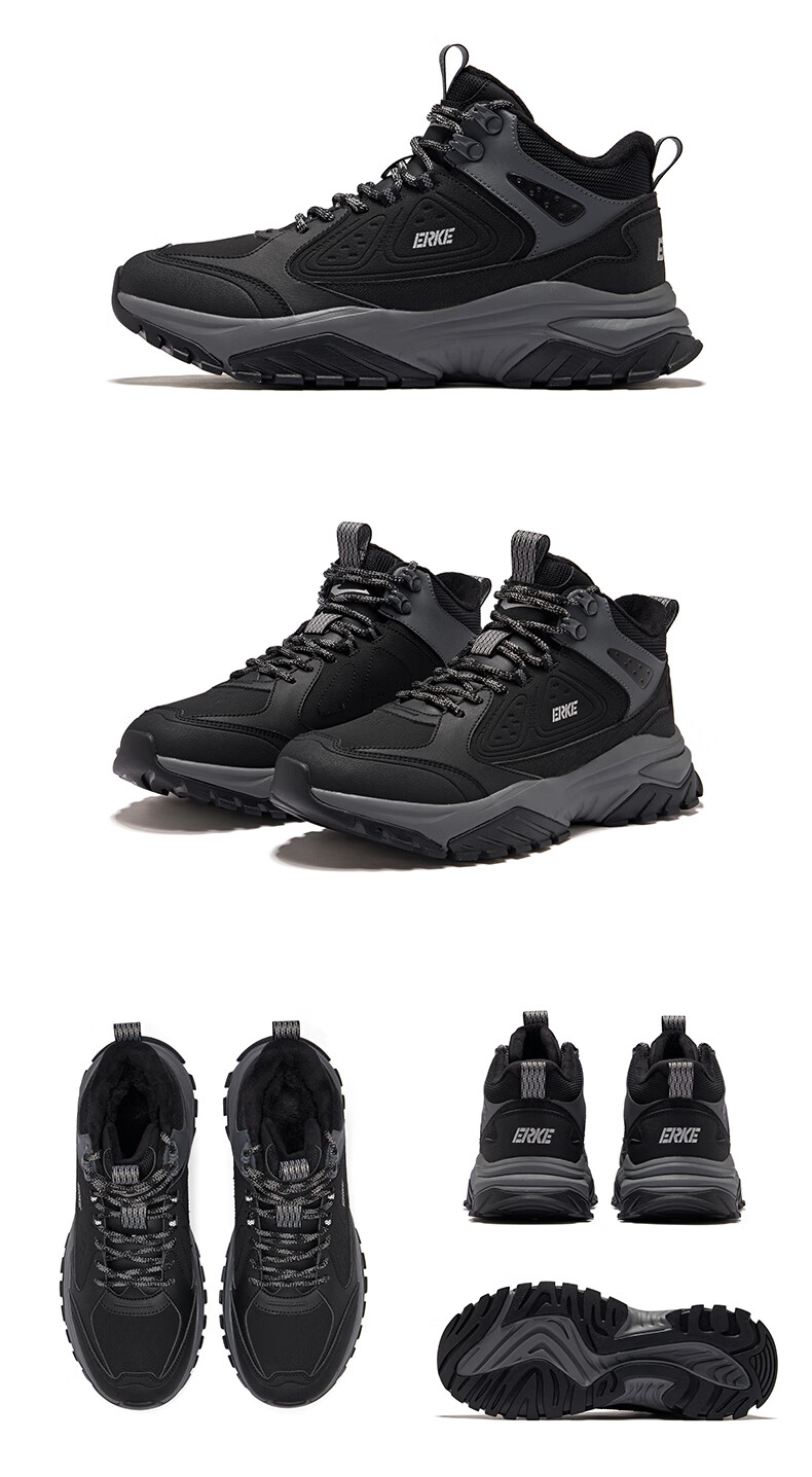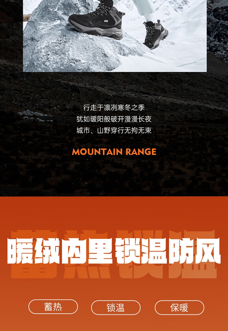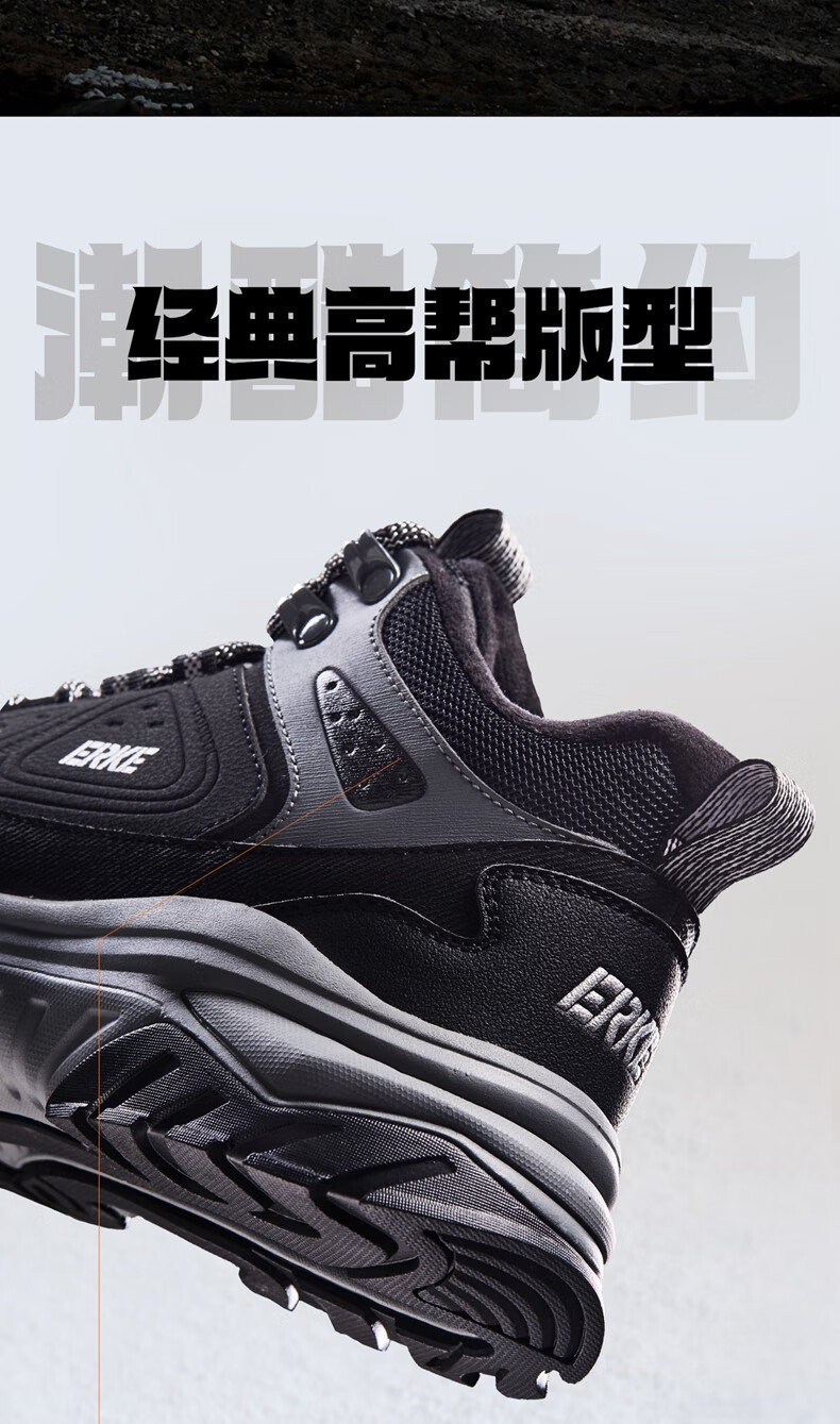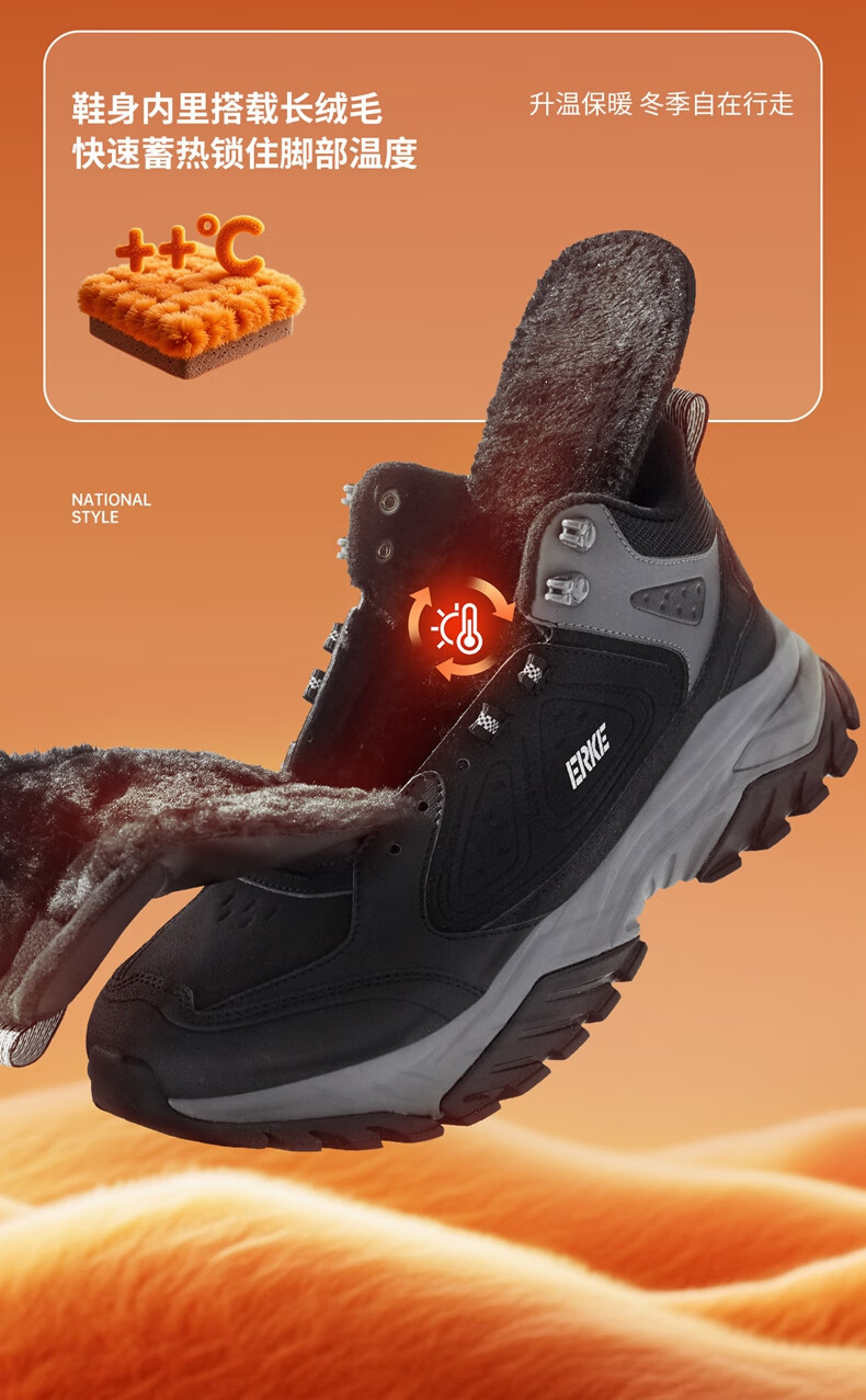鸿星尔克暖阳3加绒休闲鞋男鞋冬季新款棉鞋户外防滑保暖加厚雪地靴运动鞋 正黑/碳灰 40
