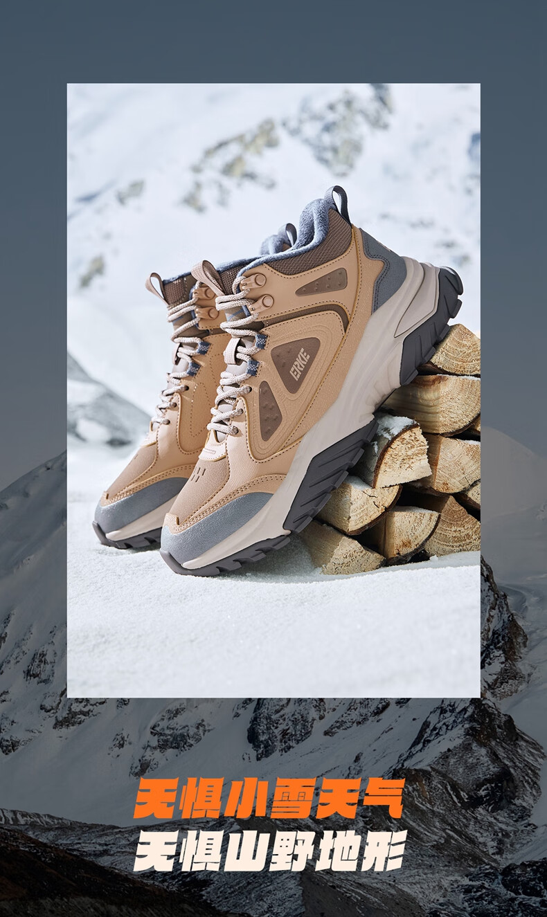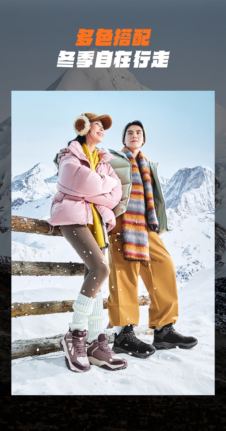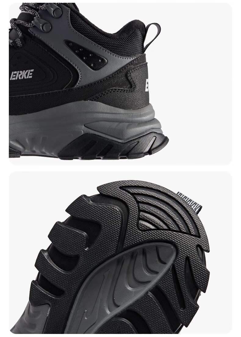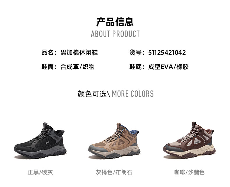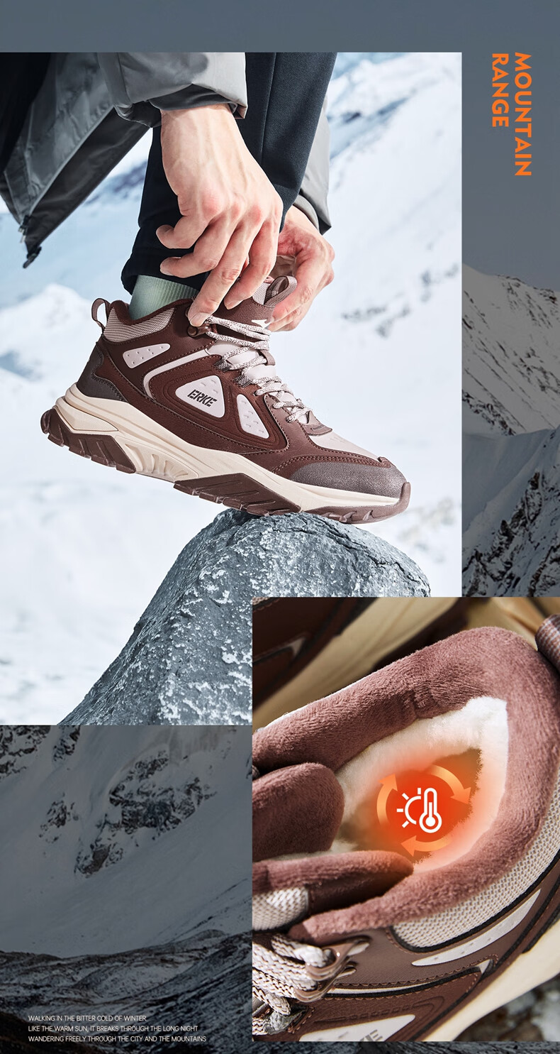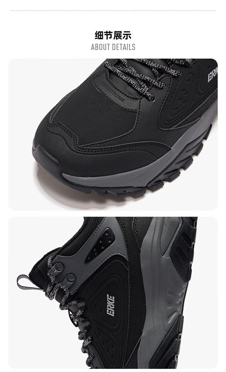 鸿星尔克暖阳3加绒休闲鞋男鞋冬季新款棉鞋户外防滑保暖加厚雪地靴运动鞋 正黑/碳灰 40