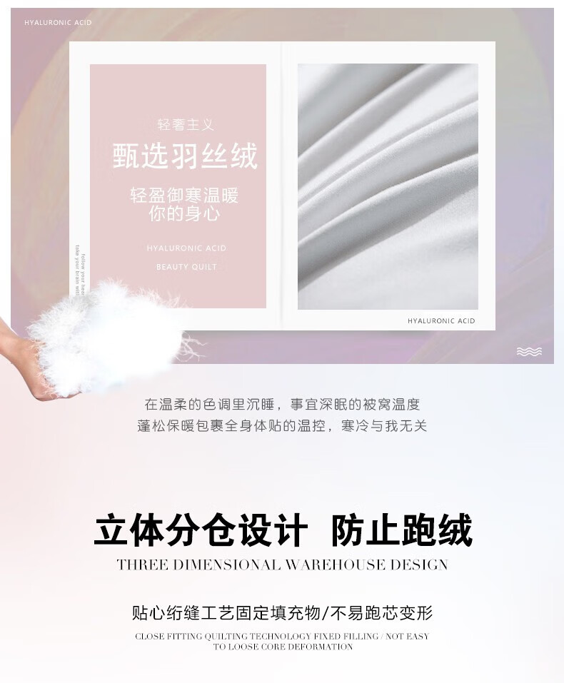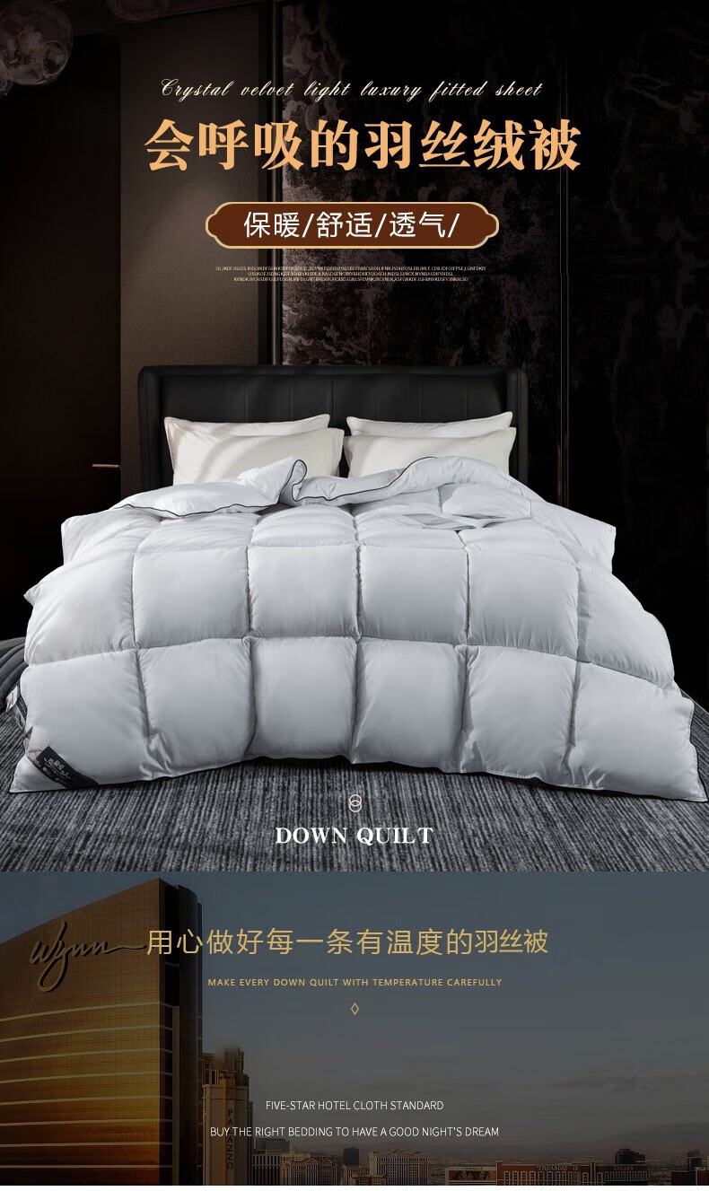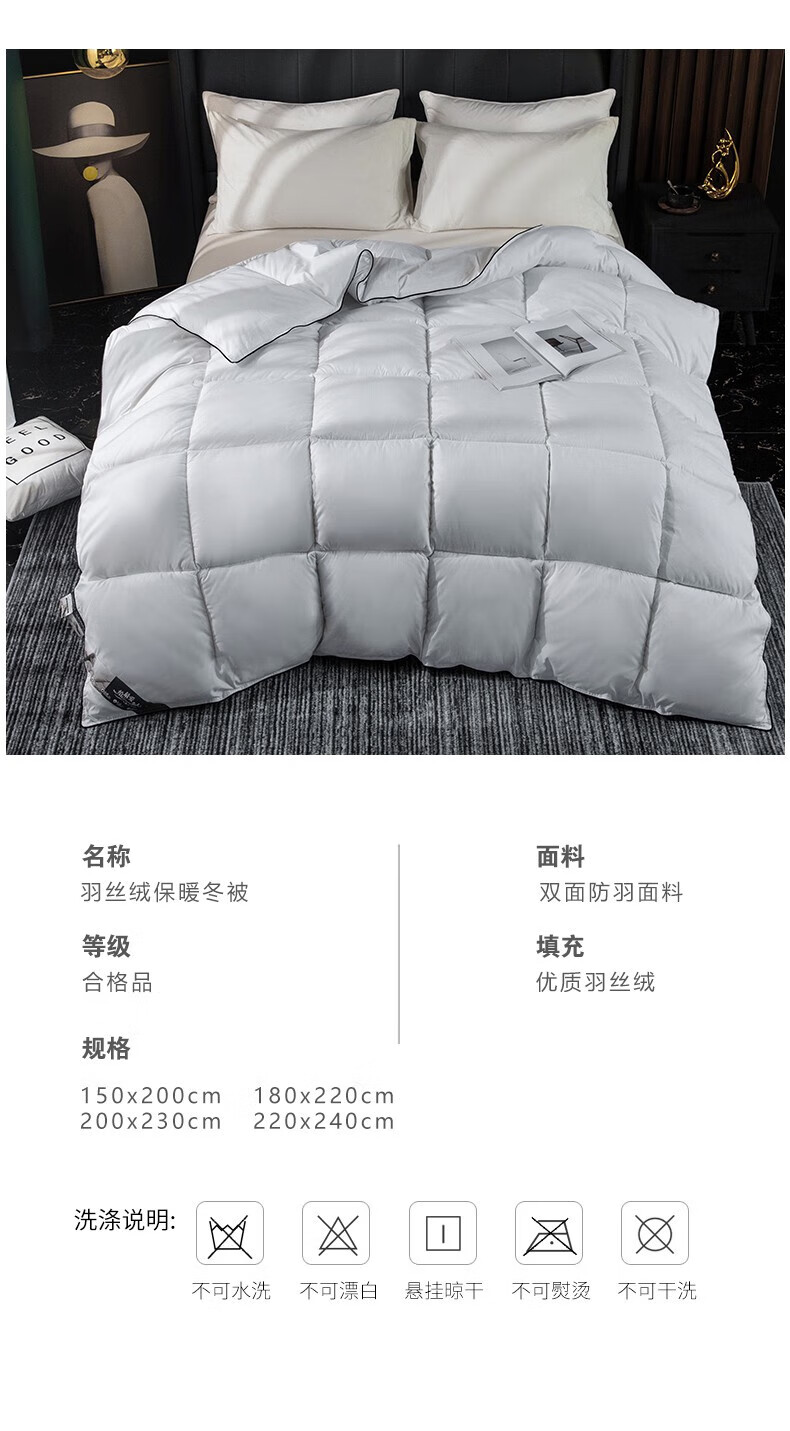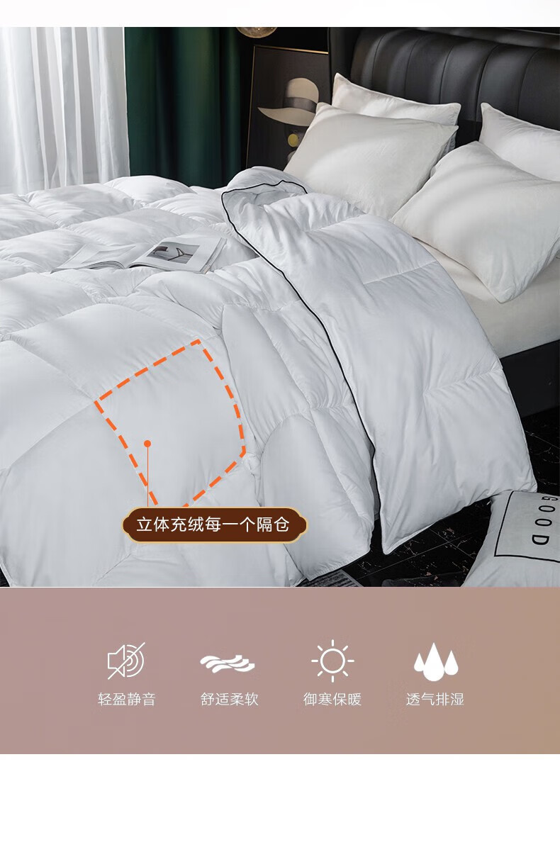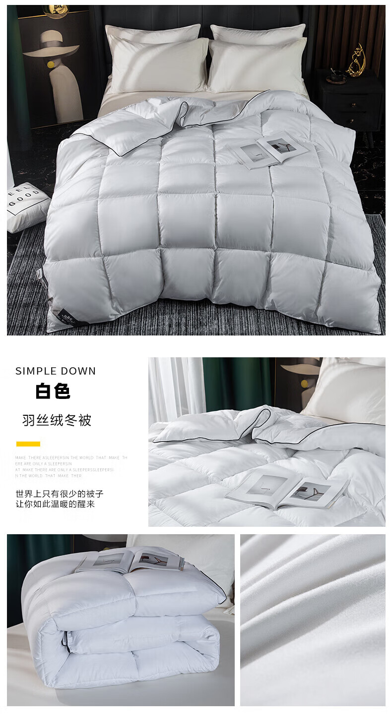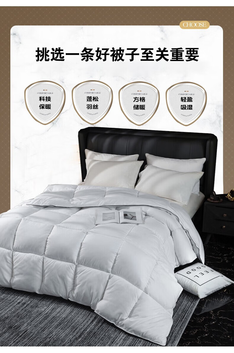 恒源祥羽丝绒被白鹅丝绒冬被鹅绒被6斤春秋被冬天加厚被子空调被8斤被芯 白色 150*200cm【4斤夏被】