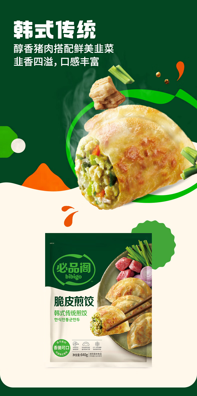 必品阁(bibigo)脆皮煎饺 韩式传统640g 约25只 锅贴 空气炸锅食材 特色生鲜早餐