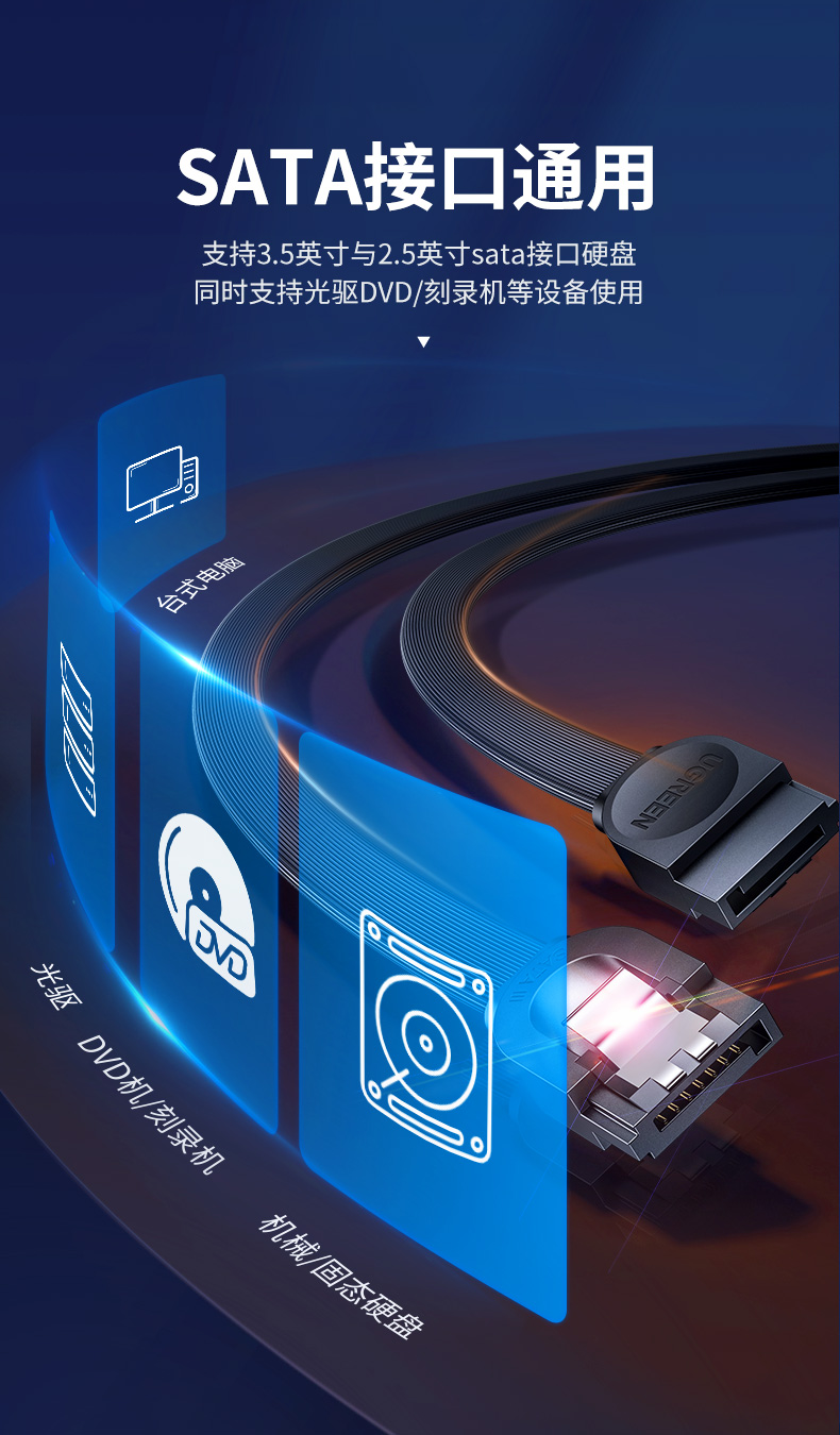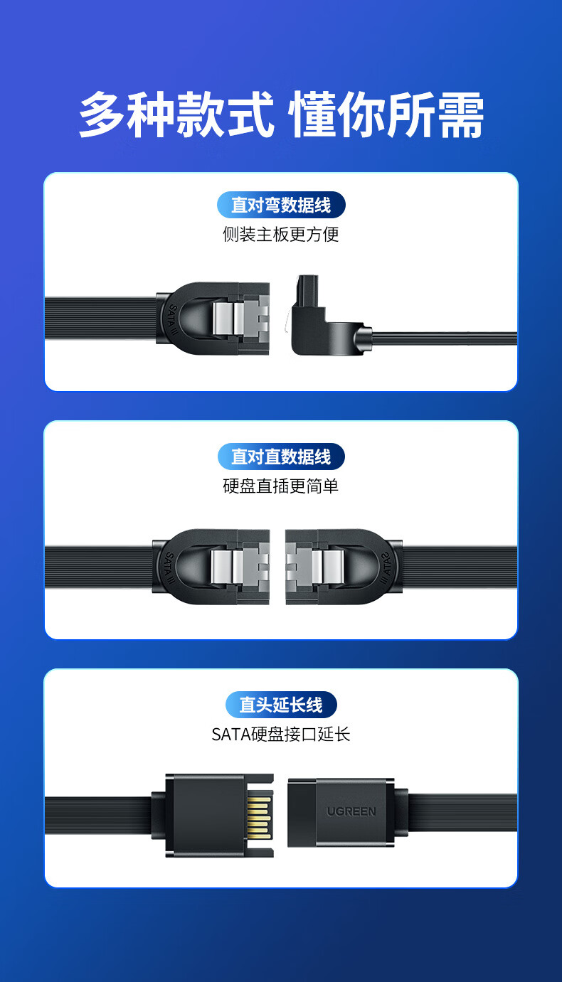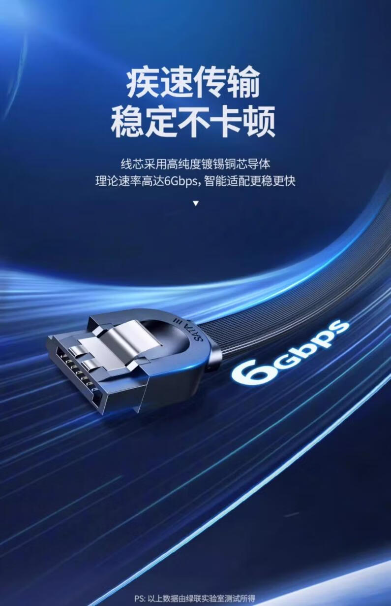 绿联 高速SATA3.0硬盘数据连接线 外接固态机械硬盘数据连接线 光驱串口线电源双通道转换线 弯头0.5米