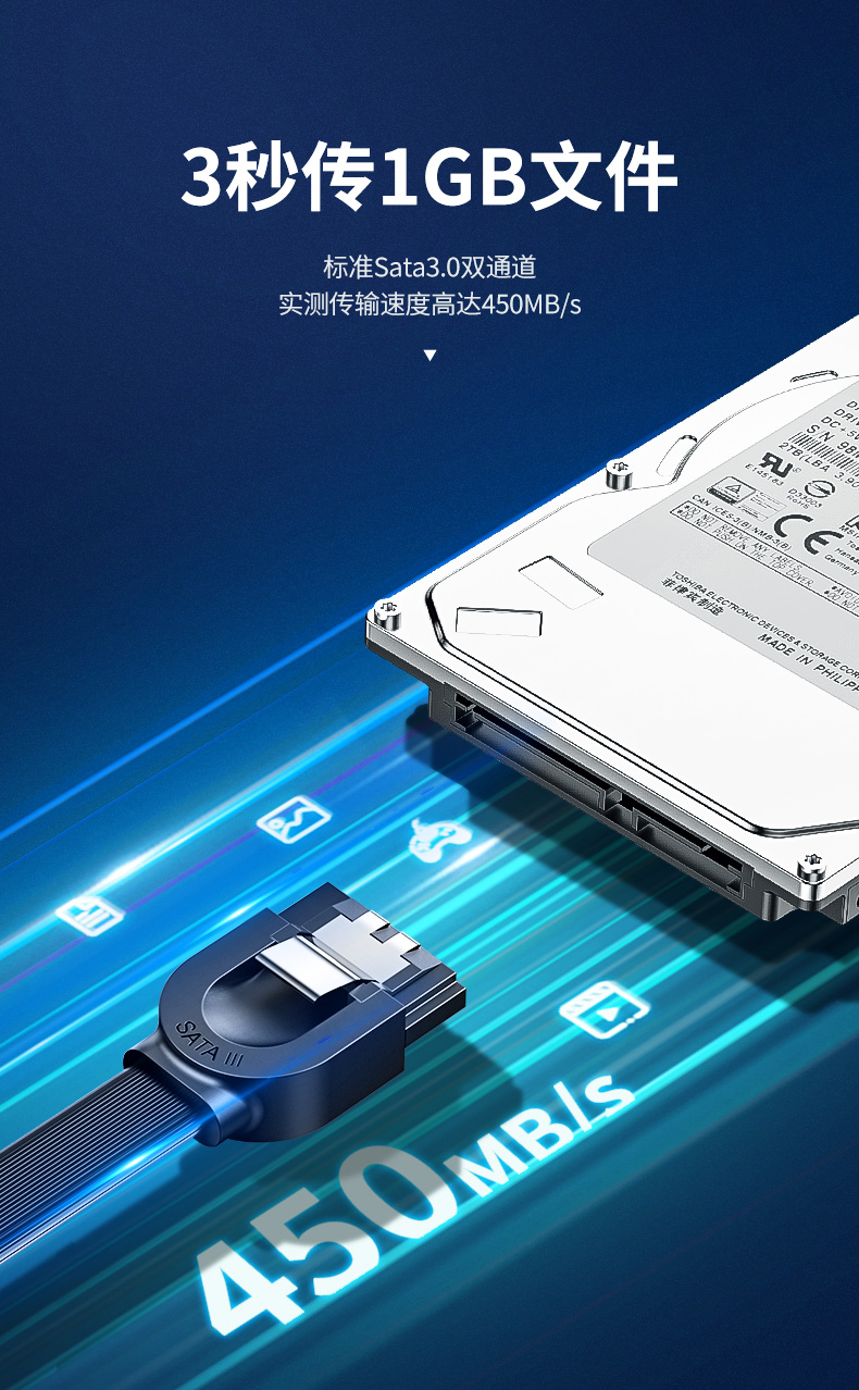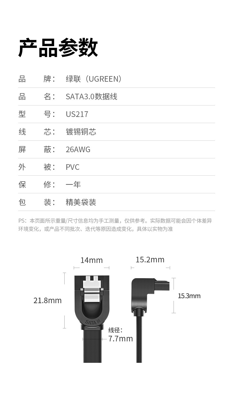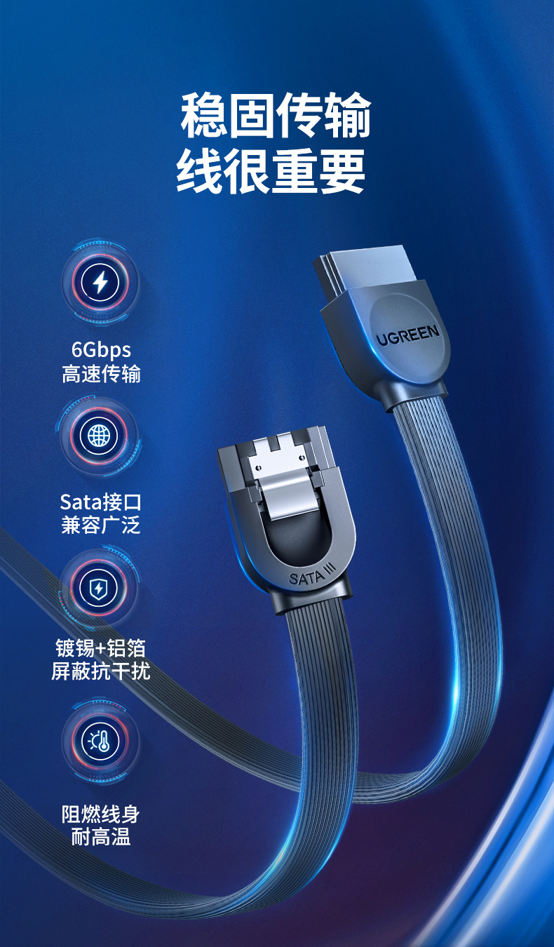 绿联 高速SATA3.0硬盘数据连接线 外接固态机械硬盘数据连接线 光驱串口线电源双通道转换线 弯头0.5米
