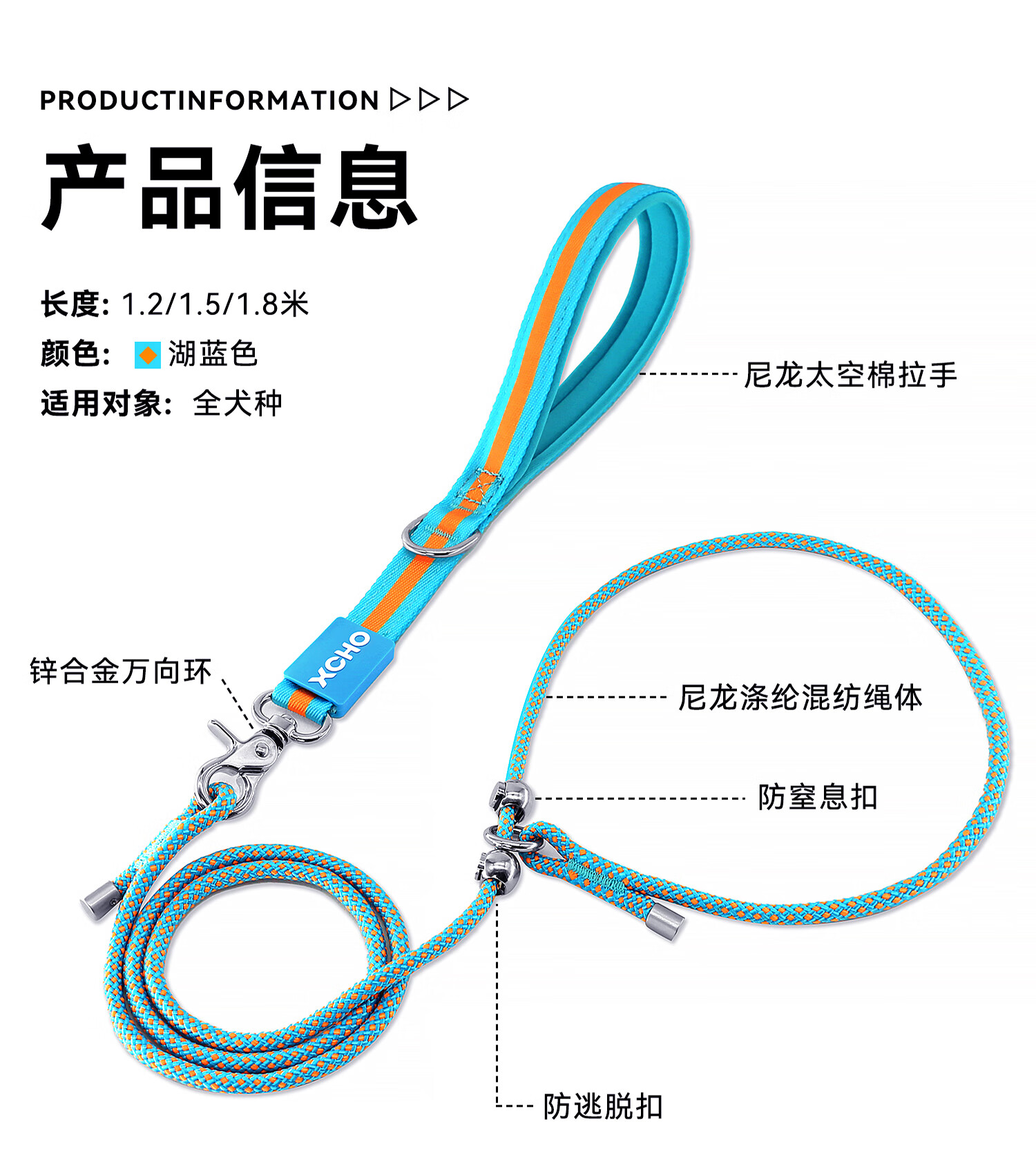 XCHO宠物p绳p链狗狗牵引绳遛狗绳子小中大型防爆冲训犬随行可拆1.5米
