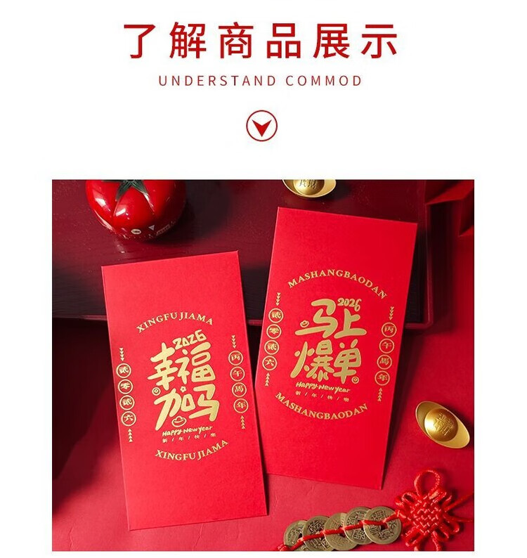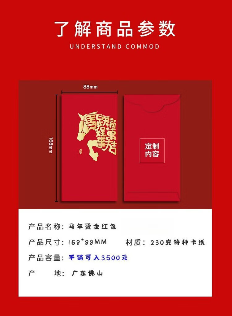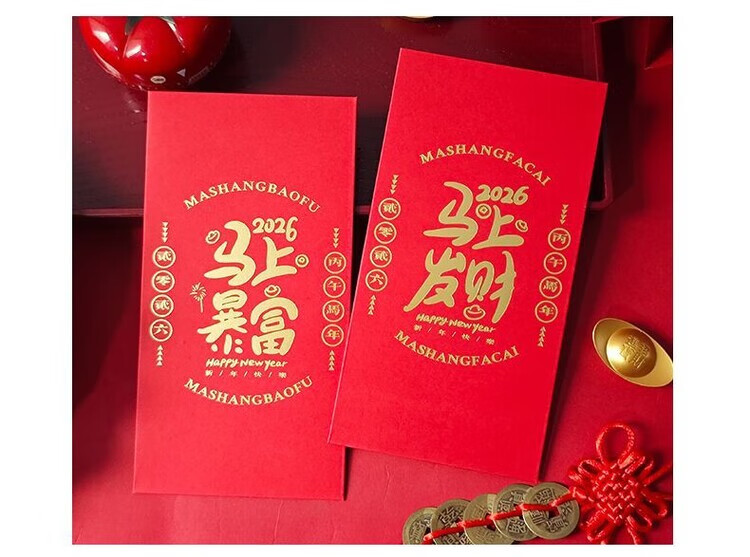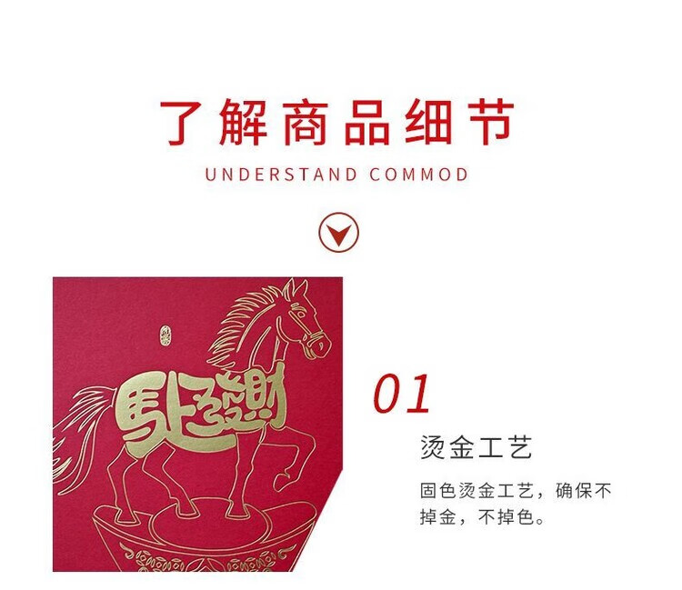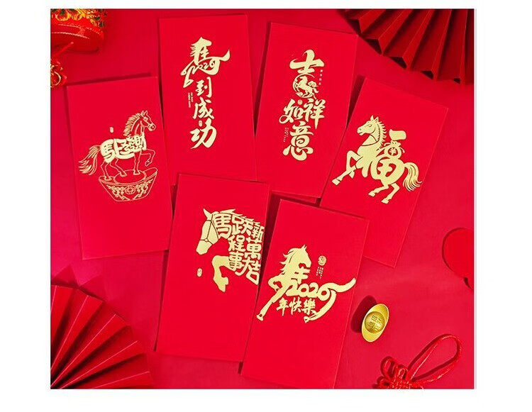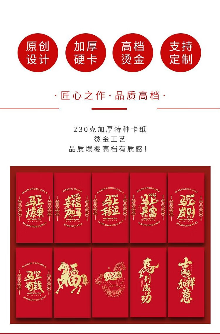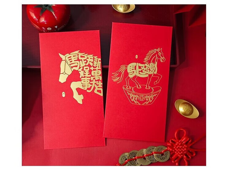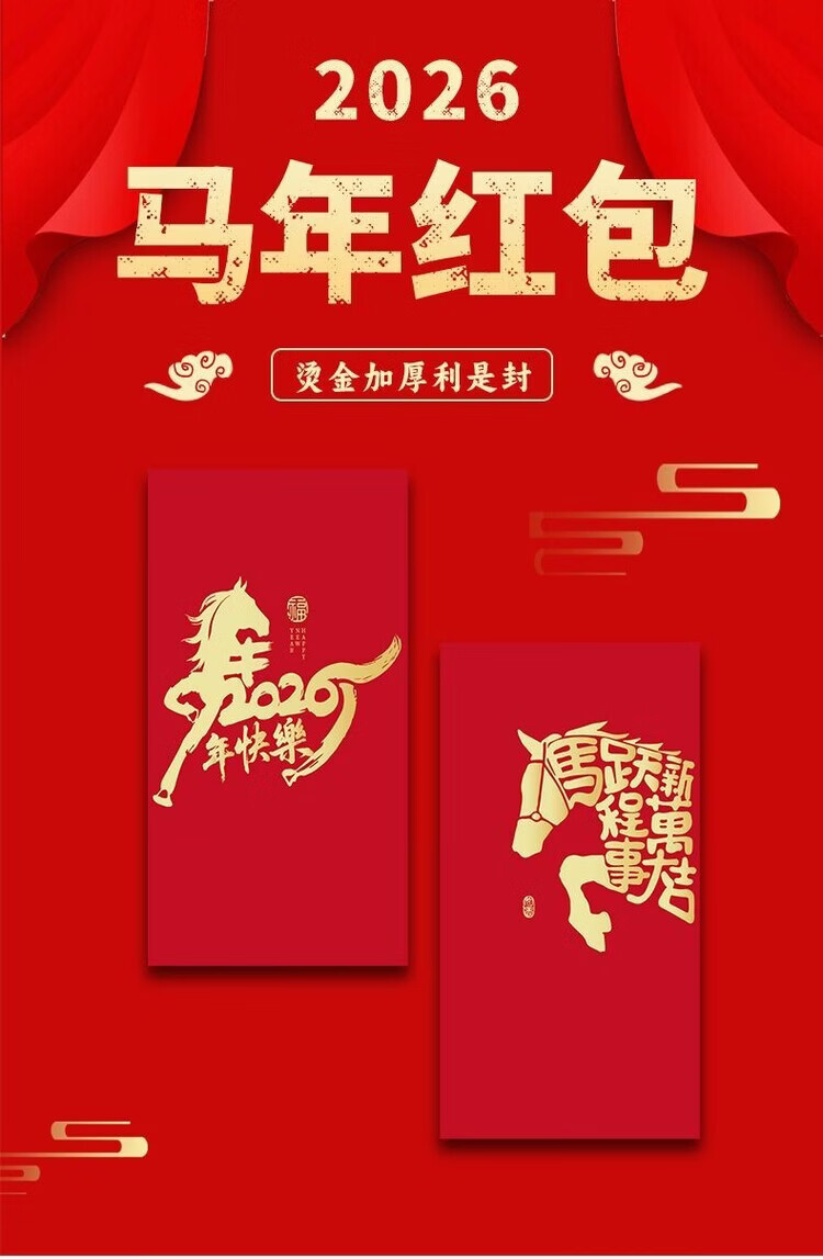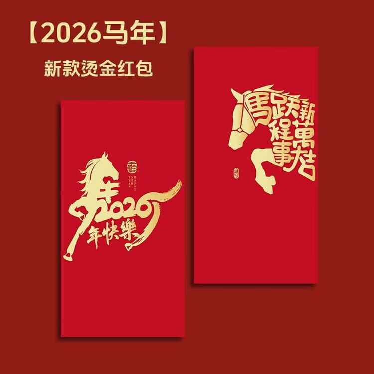 OYKTN2026新款马年红包简约个性创意烫金过新年港版利是封高档加厚硬壳 马M02【6个混装】 长款(平铺可入3000元)