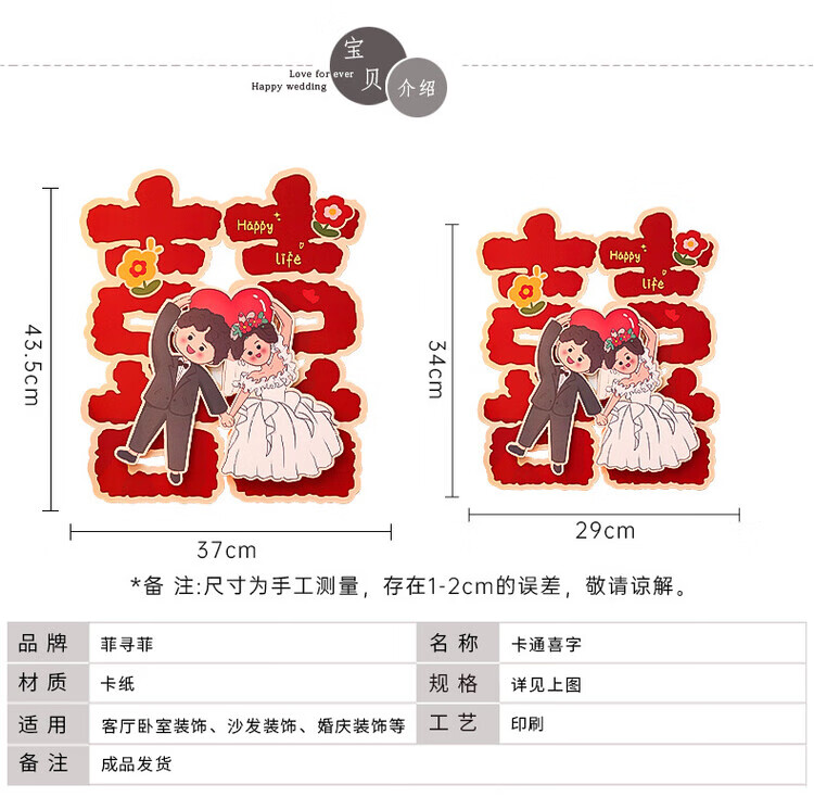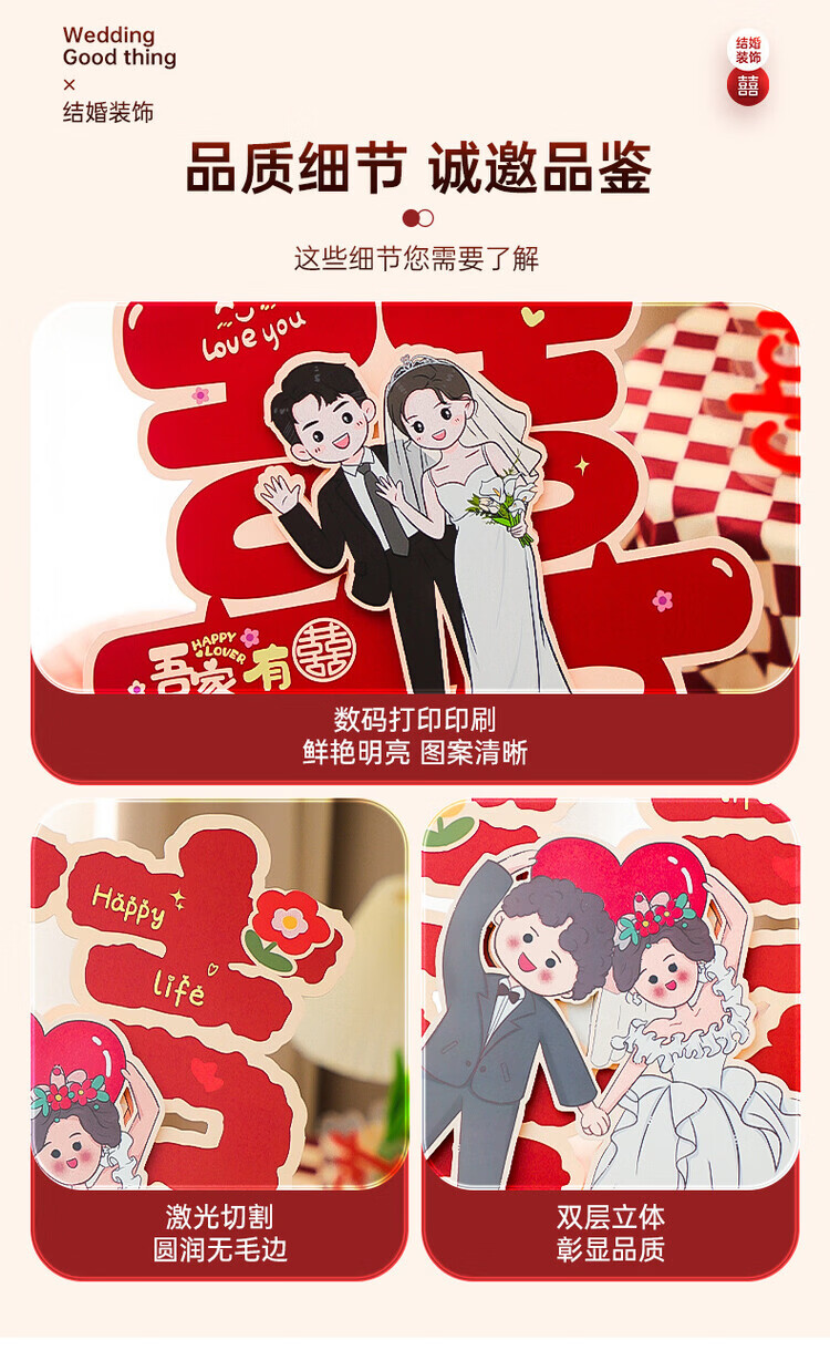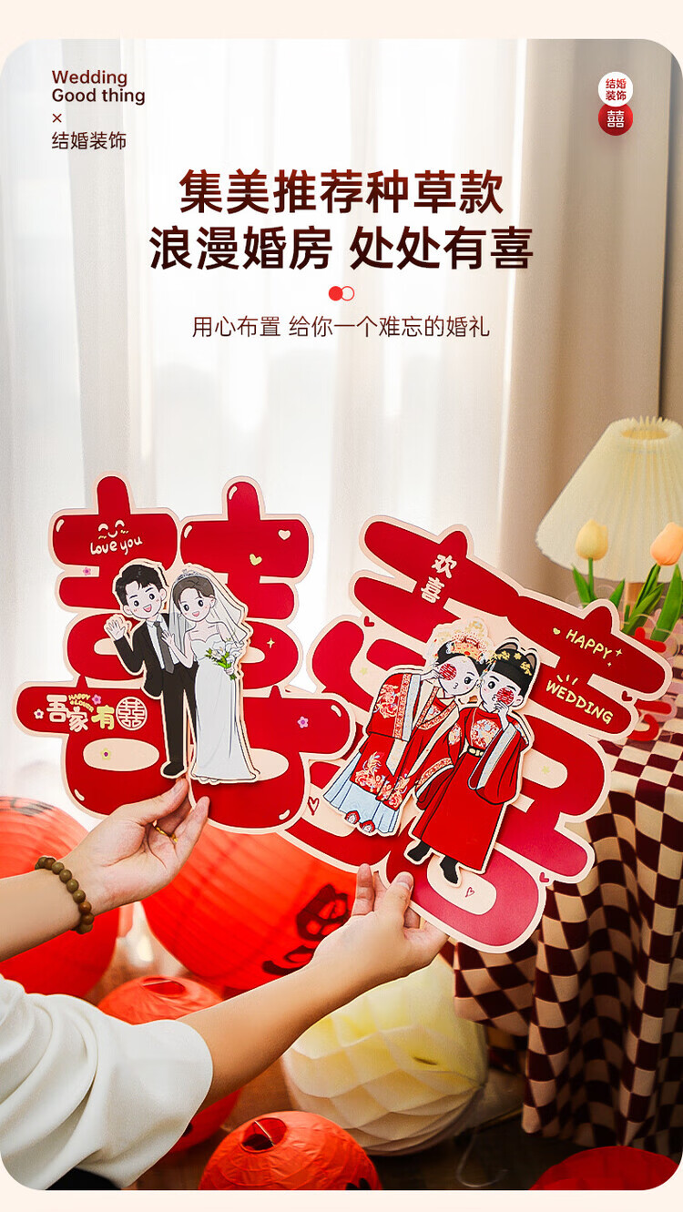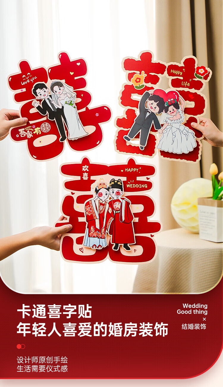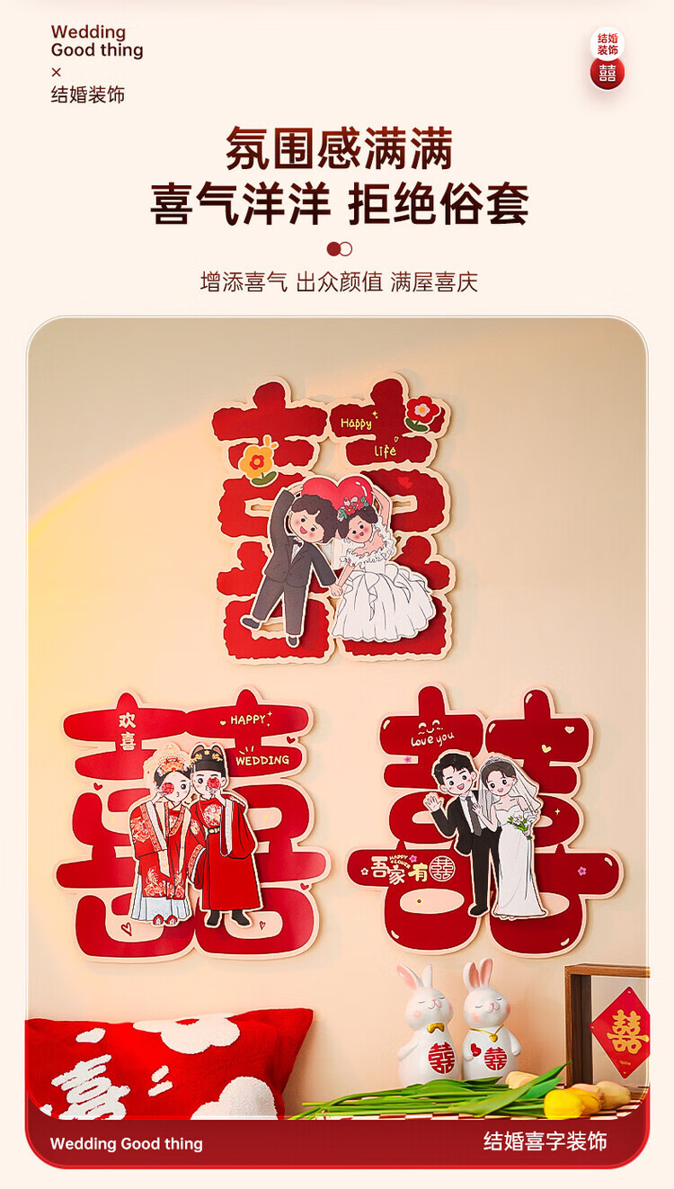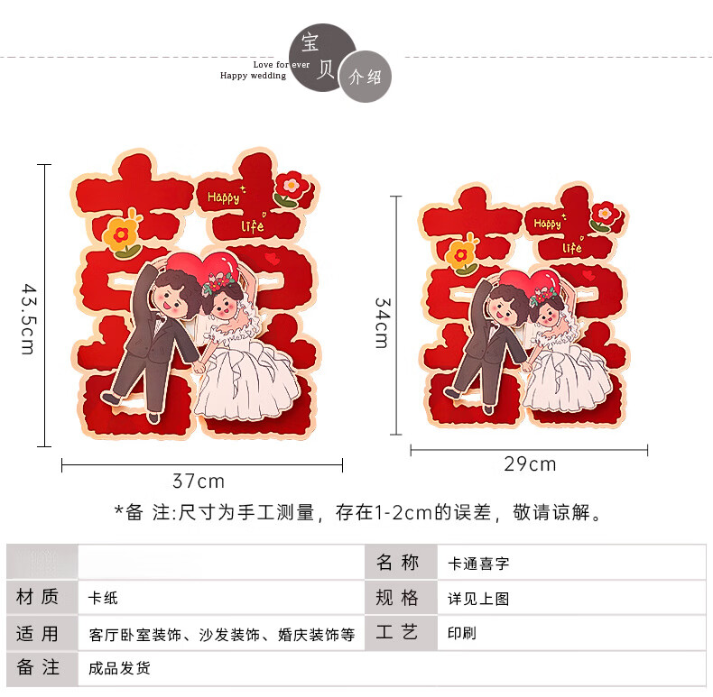 OYKTN喜字贴结婚专用婚房布置装饰婚礼客厅入户男女方卧室门喜立体贴纸 吾家有喜_卡通喜字 40#【2张】