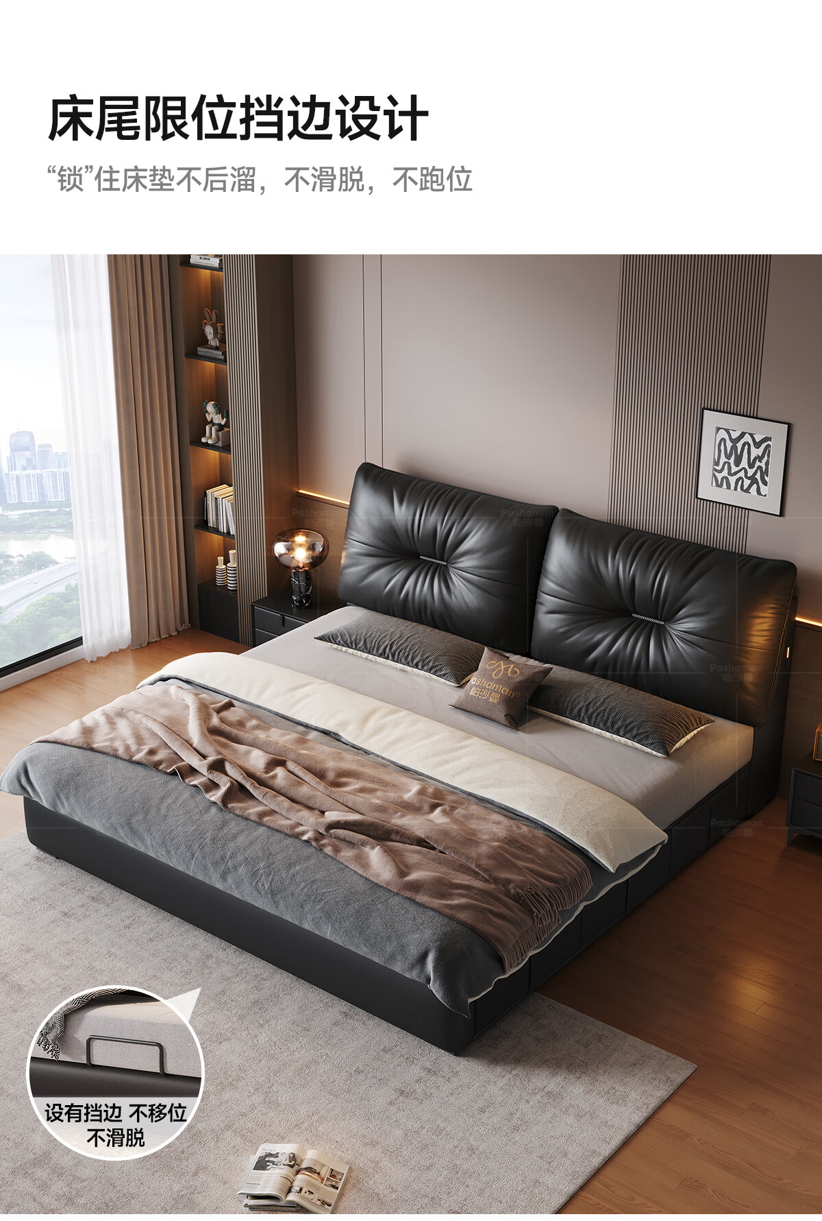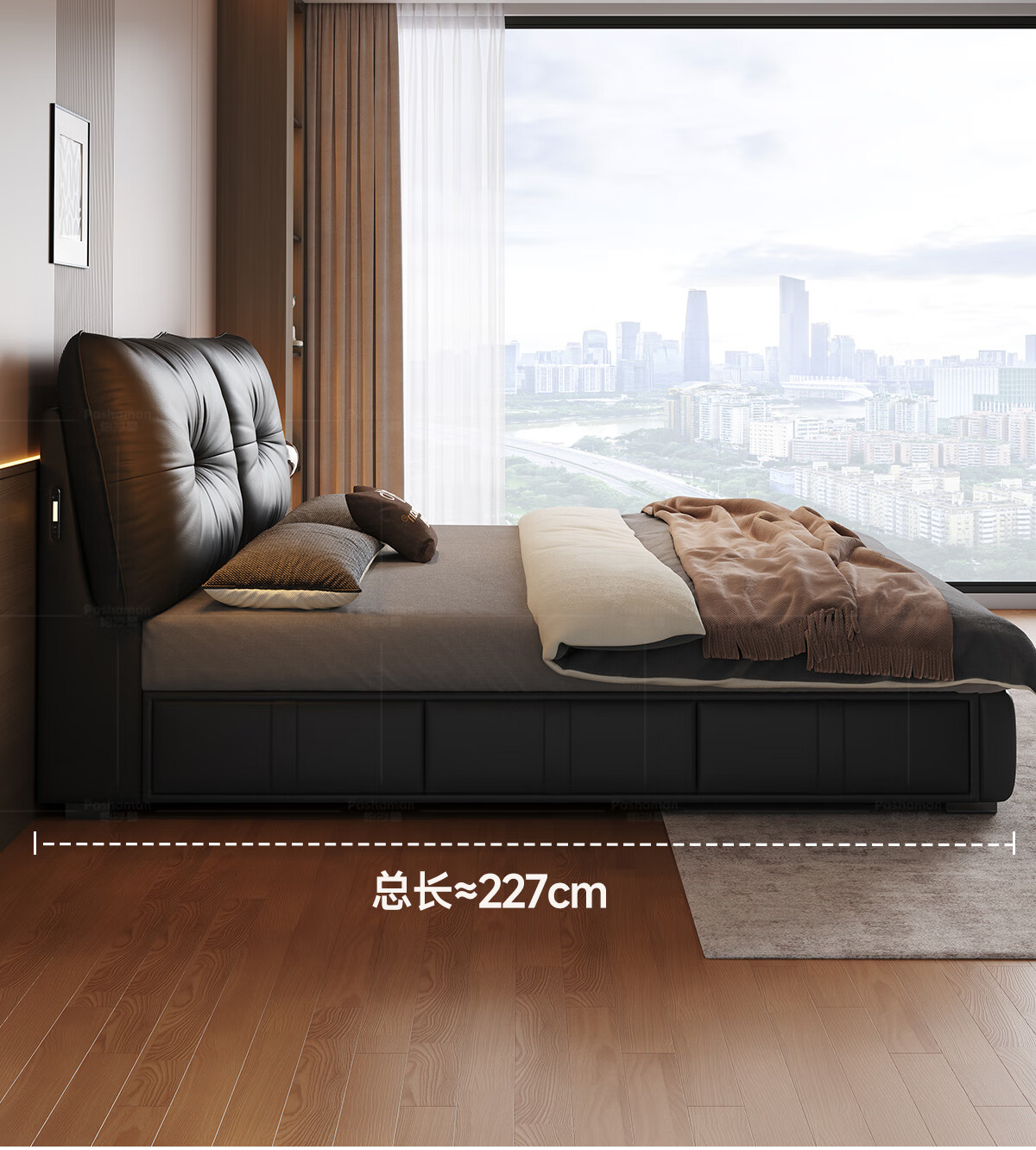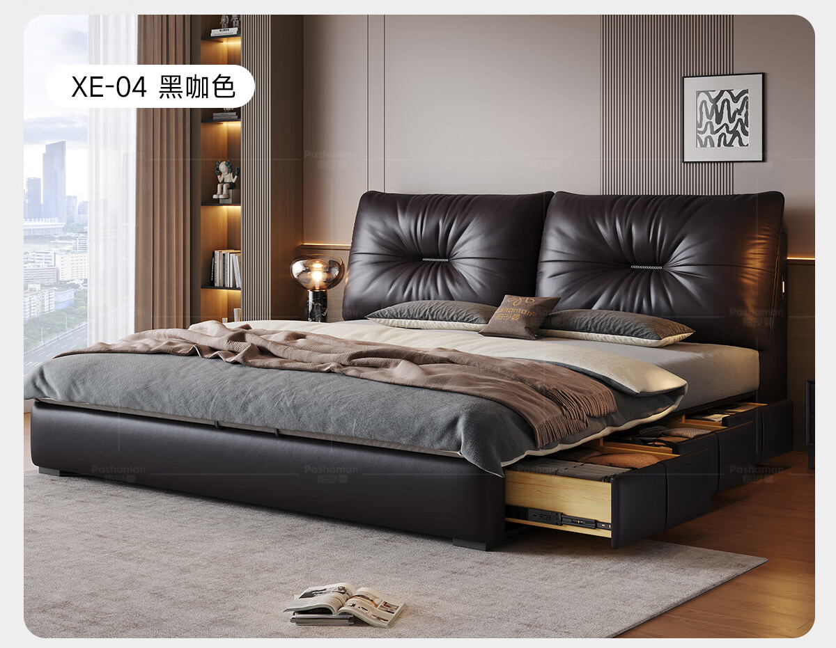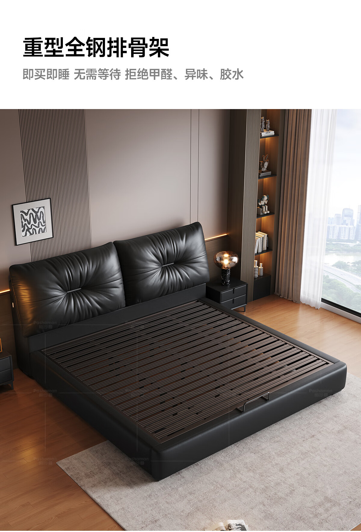 帕沙曼大黑牛意式极简落地床高端主卧真皮大床2025新款储物床8367CP-R 【全钢排骨架】单床+床头柜*1+床垫 平移储物结构1800mm*2000mm