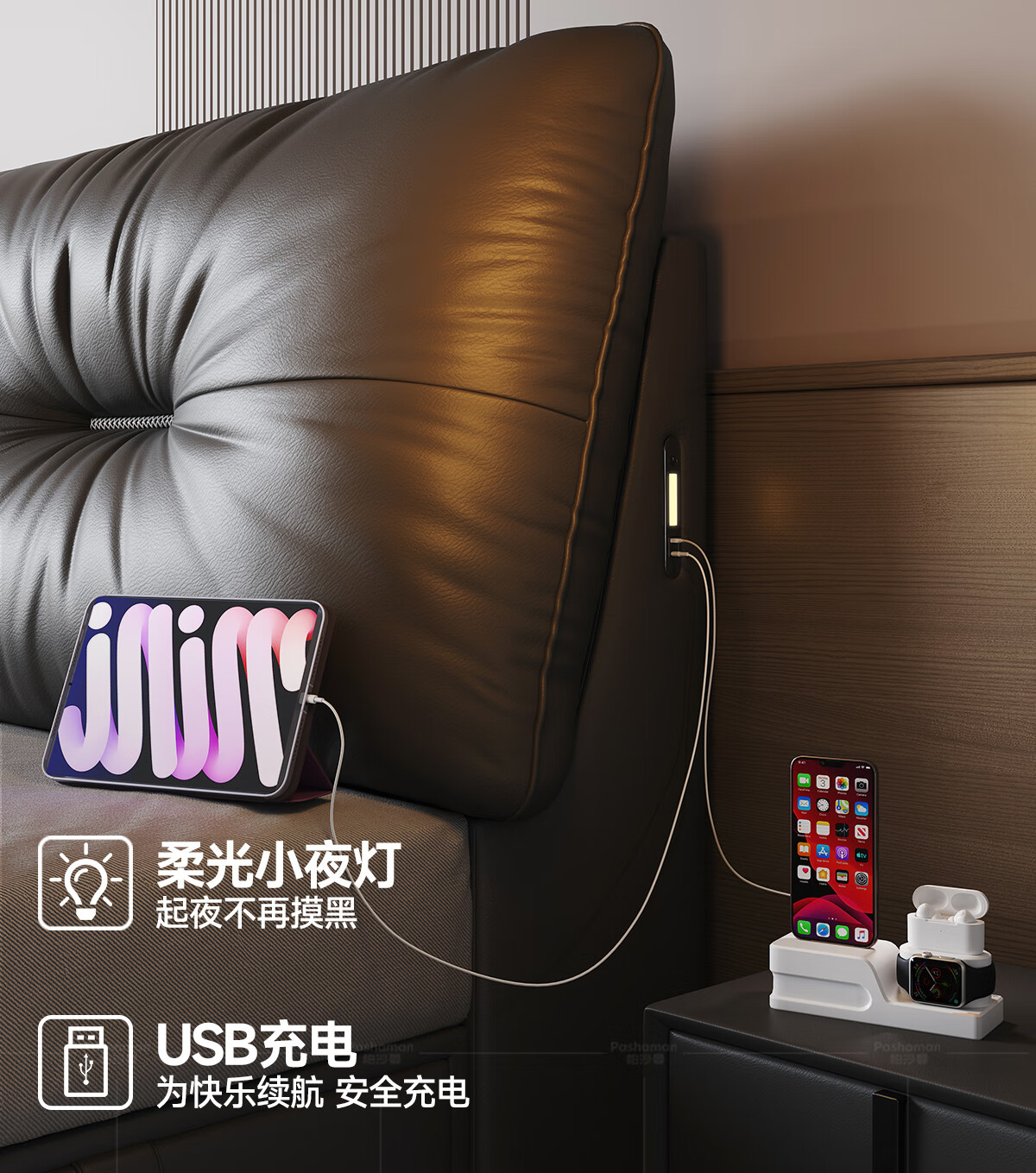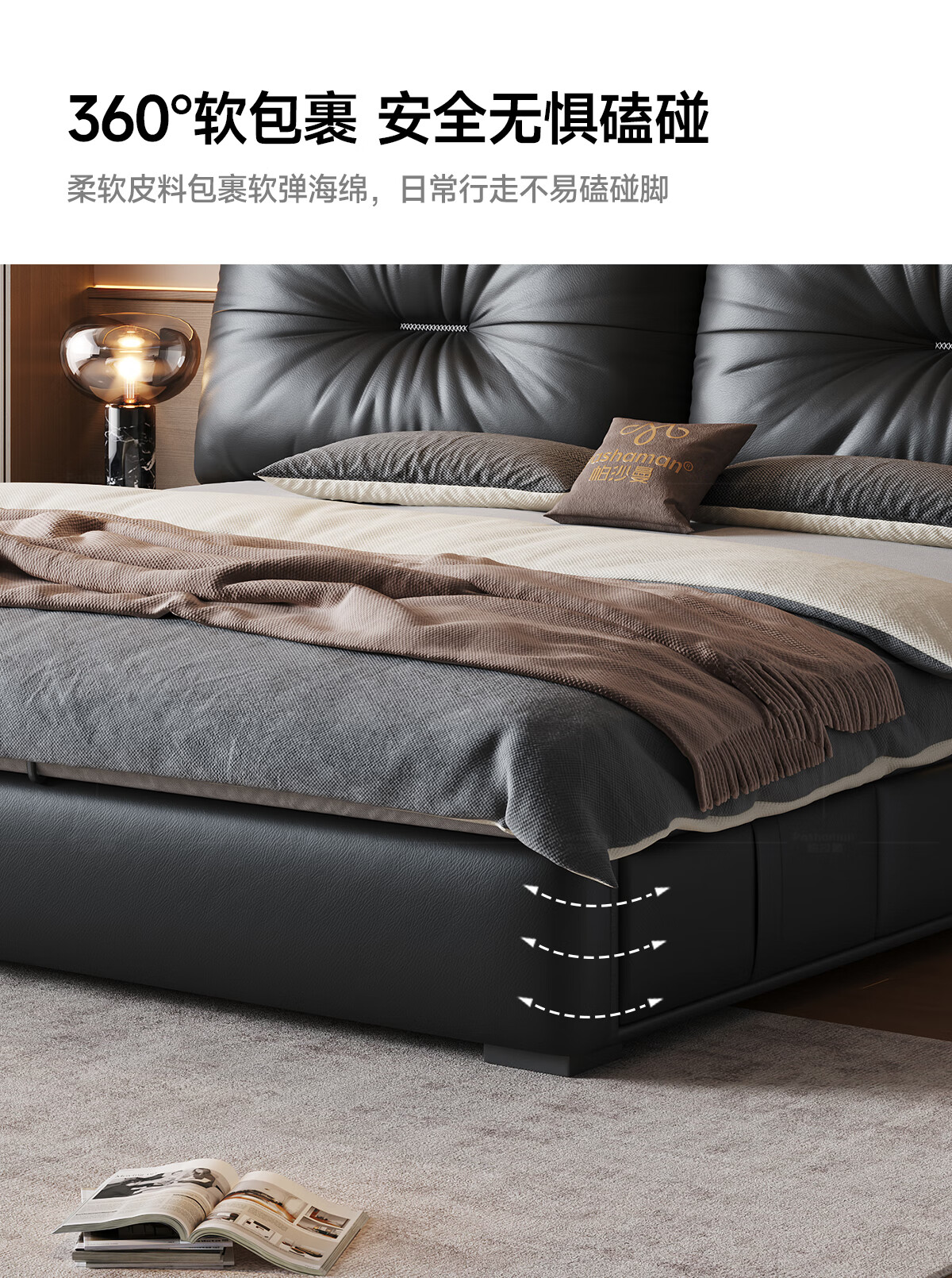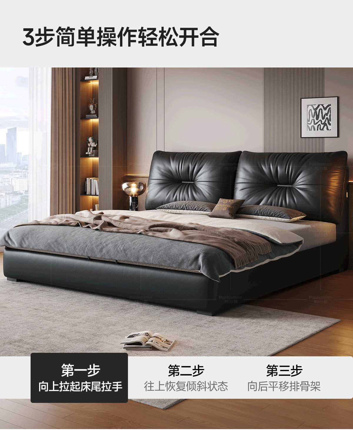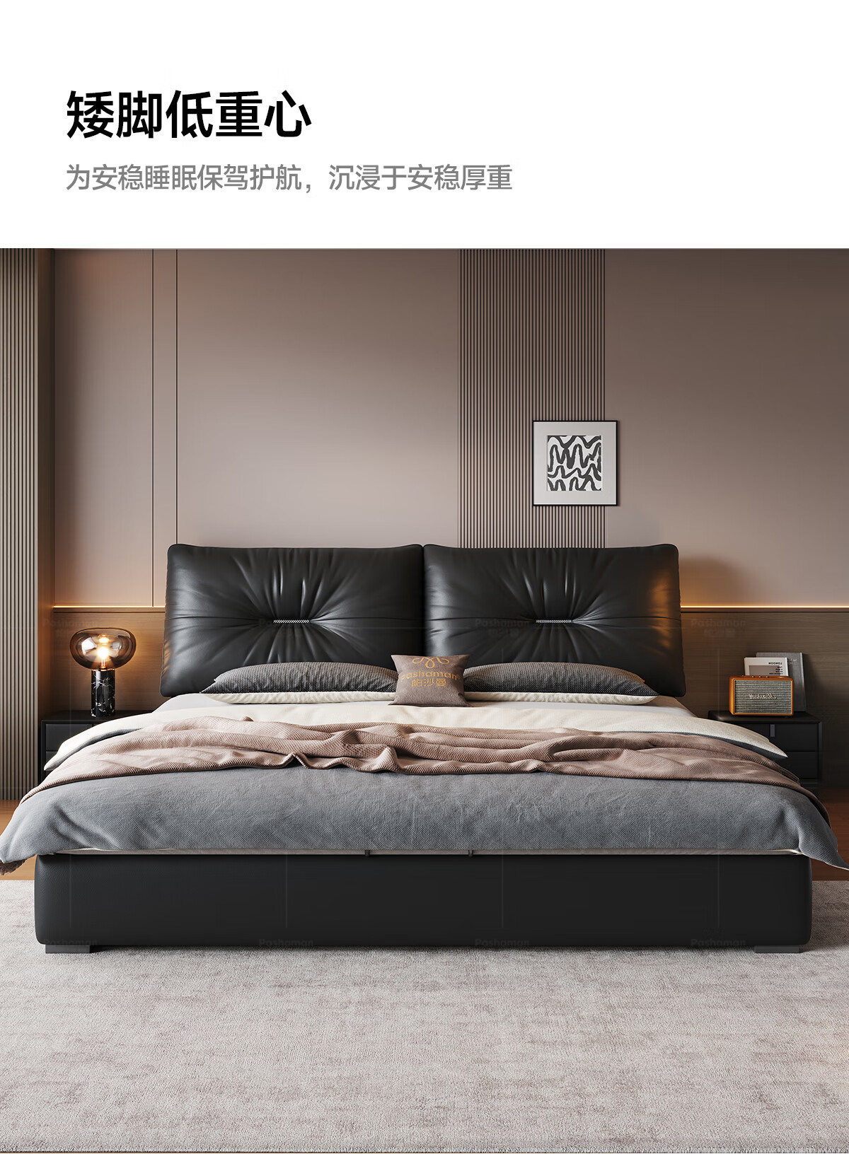 帕沙曼大黑牛意式极简落地床高端主卧真皮大床2025新款储物床8367CP-R 【全钢排骨架】单床+床头柜*1+床垫 平移储物结构1800mm*2000mm