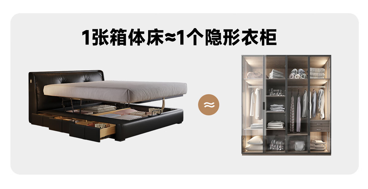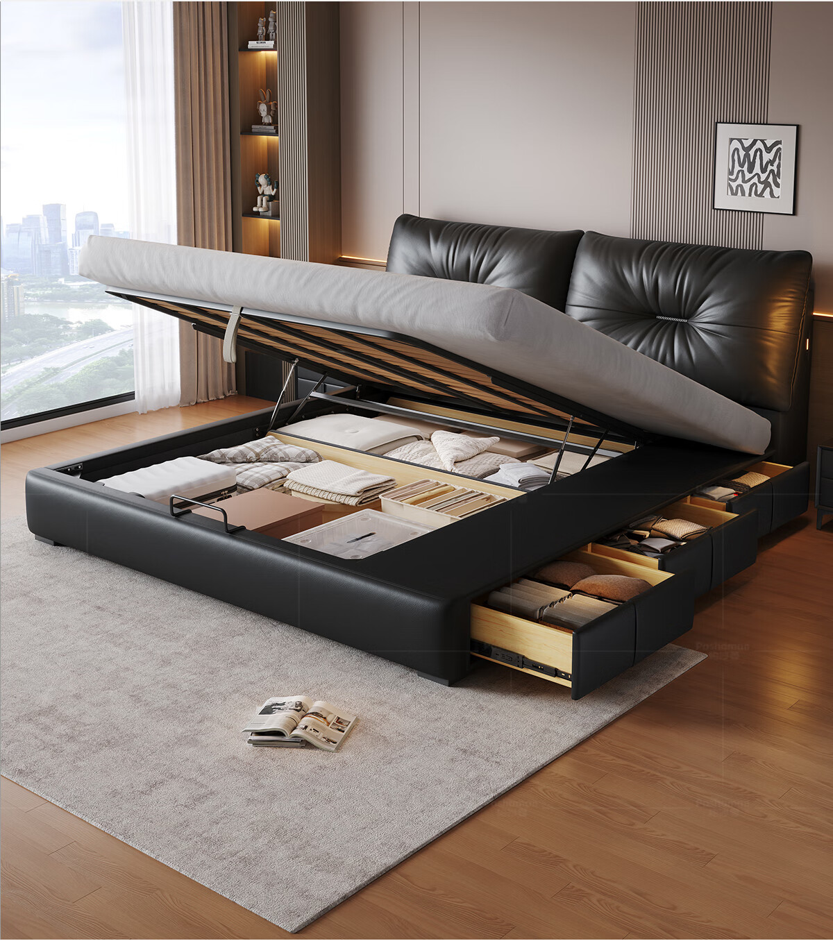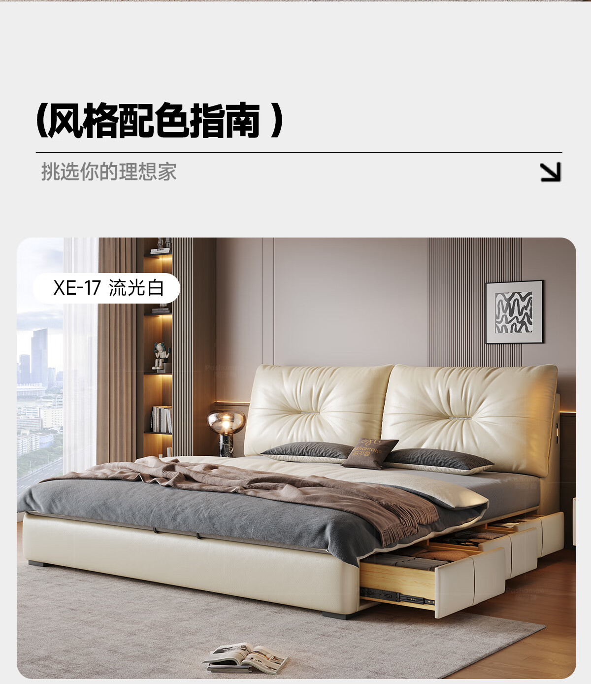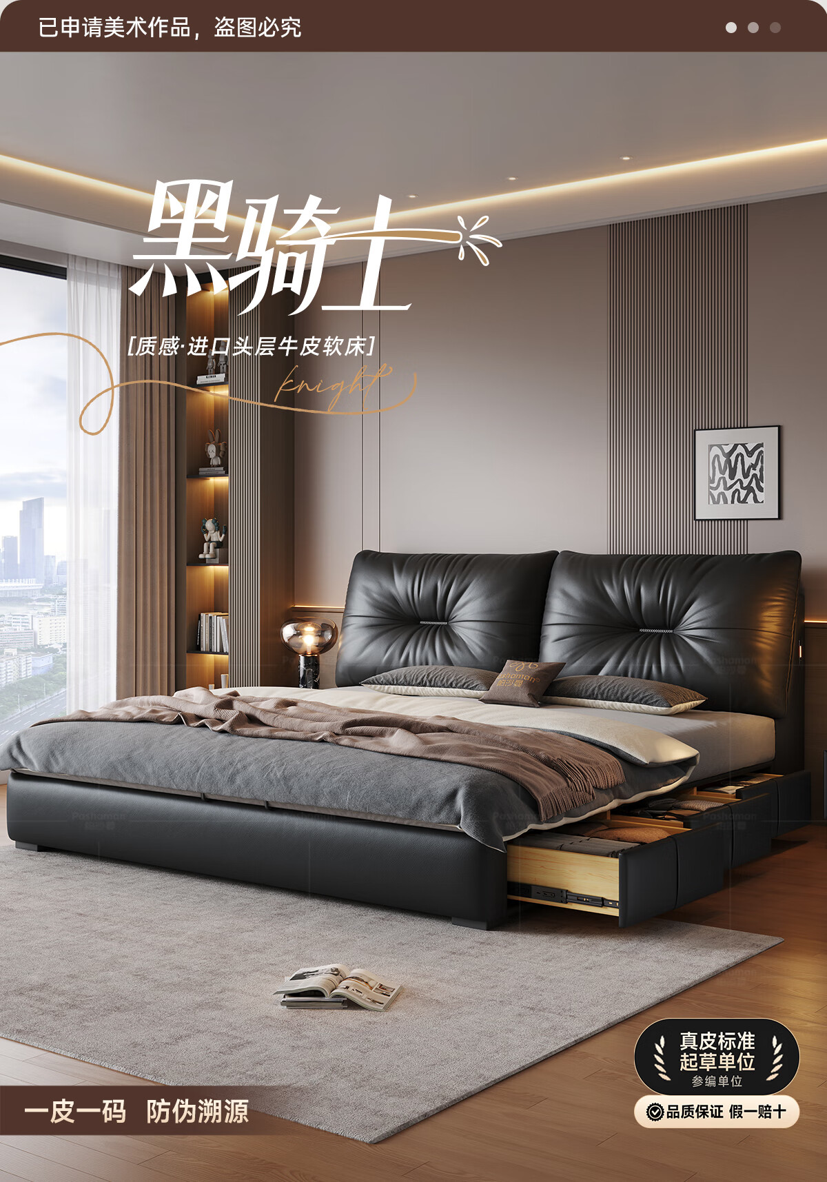 帕沙曼大黑牛意式极简落地床高端主卧真皮大床2025新款储物床8367CP-R 【全钢排骨架】单床+床头柜*1+床垫 平移储物结构1800mm*2000mm