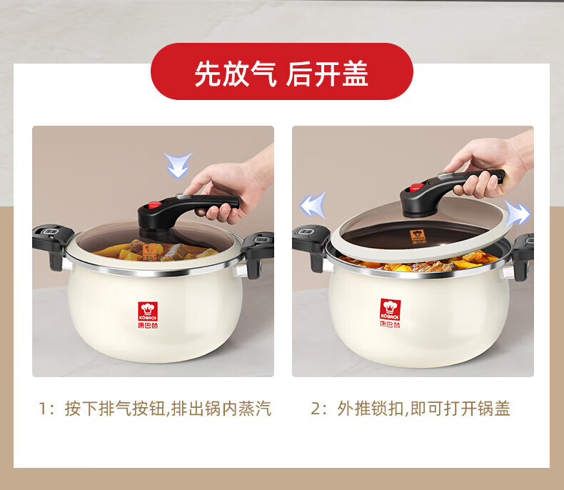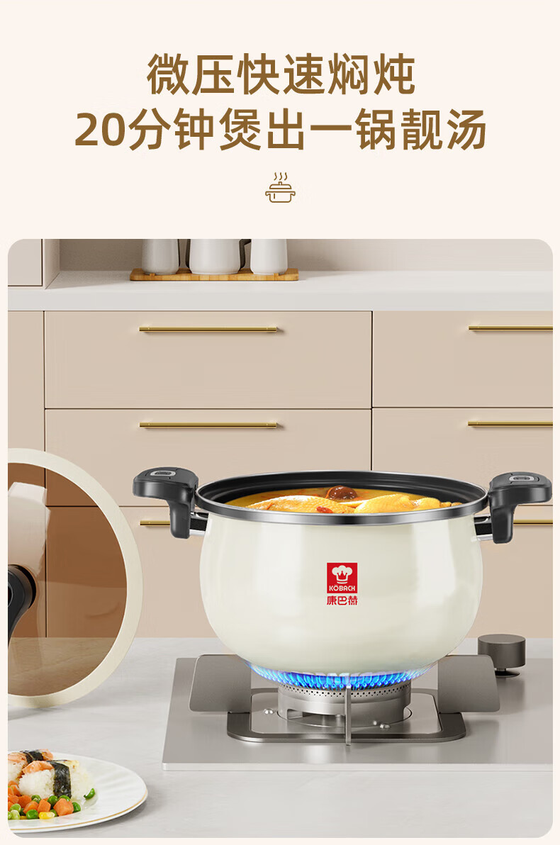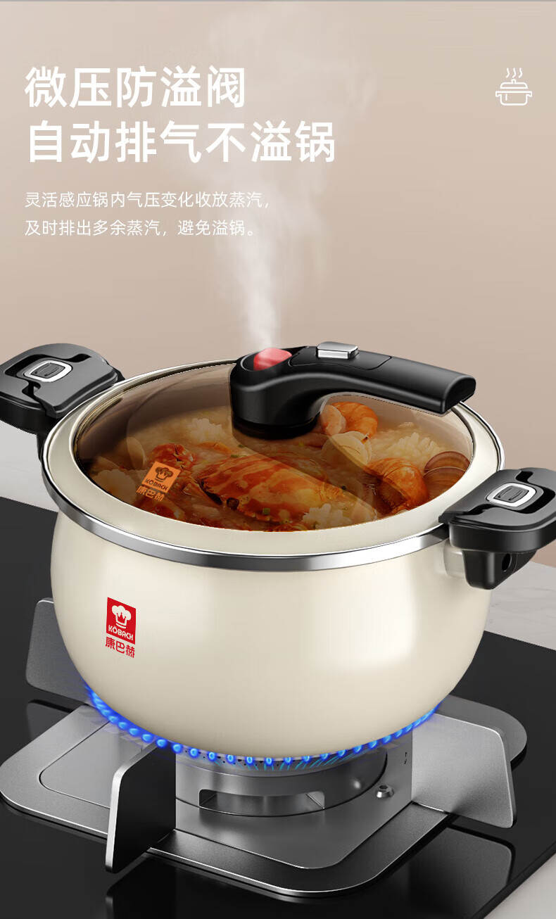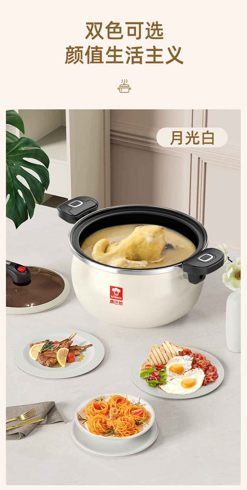 康巴赫纯钛电压力锅高压锅家用电饭煲智能料理锅家用免排气大容量电饭锅0氟涂层4-5L珐琅锅炖锅套装 钛金色 4L 纯钛高压料理锅+珐琅锅