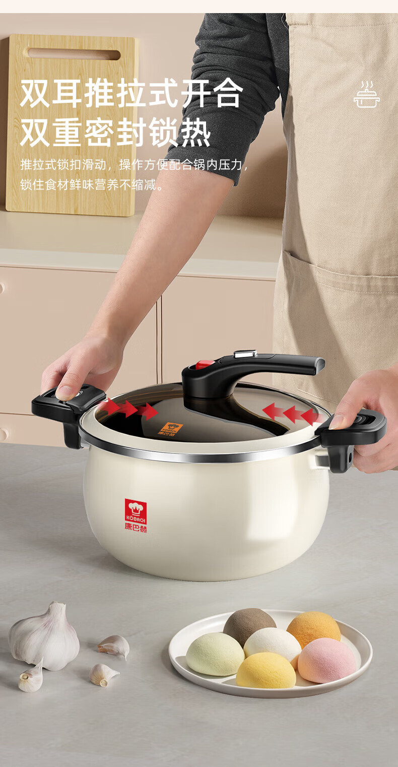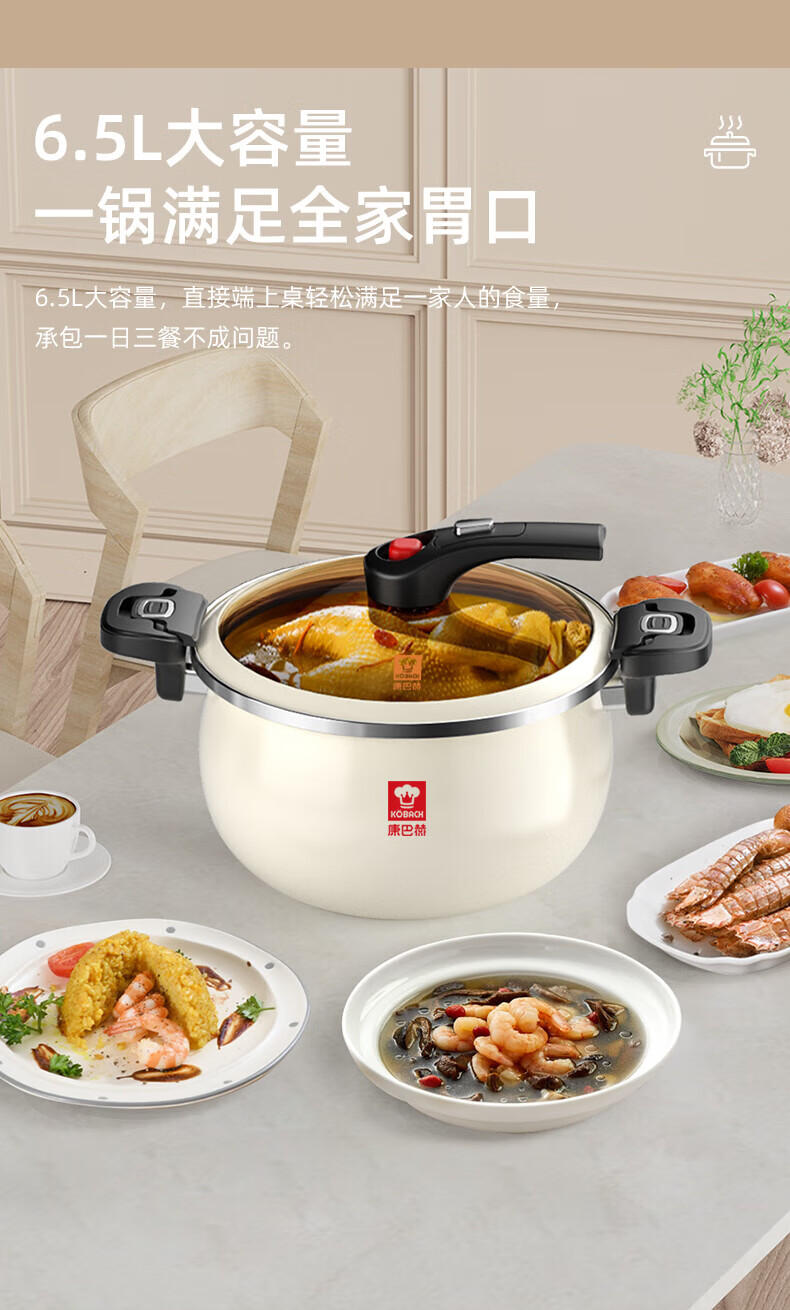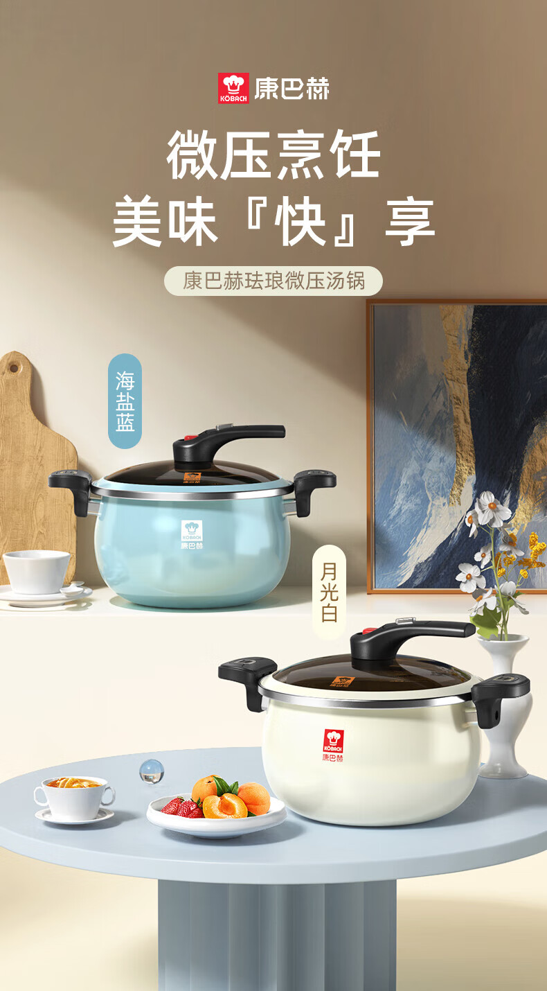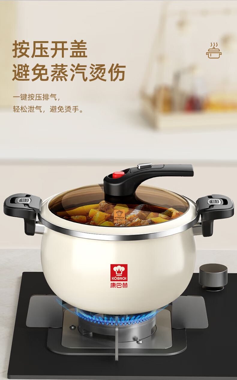 康巴赫纯钛电压力锅高压锅家用电饭煲智能料理锅家用免排气大容量电饭锅0氟涂层4-5L珐琅锅炖锅套装 钛金色 4L 纯钛高压料理锅+珐琅锅