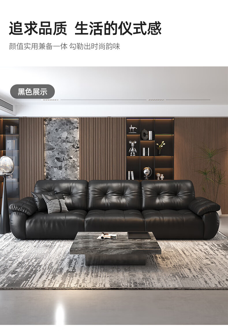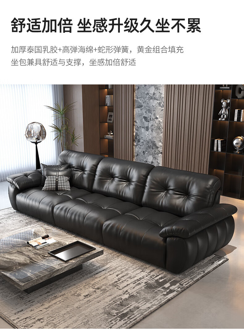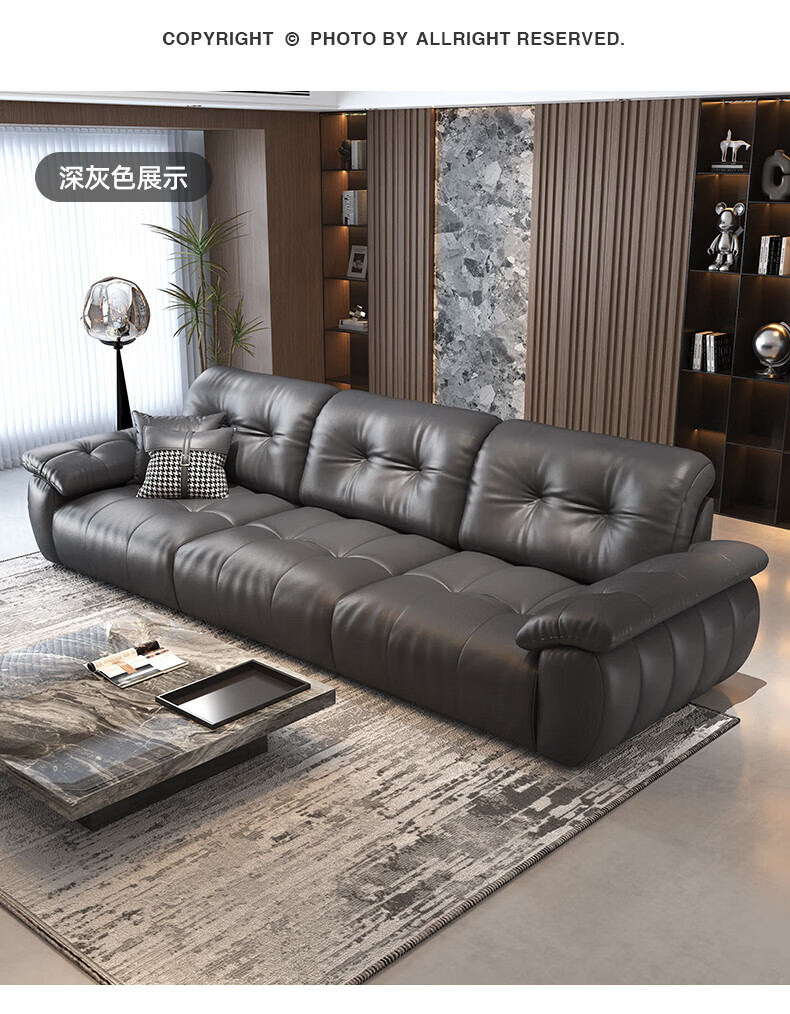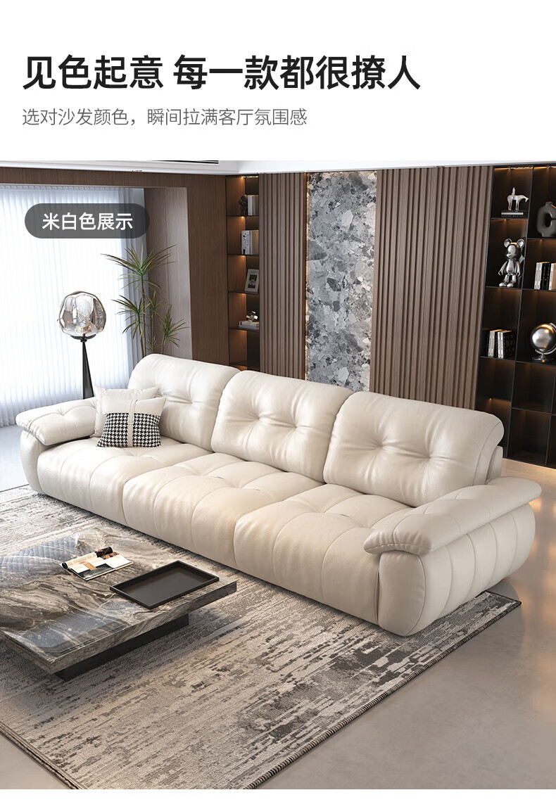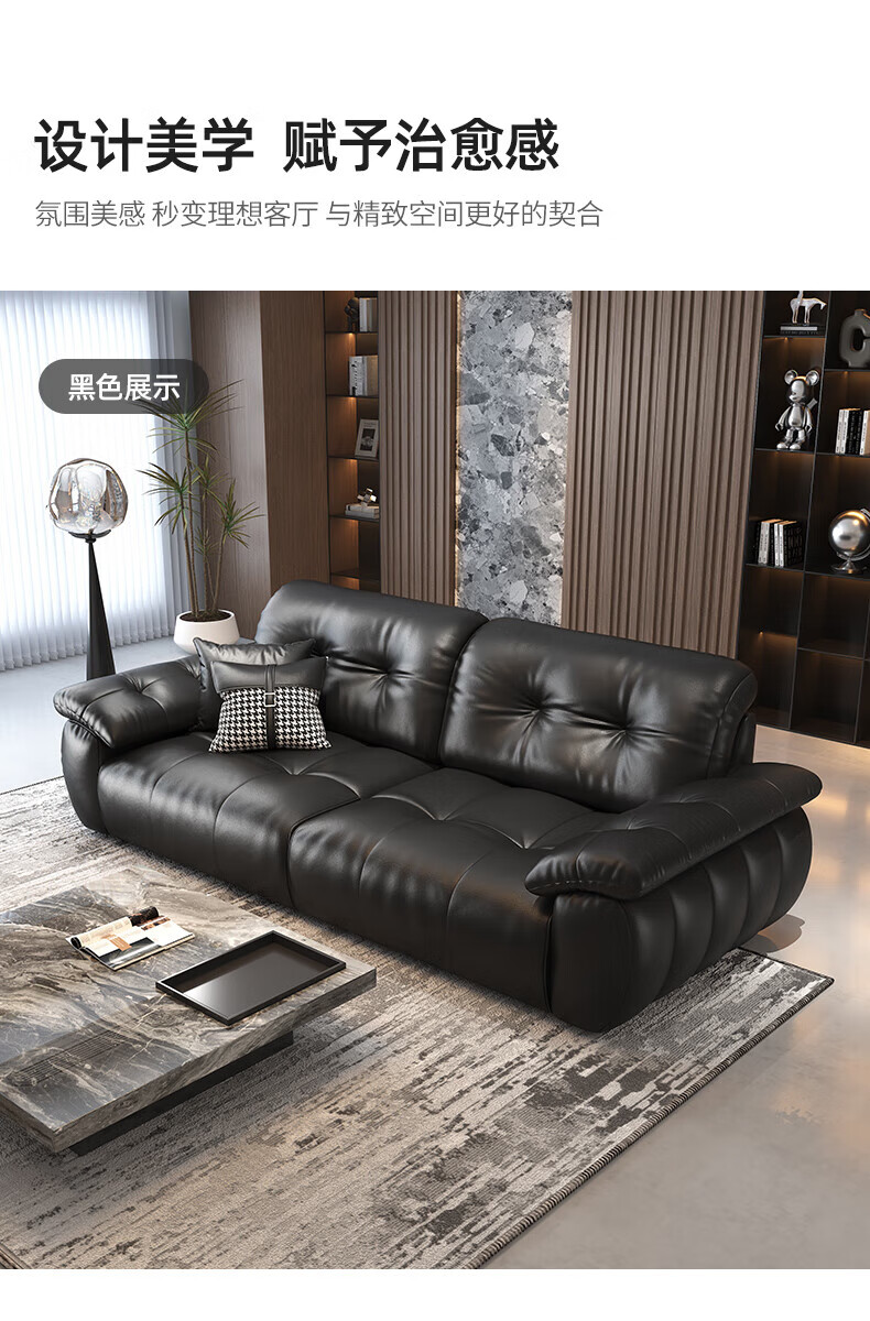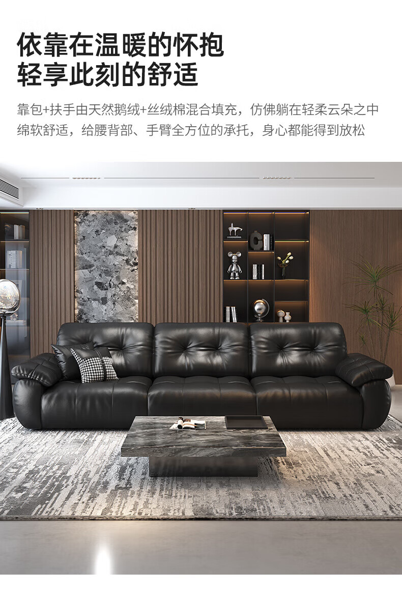 风尚田园云漫沙发客厅高端轻奢现代直排头层牛皮意式极简新款真皮沙发 2.6米 加厚头层真皮+45D高弹海绵