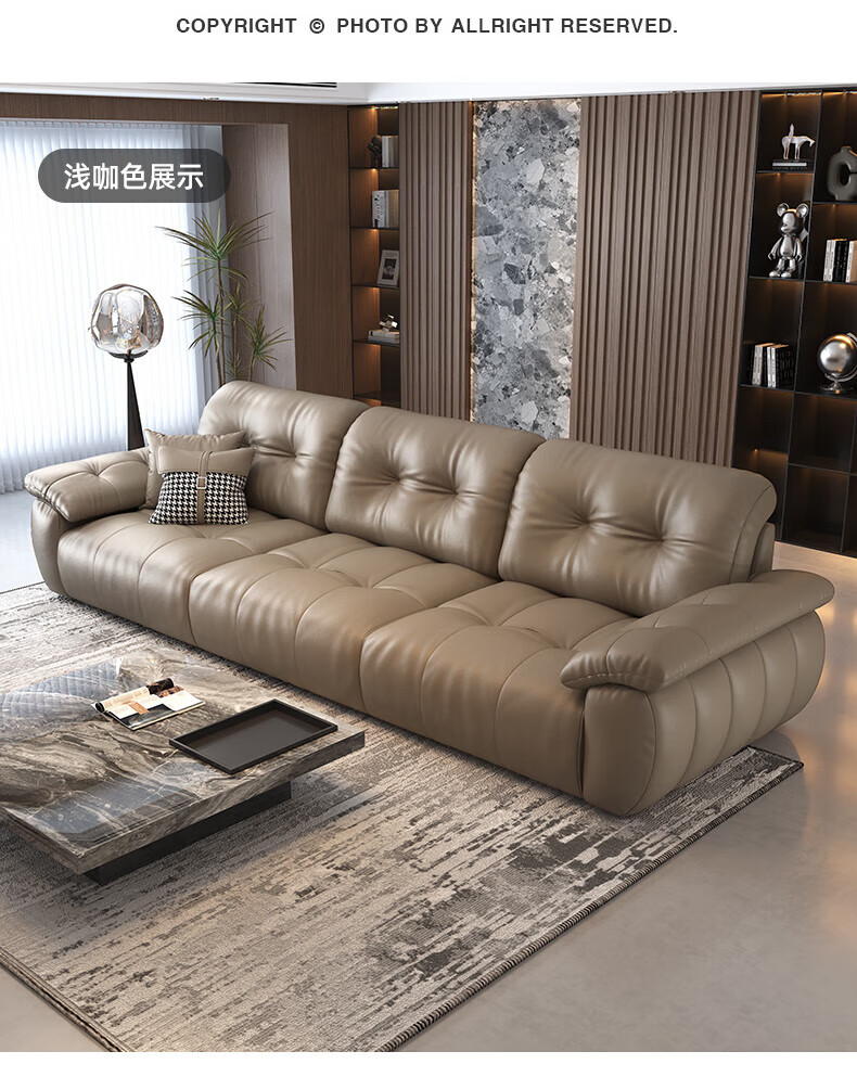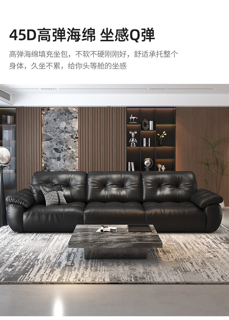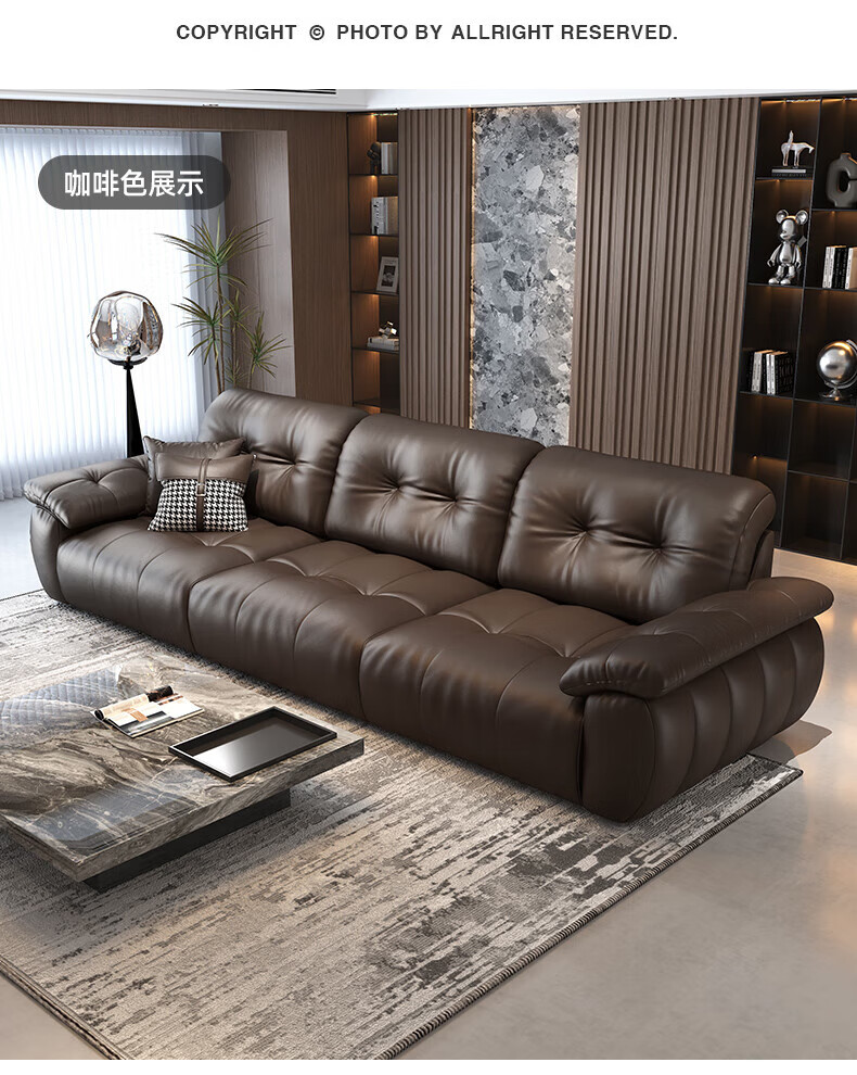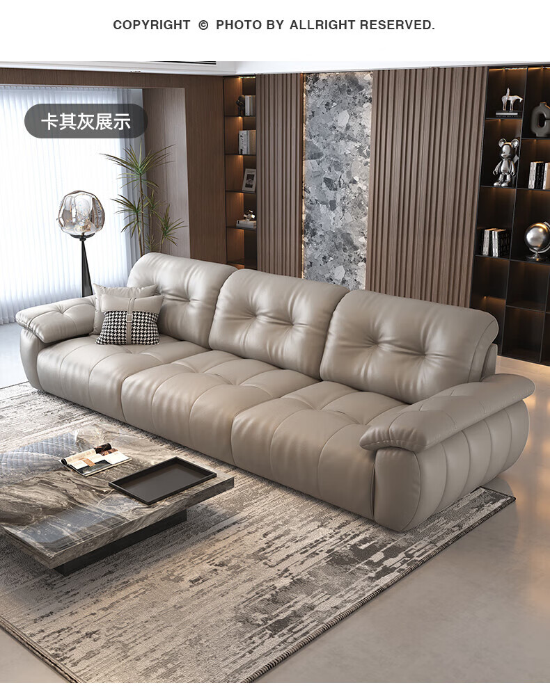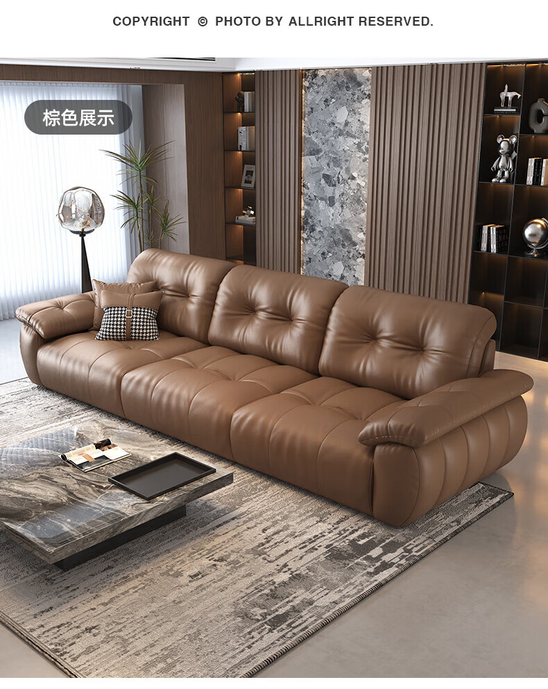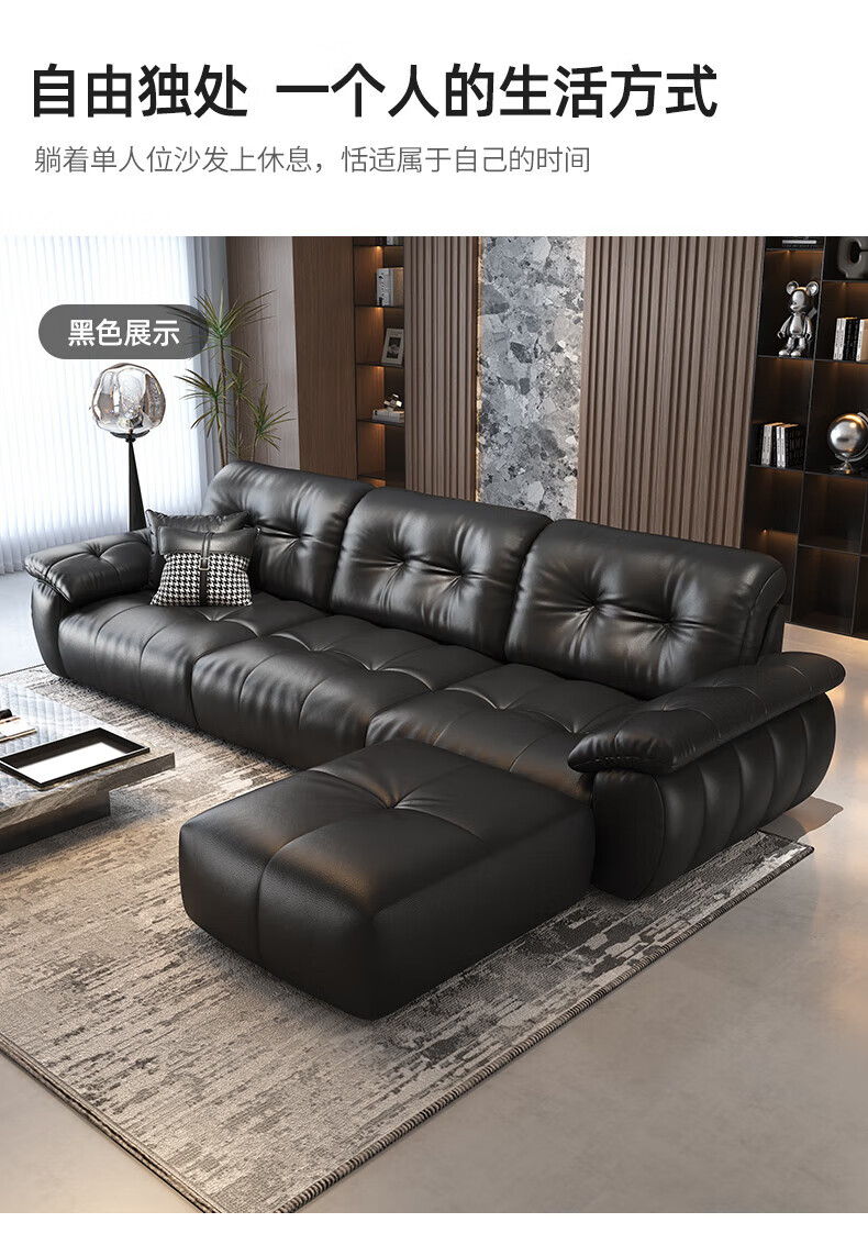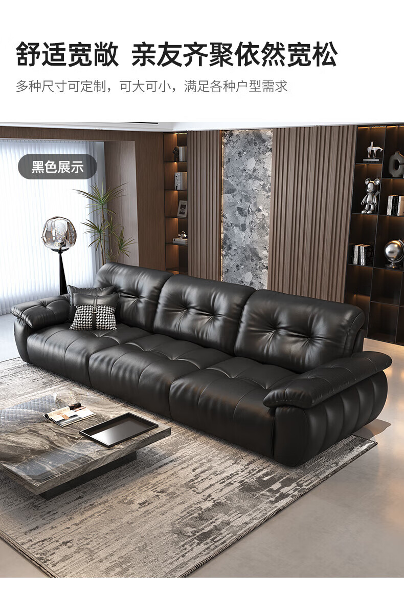 风尚田园云漫沙发客厅高端轻奢现代直排头层牛皮意式极简新款真皮沙发 2.6米 加厚头层真皮+45D高弹海绵