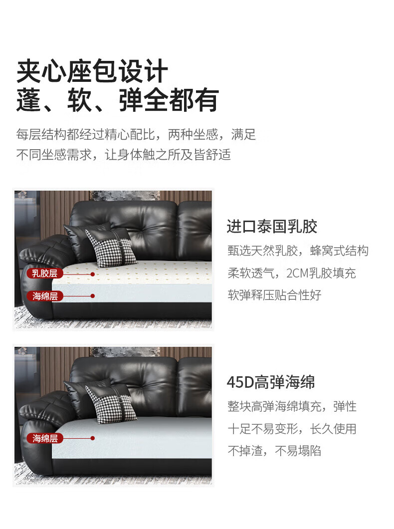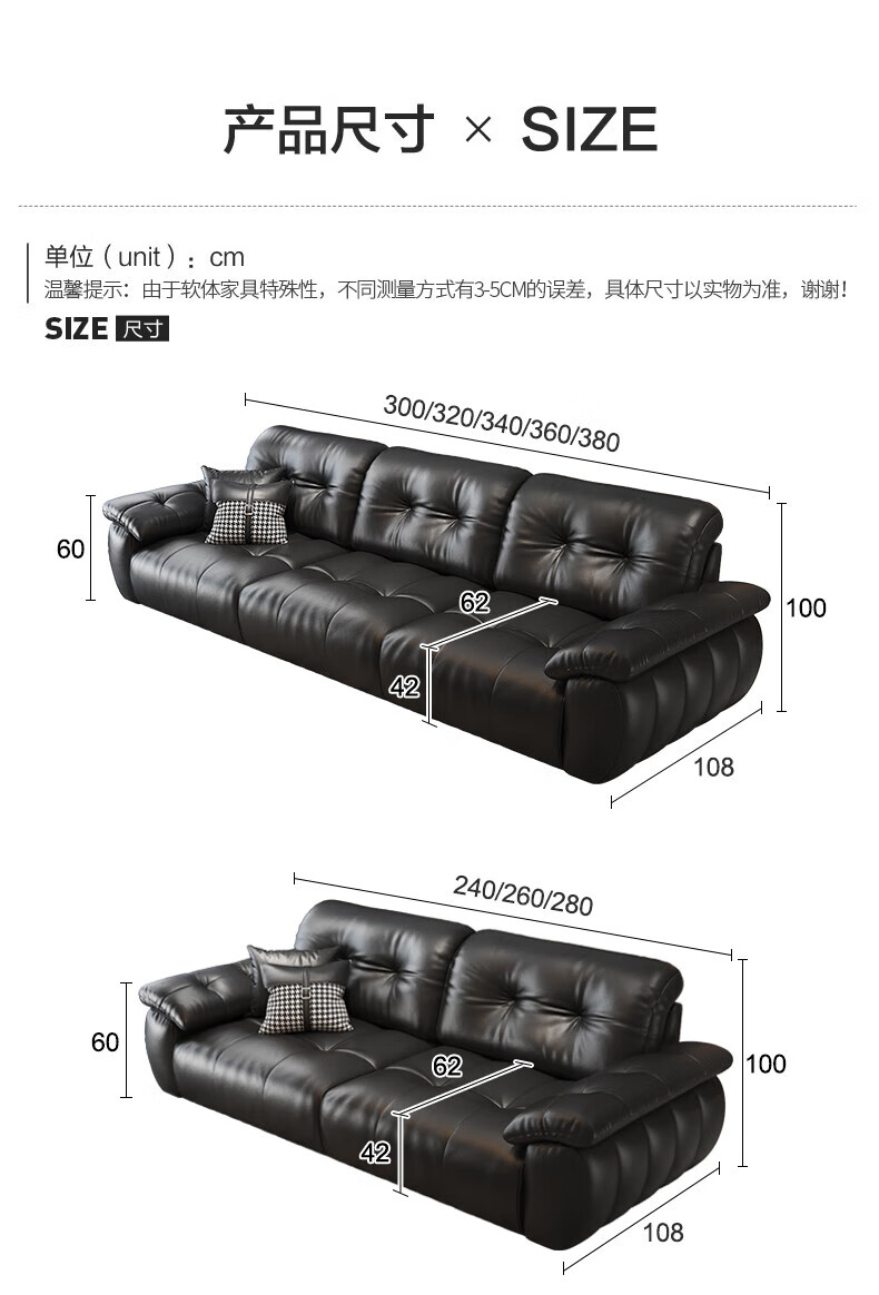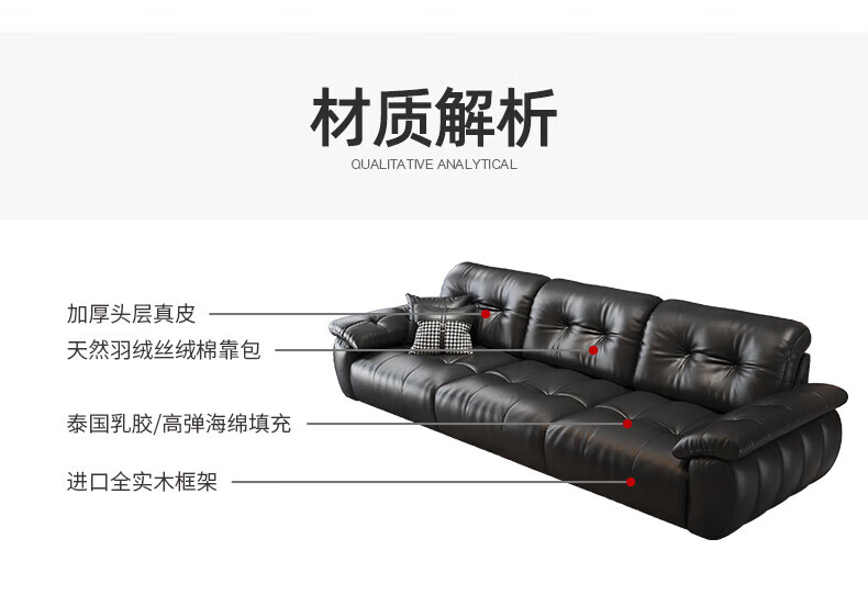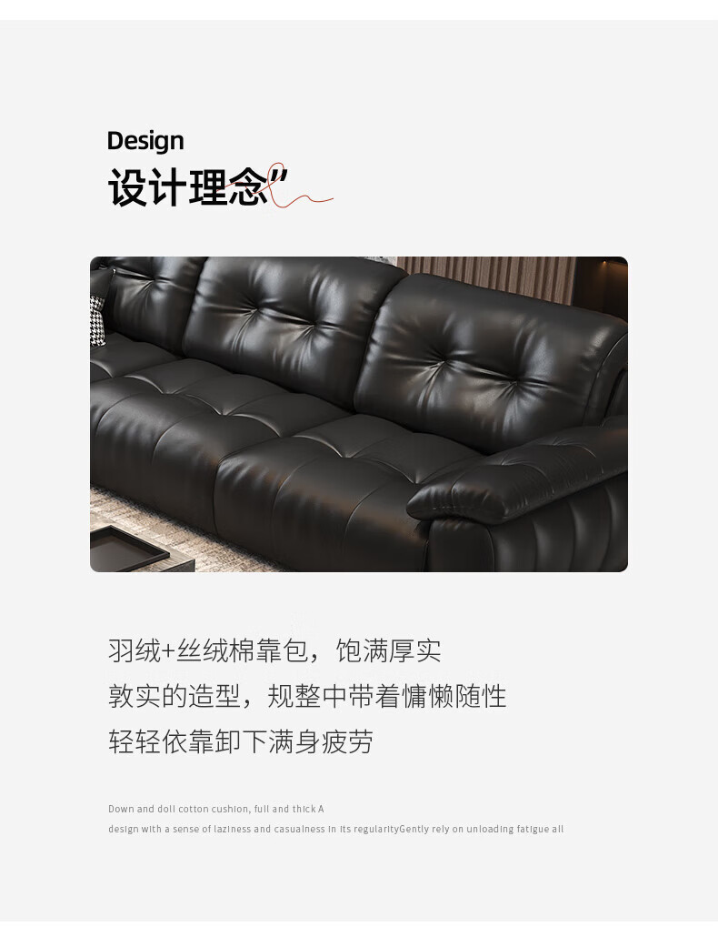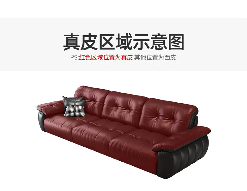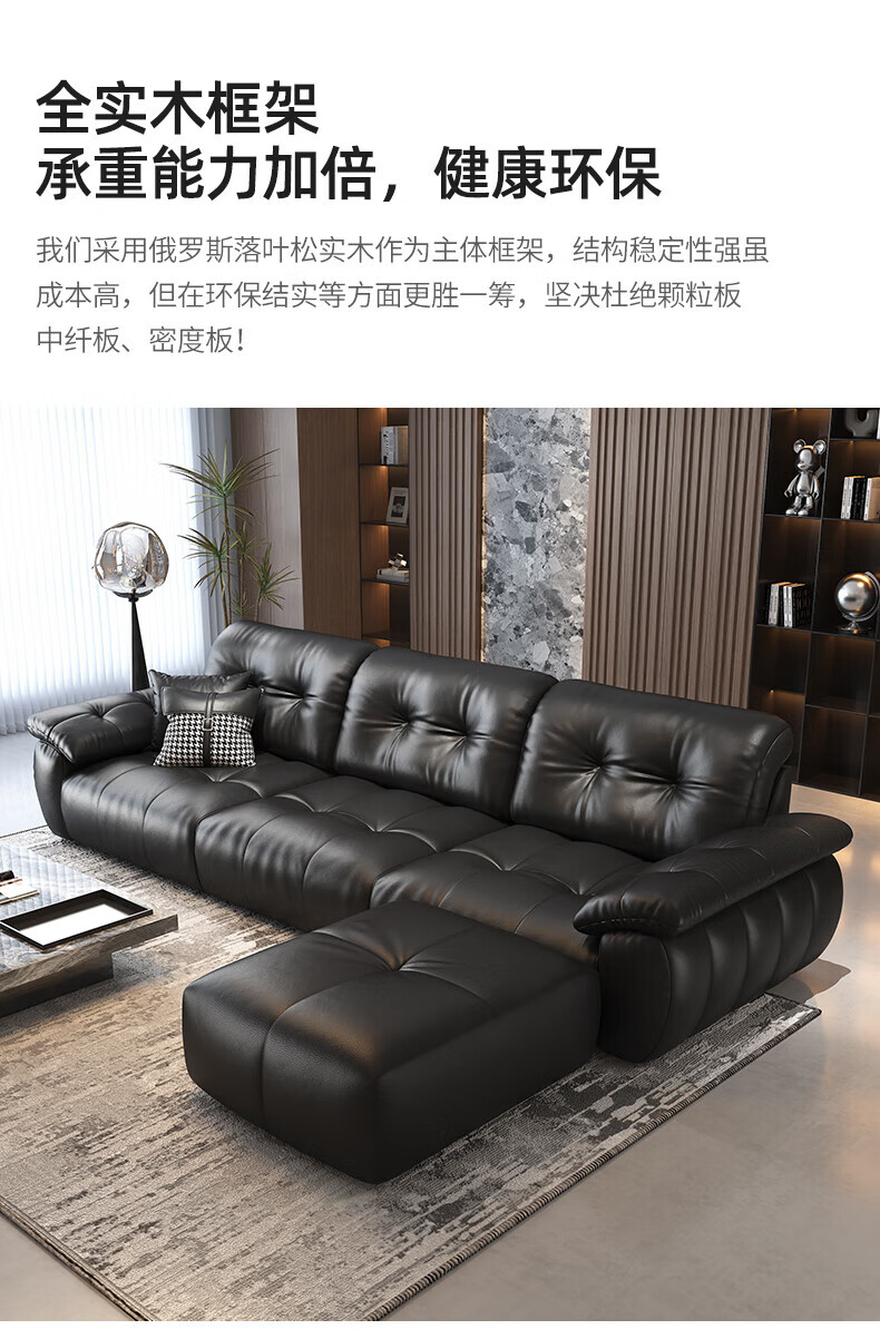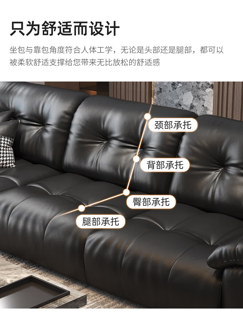 风尚田园云漫沙发客厅高端轻奢现代直排头层牛皮意式极简新款真皮沙发 2.6米 加厚头层真皮+45D高弹海绵