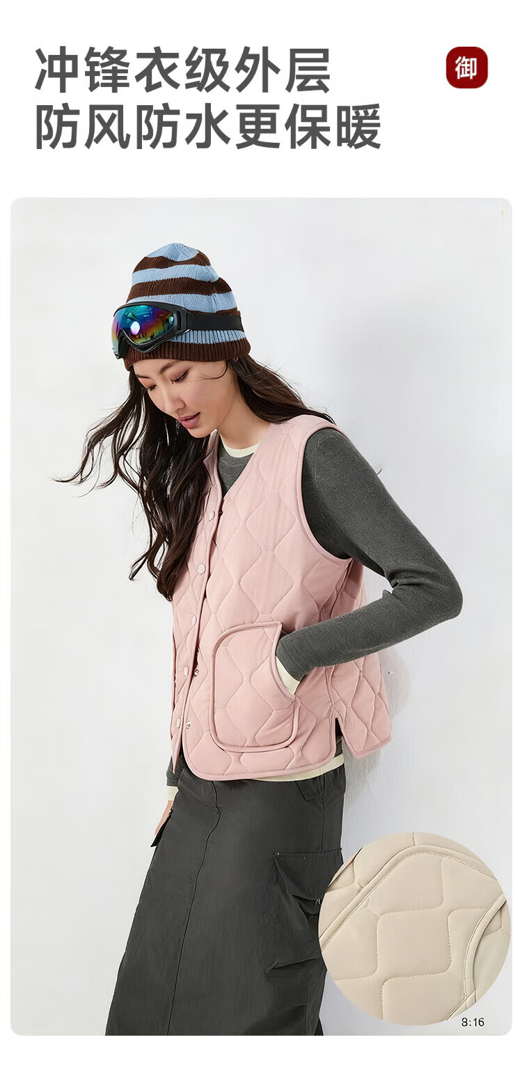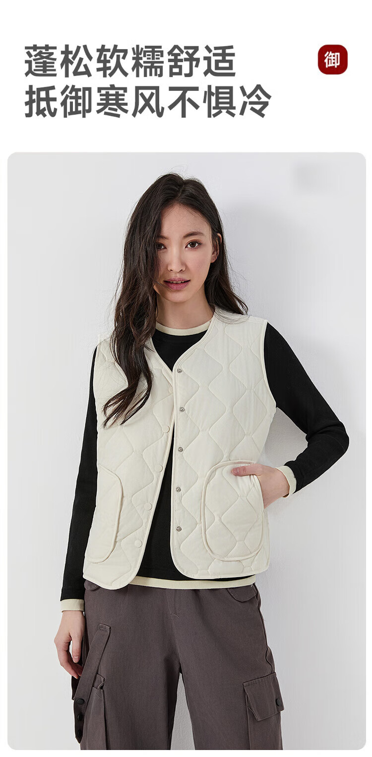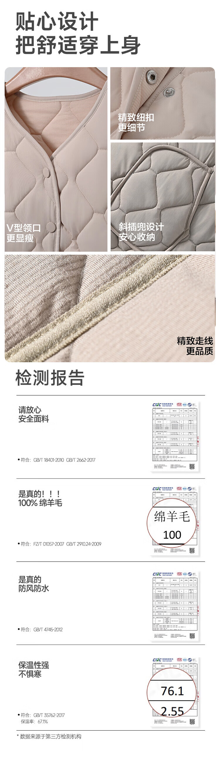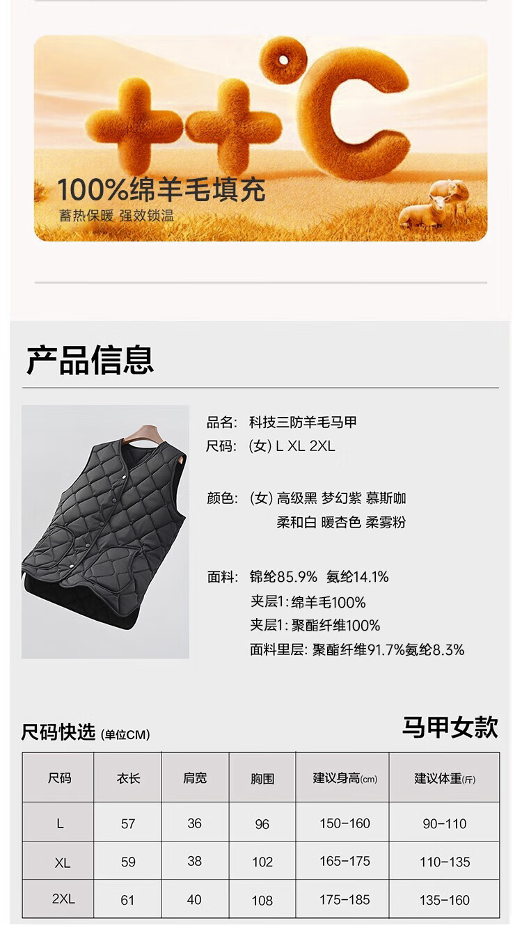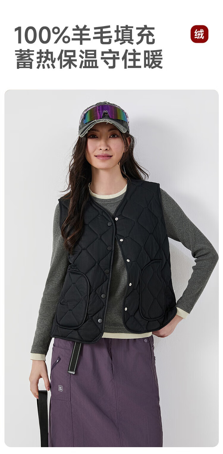 翊尚美羊毛马甲女2025冬季新款外套显瘦百搭抗寒时尚保暖短款坎肩上衣 暗夜黑 【100%羊毛填充】 L 【适合80-100斤】