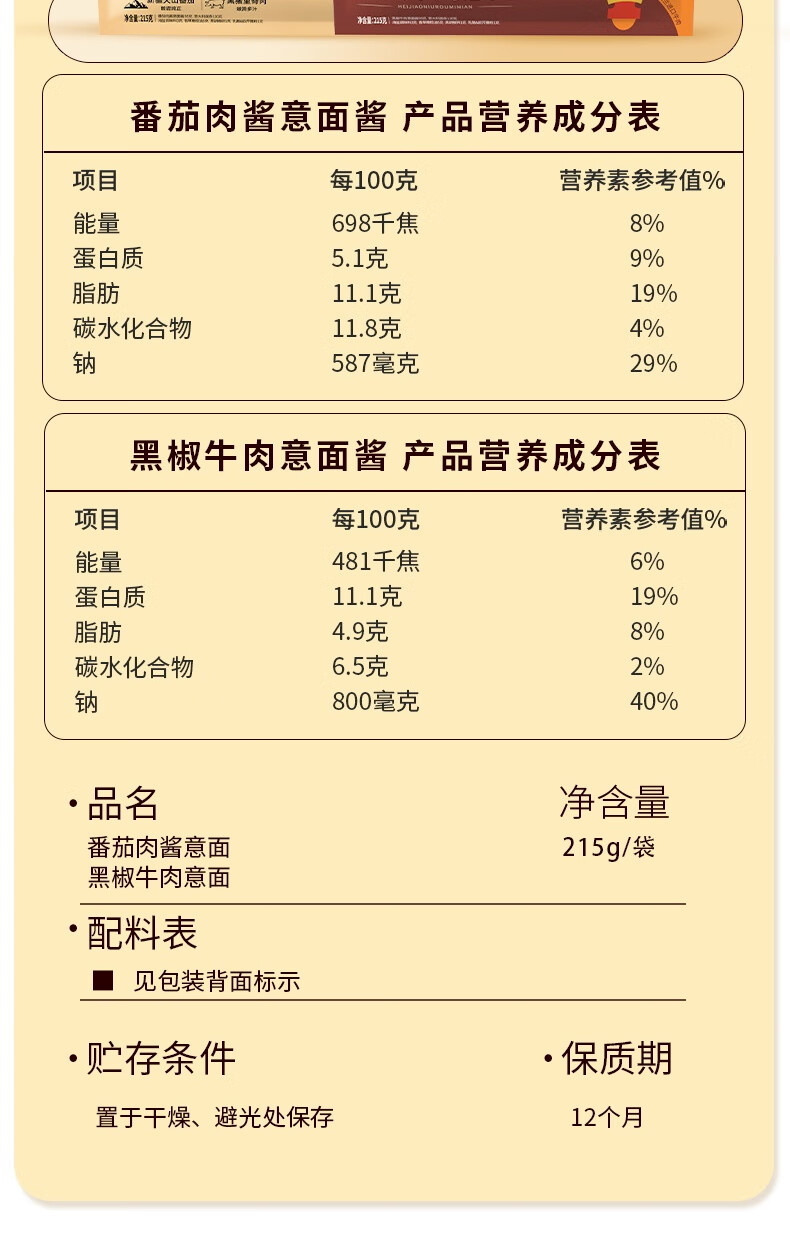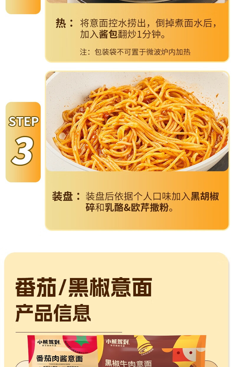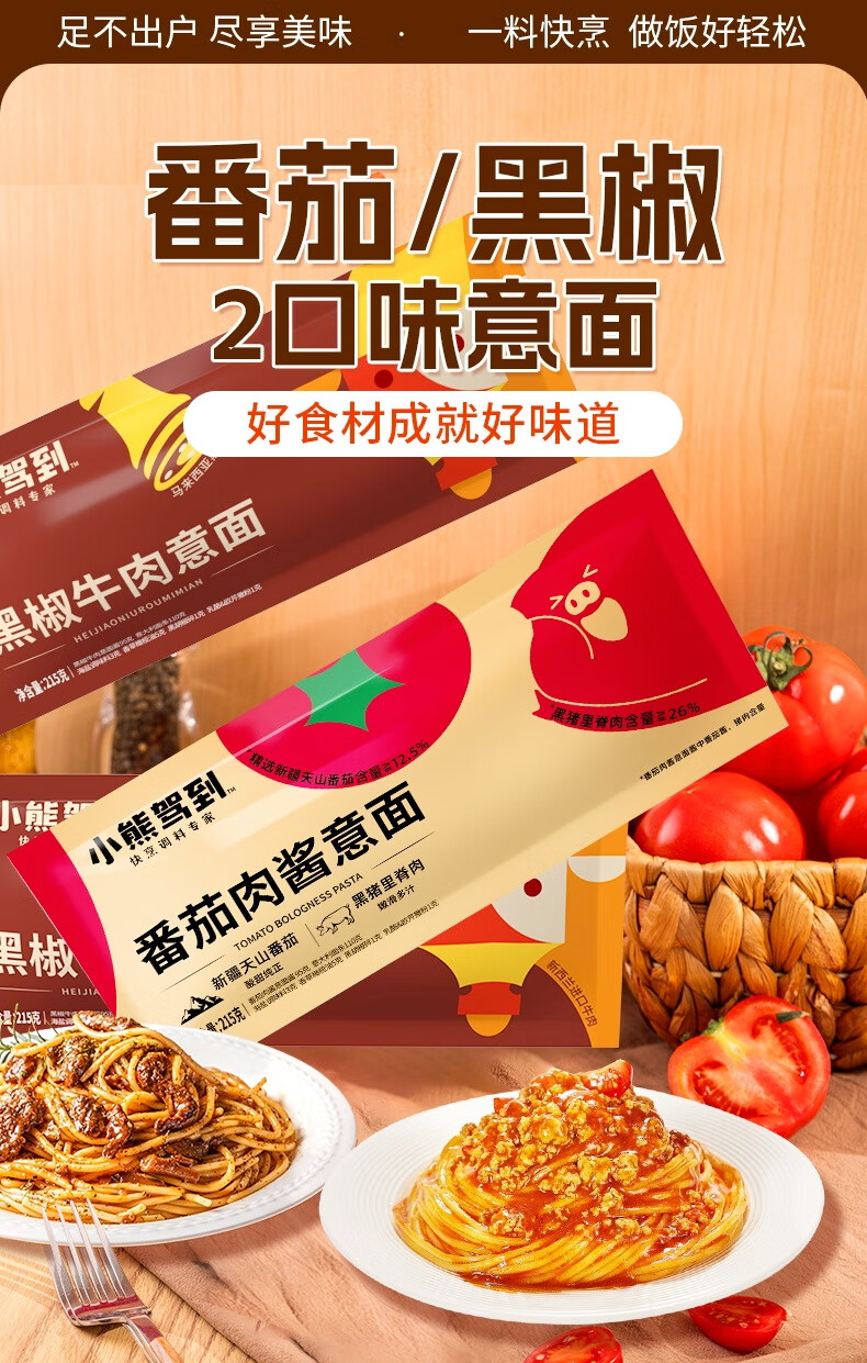 小熊驾到(BearComing)经典番茄肉酱意大利面袋装方便面儿童早餐速食意粉意面通心粉面 番茄肉酱意面215g*6袋